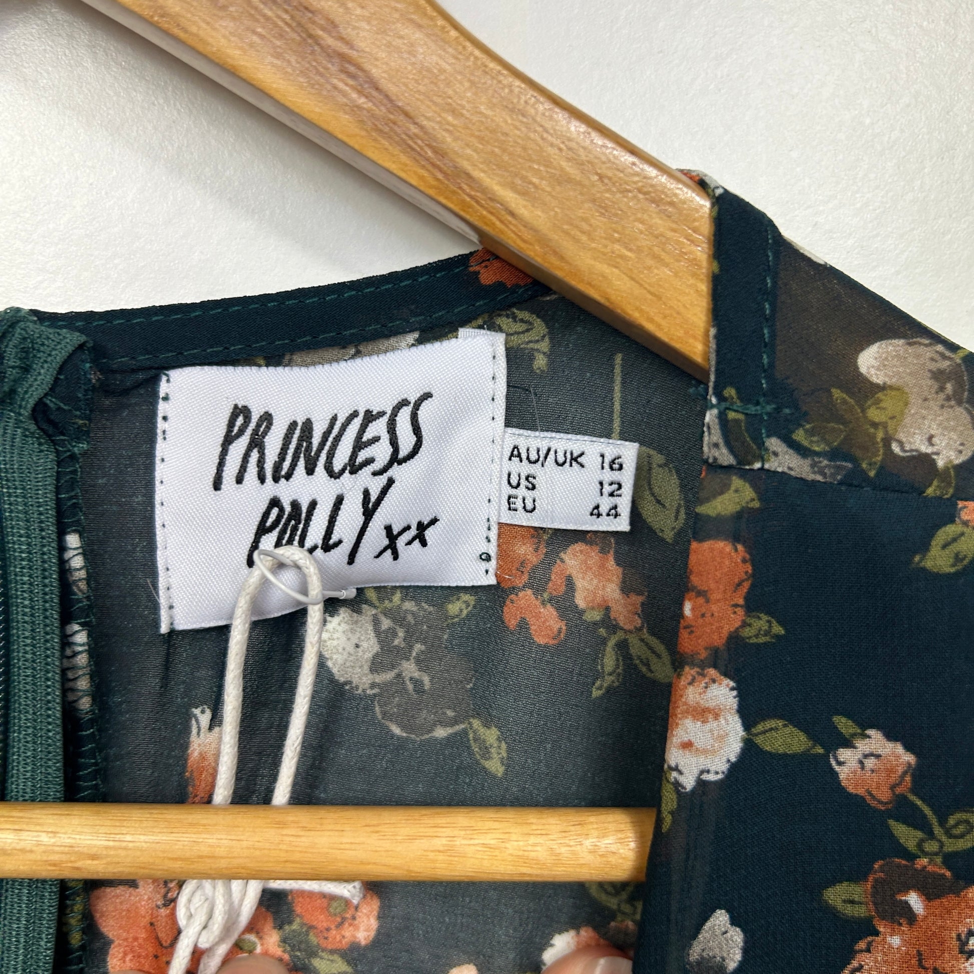 Princess Polly Teal Floral Dress - Size 16