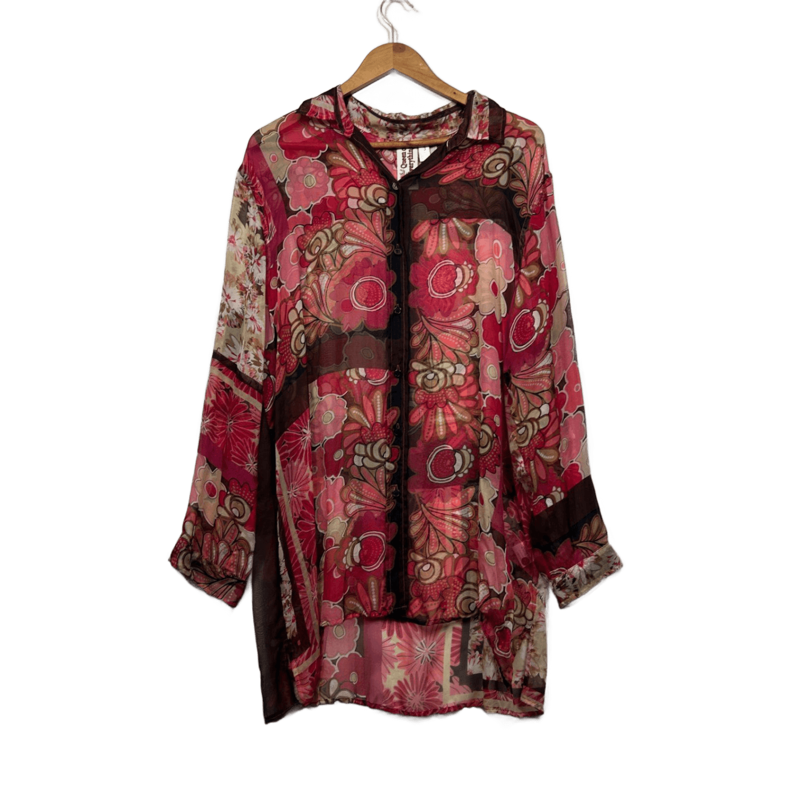 Queen of Everything Silk Pink Floral Long Sleeve Top Size 14 - 16 (3)