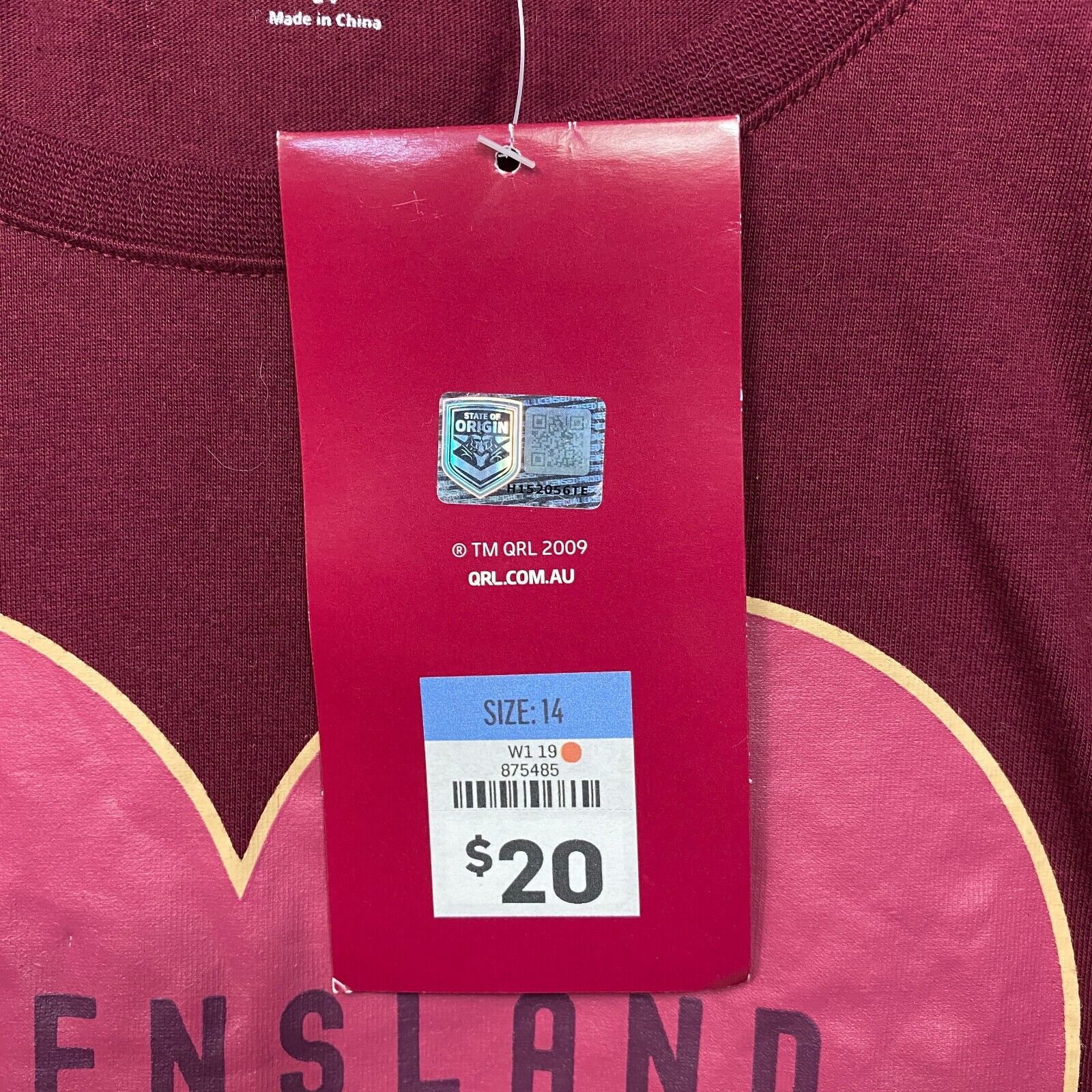 Queensland Maroons Womens Tshirt Size 14 NRL State of Origin New