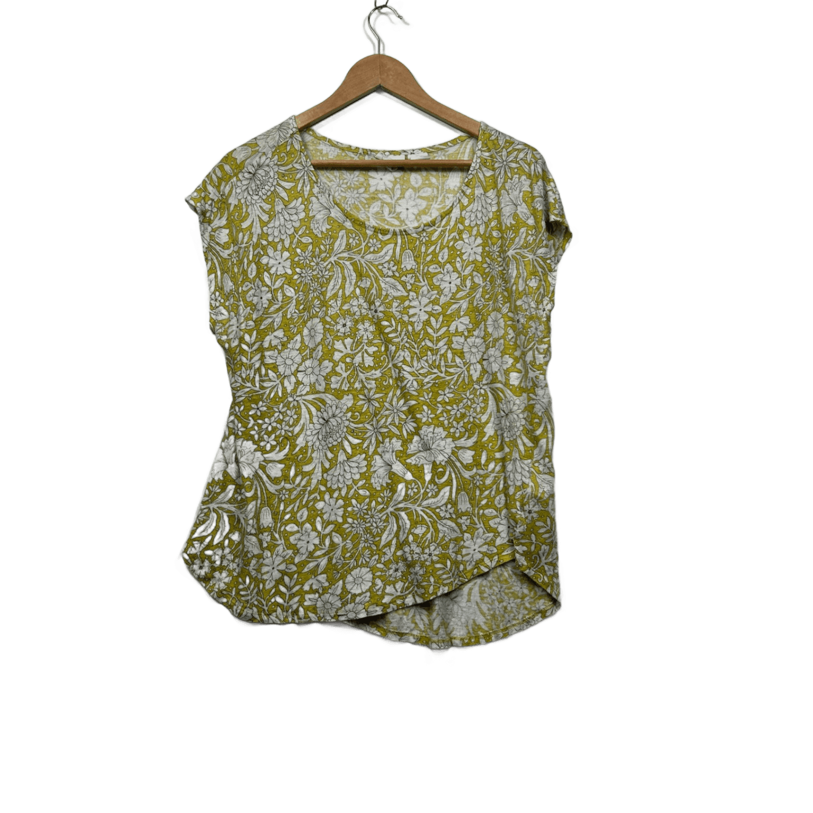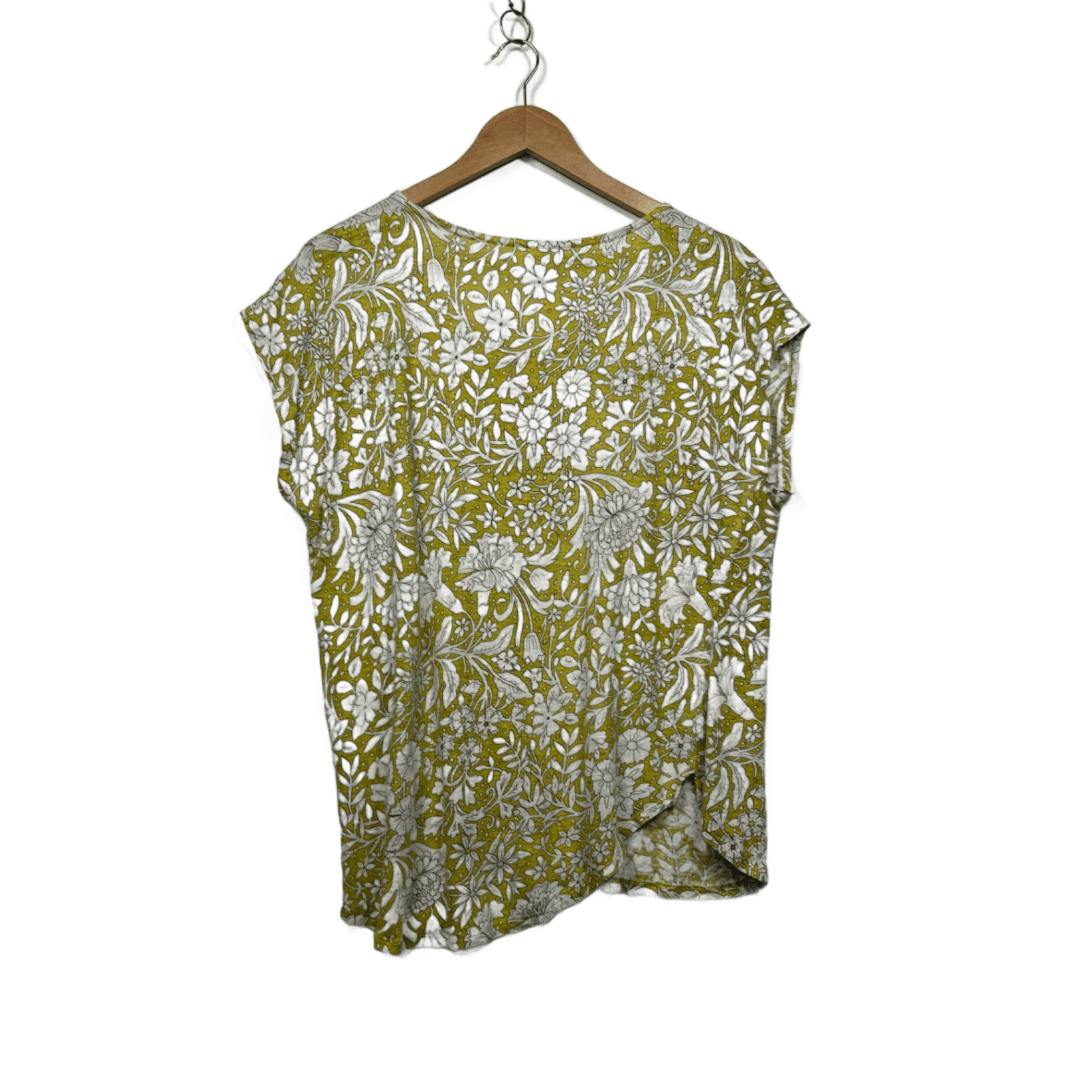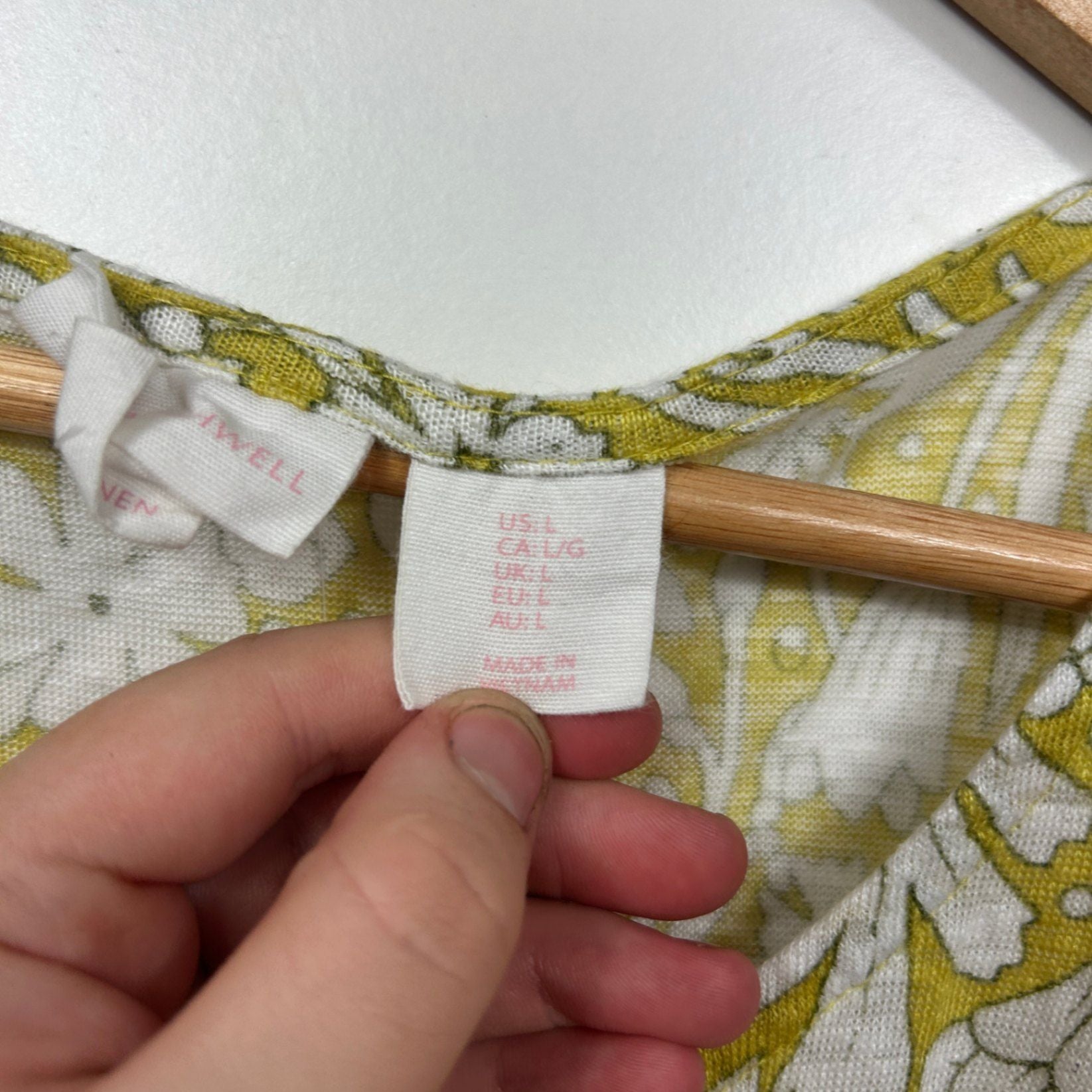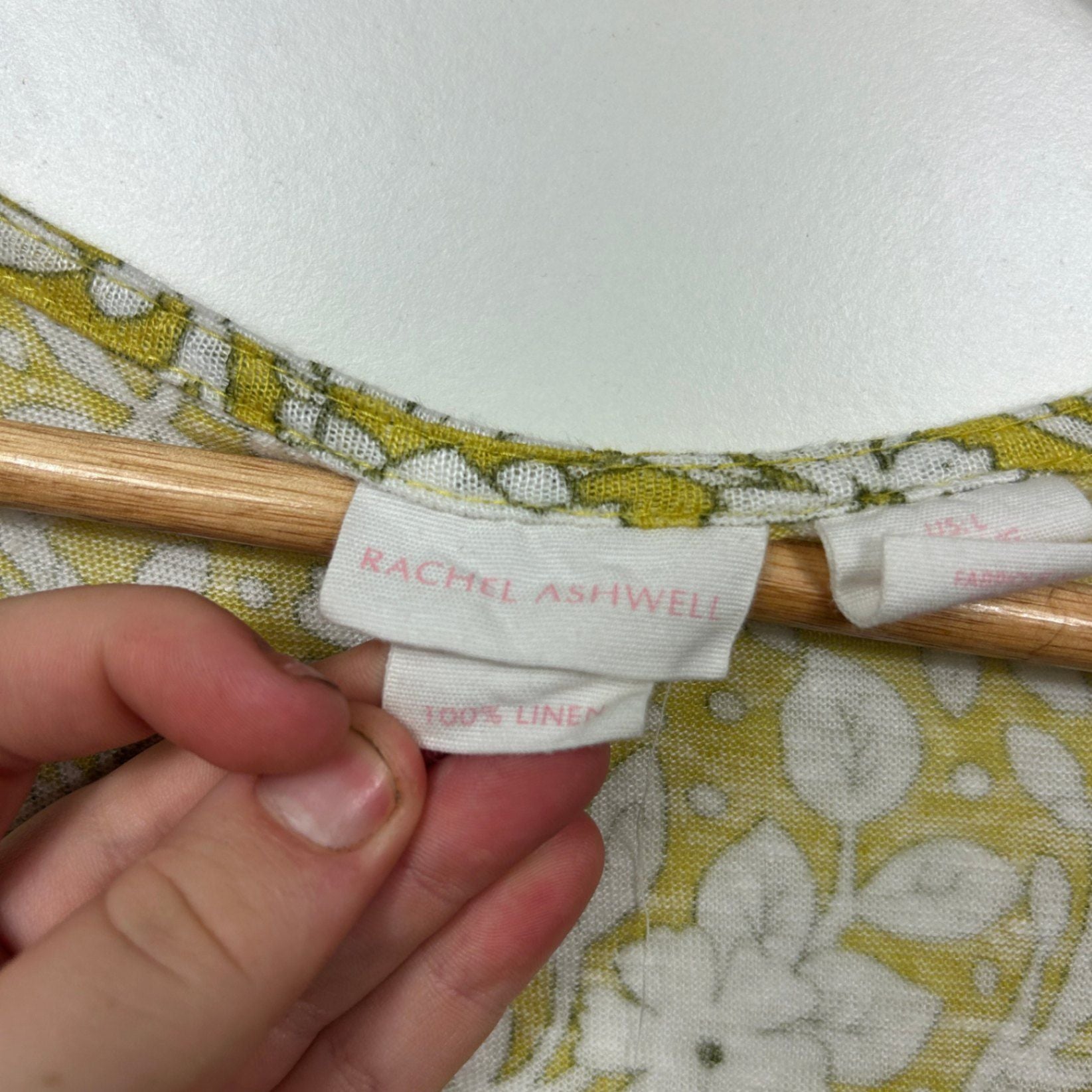 Rachel Ashwell Linen Mustard Yellow Floral Blouse Top Size 14 Large