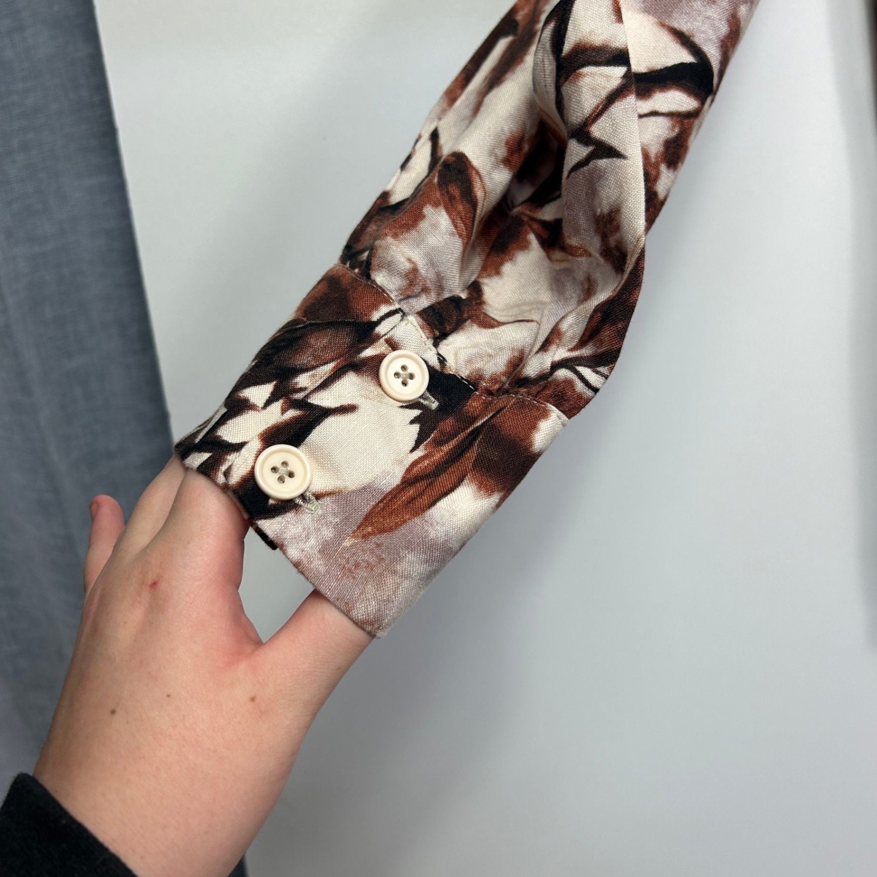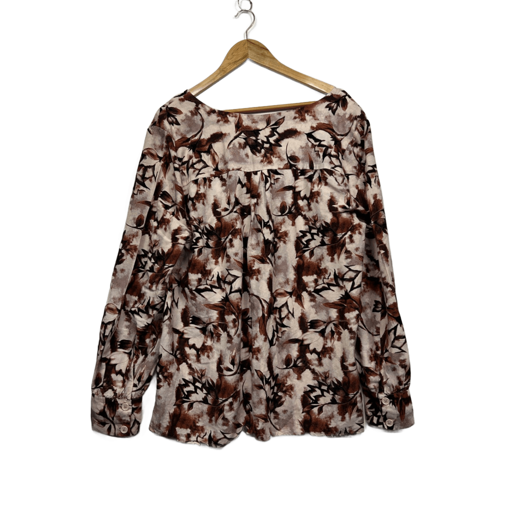 Regatta Linen Blend Brown Beige Long Sleeve Floral Blouse Size 16