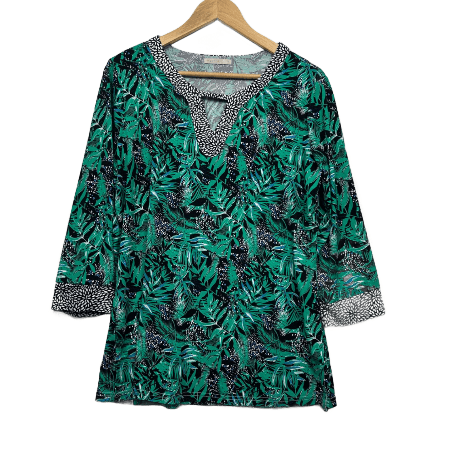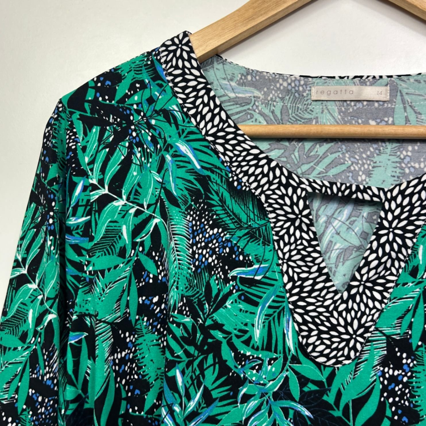 Regatta Top Size 14 Green Long Sleeve Floral Leaf Print