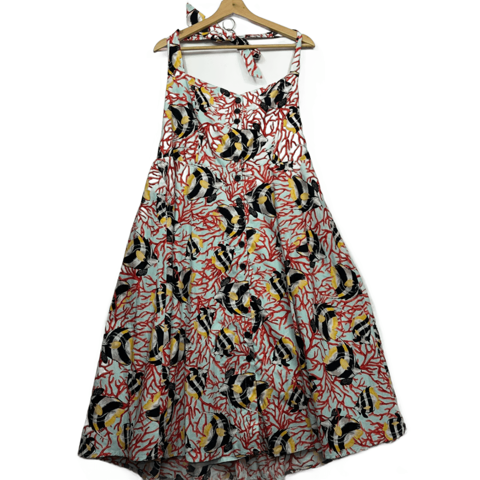 Revival Multicoloured Fit & Flare Halter Neck Pockets Dress Size 16 Fish Sea Underwater
