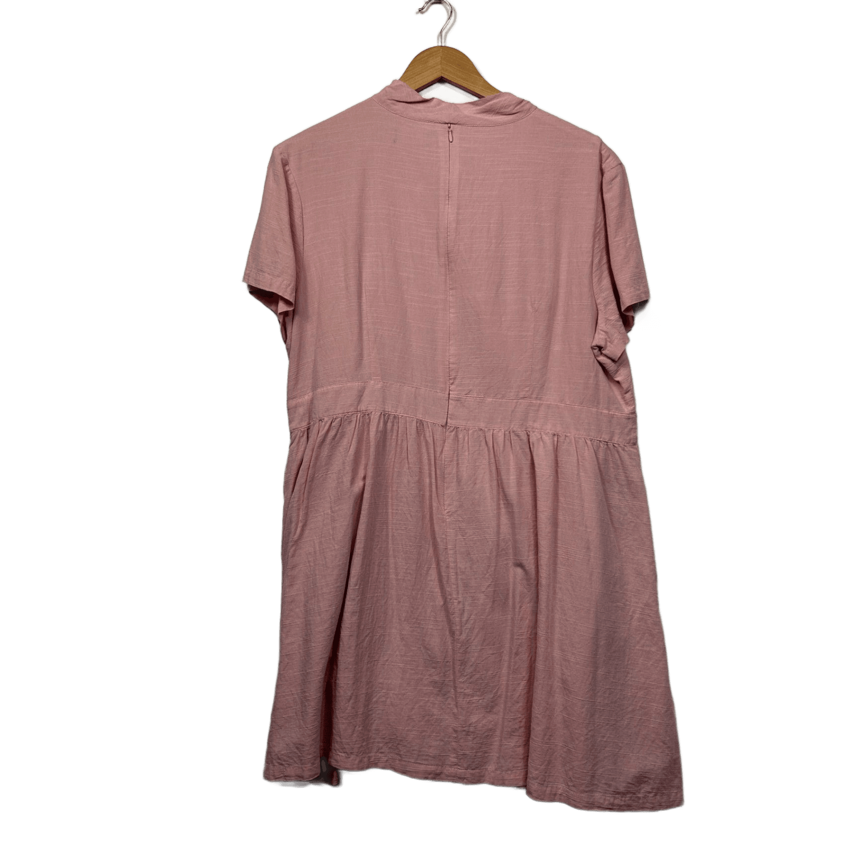 Revival Pink Cotton Blend Short Sleeve Tie Neck Smock Dress Size 18