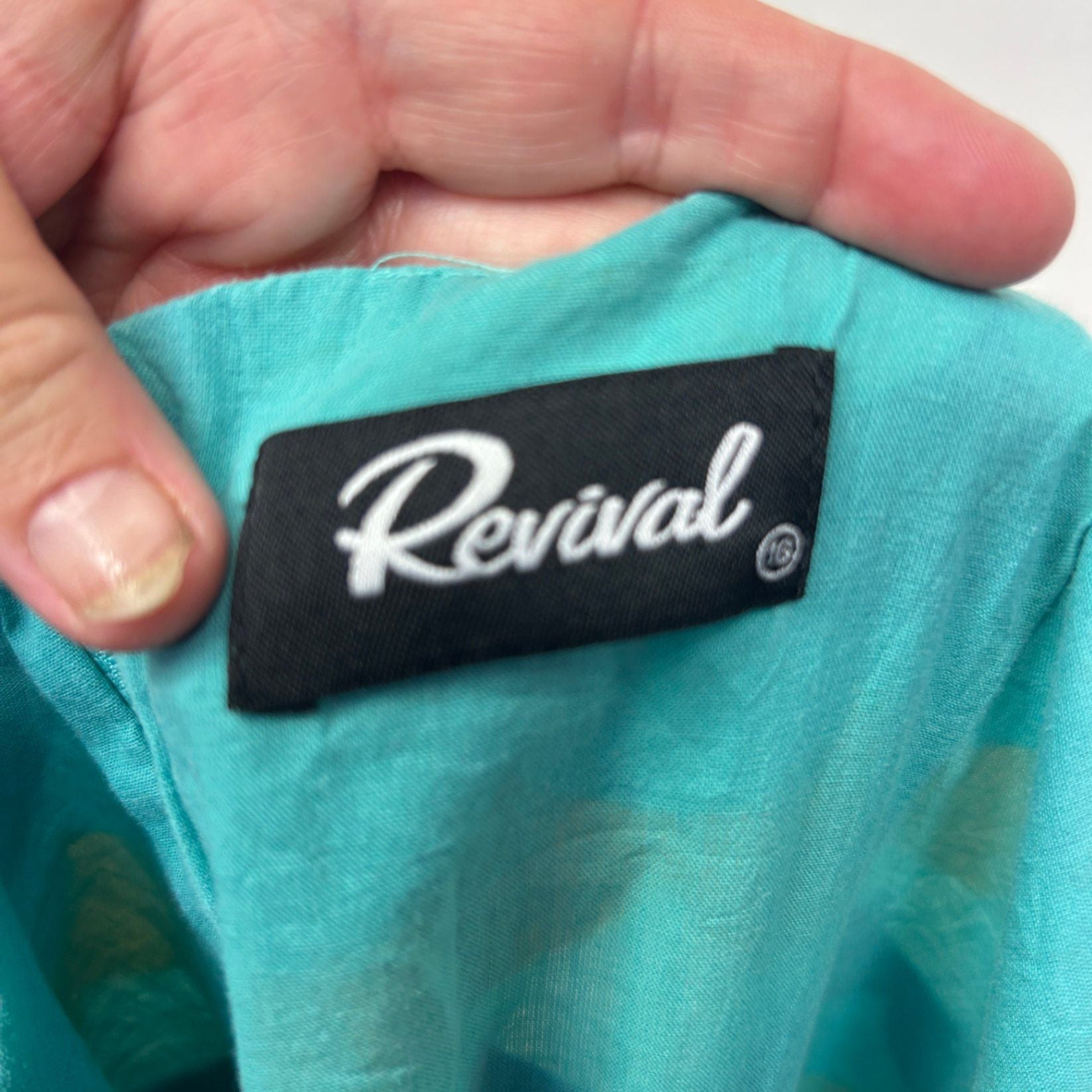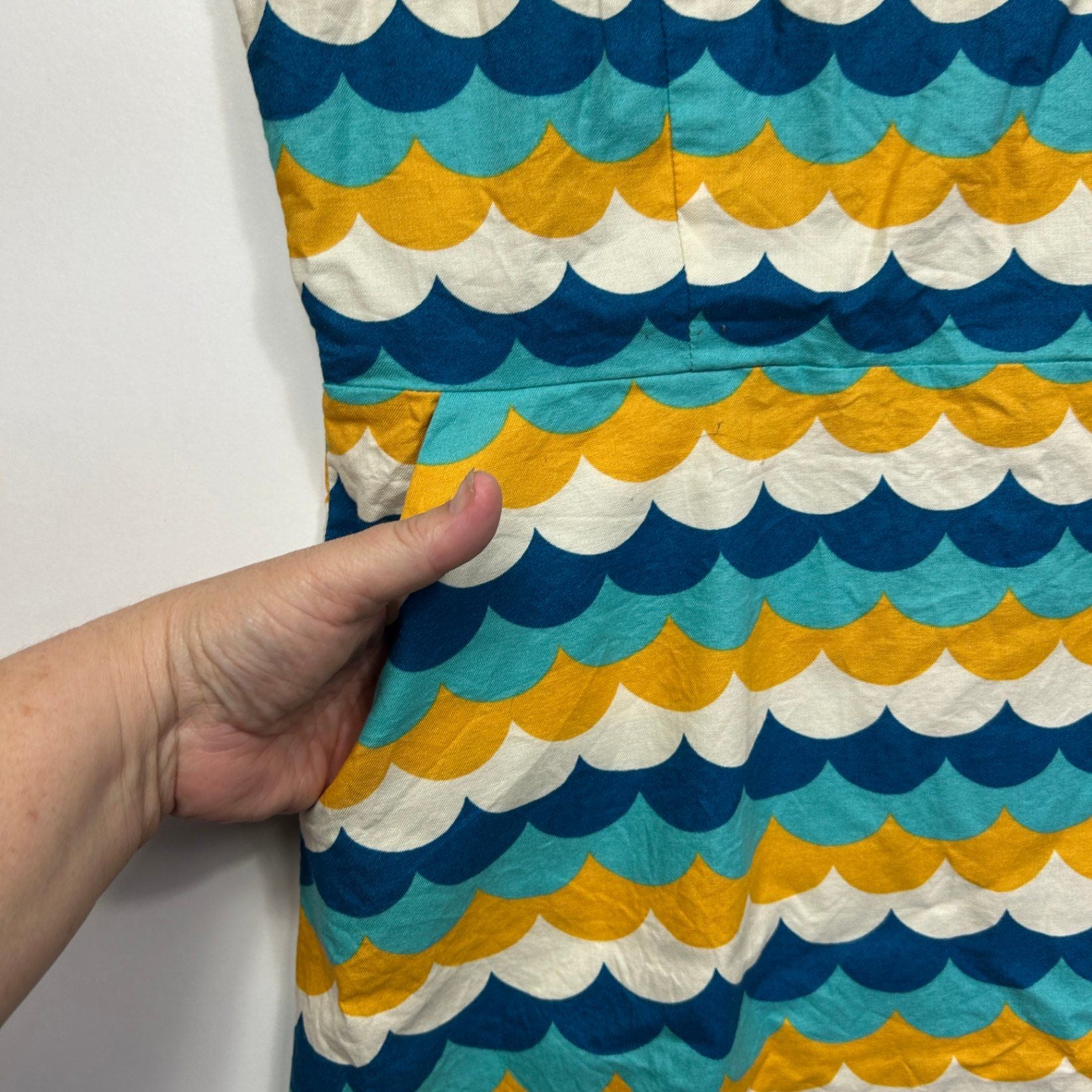 Revival Teal Mustard Blue Scallop Print Sleeveless Cotton Retro Dress Size 16