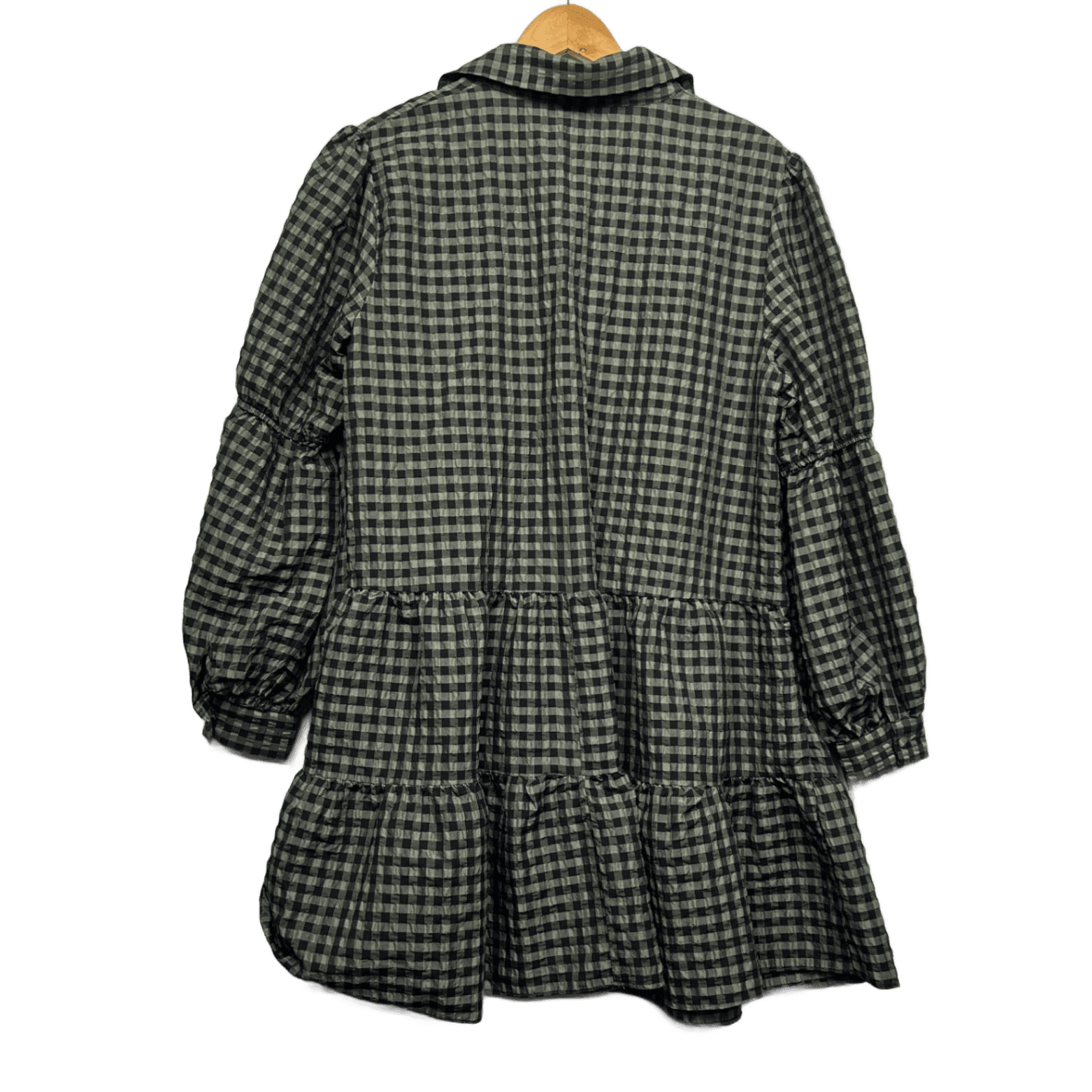 River Island Green Black Gingham Check Long Sleeve Smock Shirt Dress Size 16