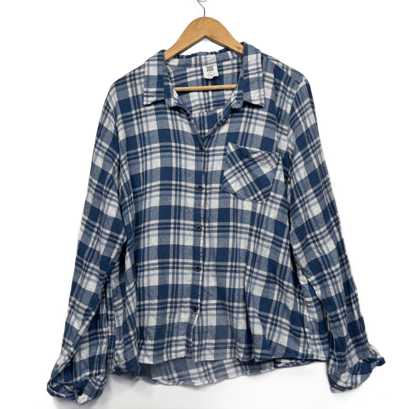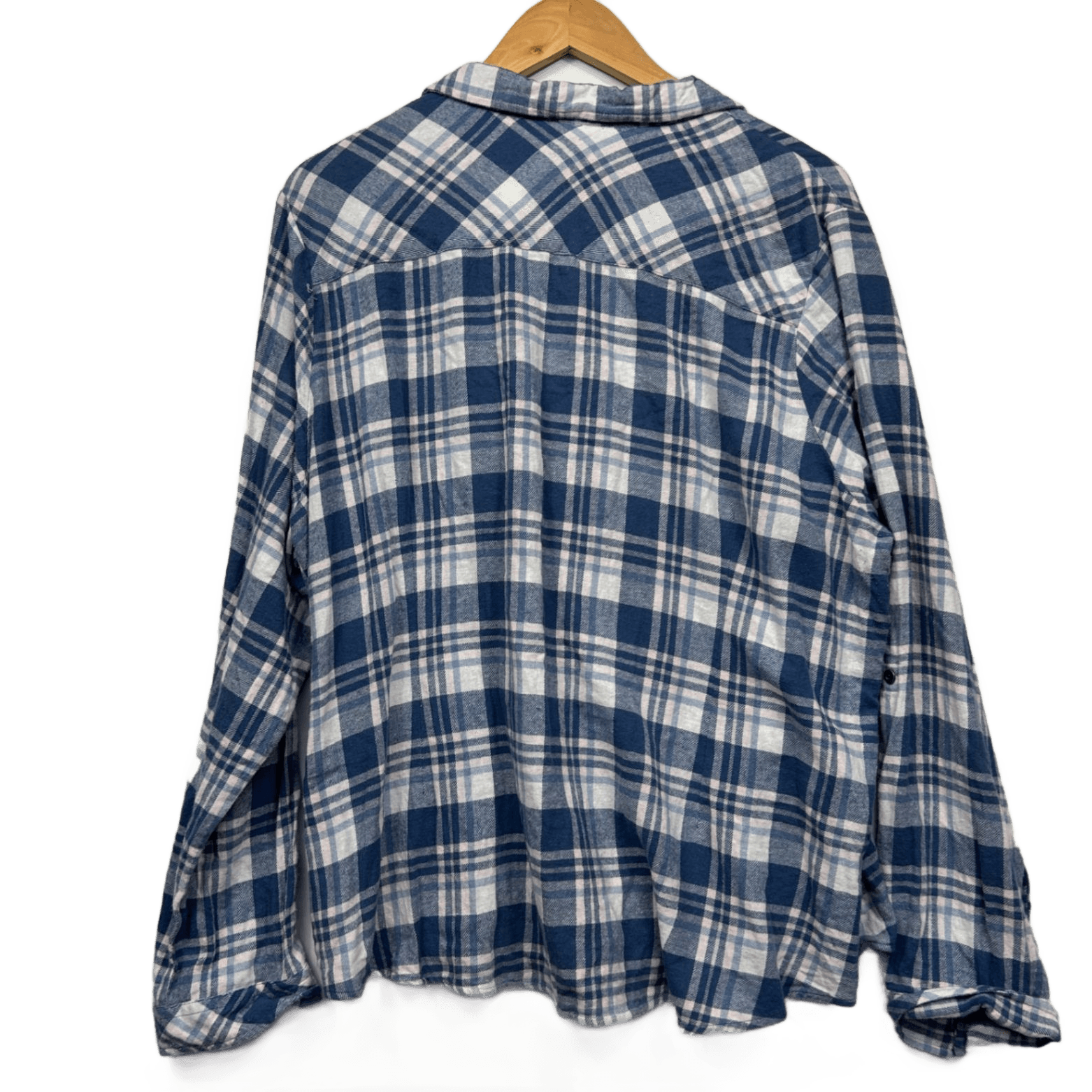Rivers Blue White Check Cotton Long Sleeve Button Up Top Flannel Shirt Size 22
