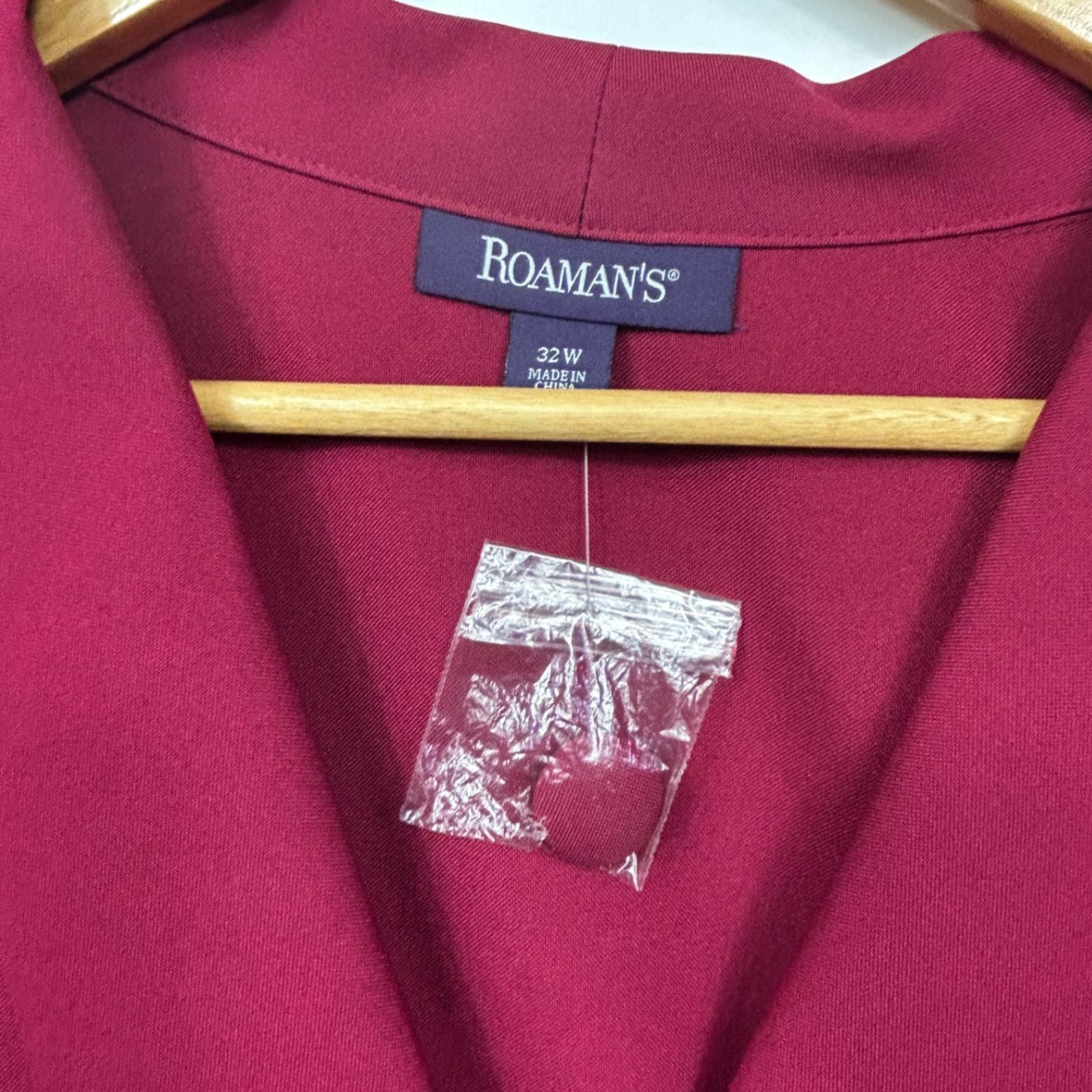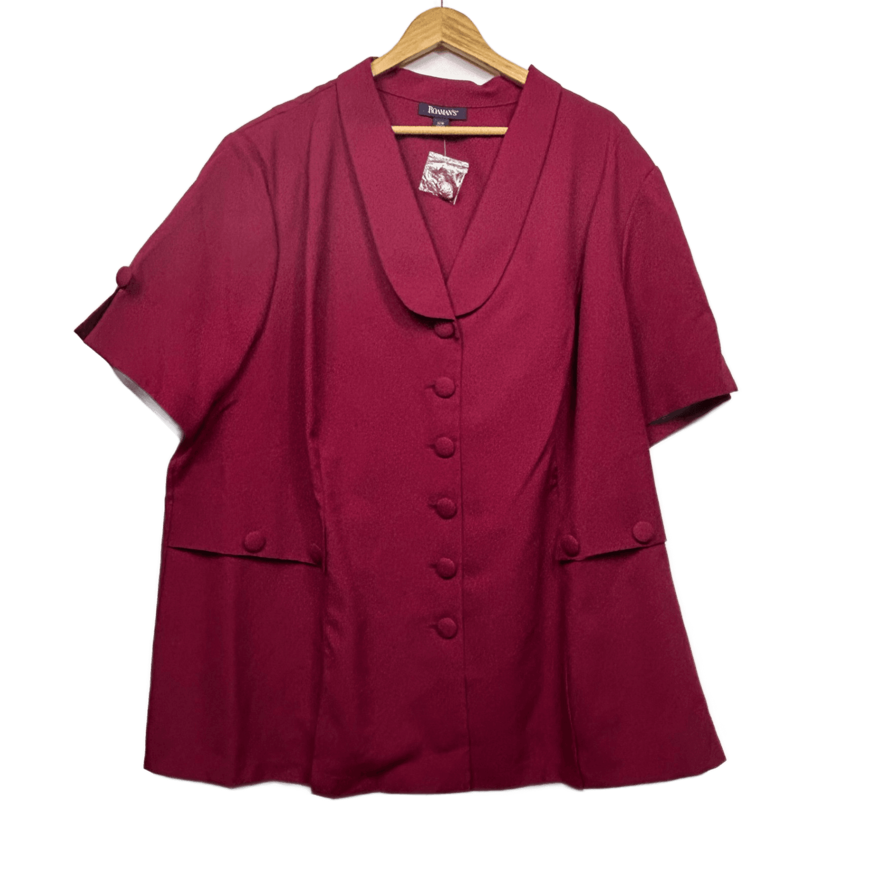 Roaman's Pink Fitted Top Size 32 W Short Sleeve Button Up Shacket