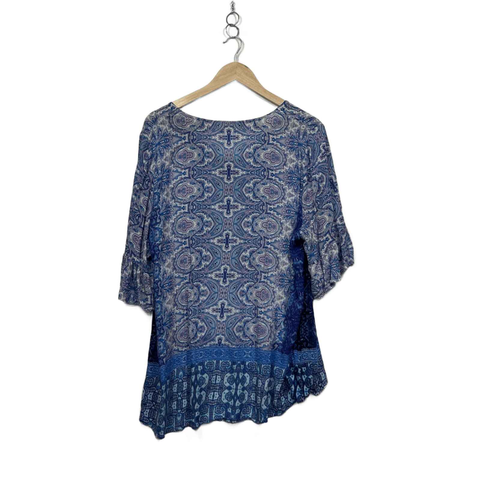 Rockmans Blue Bell Sleeve Paisley Print Top Blouse Size 20
