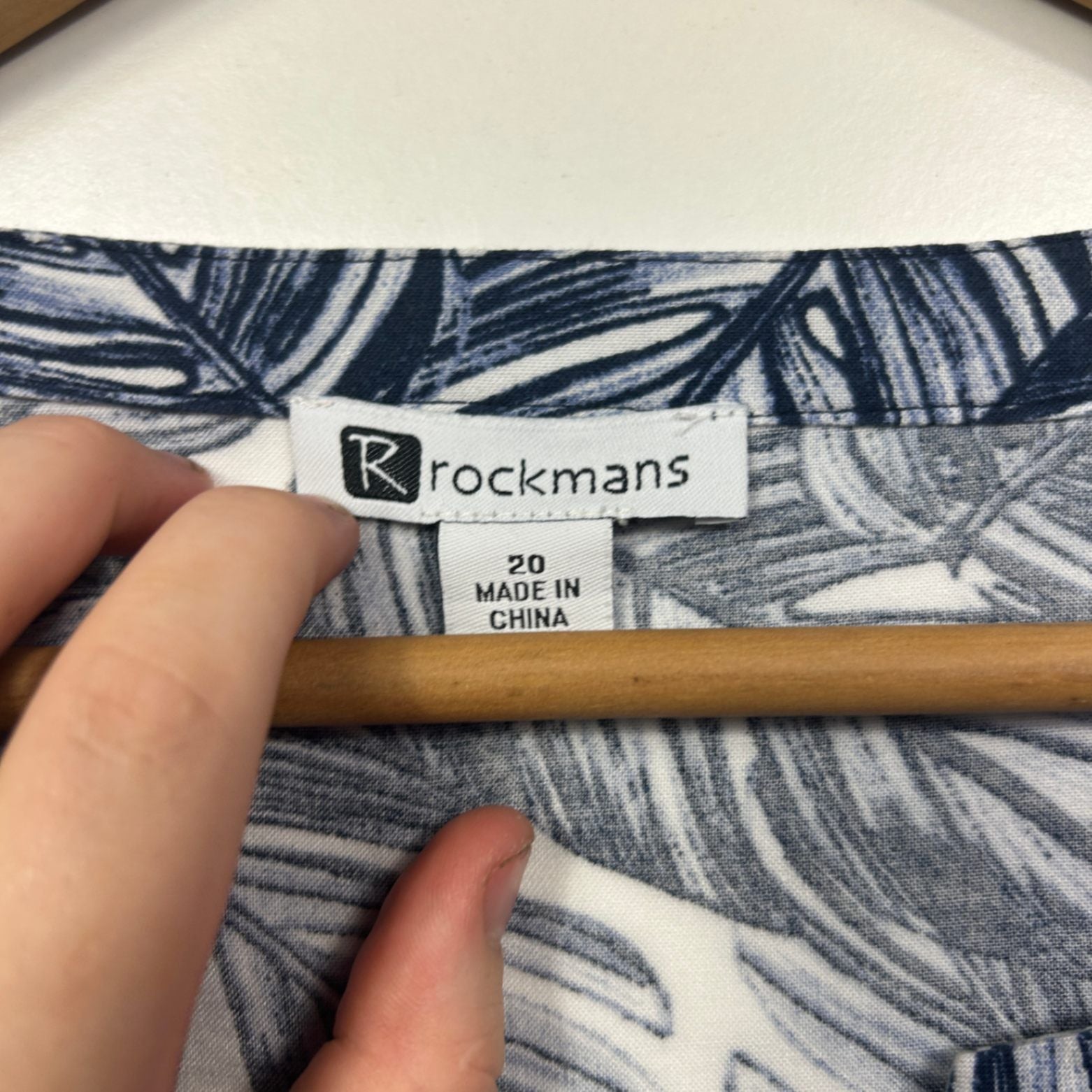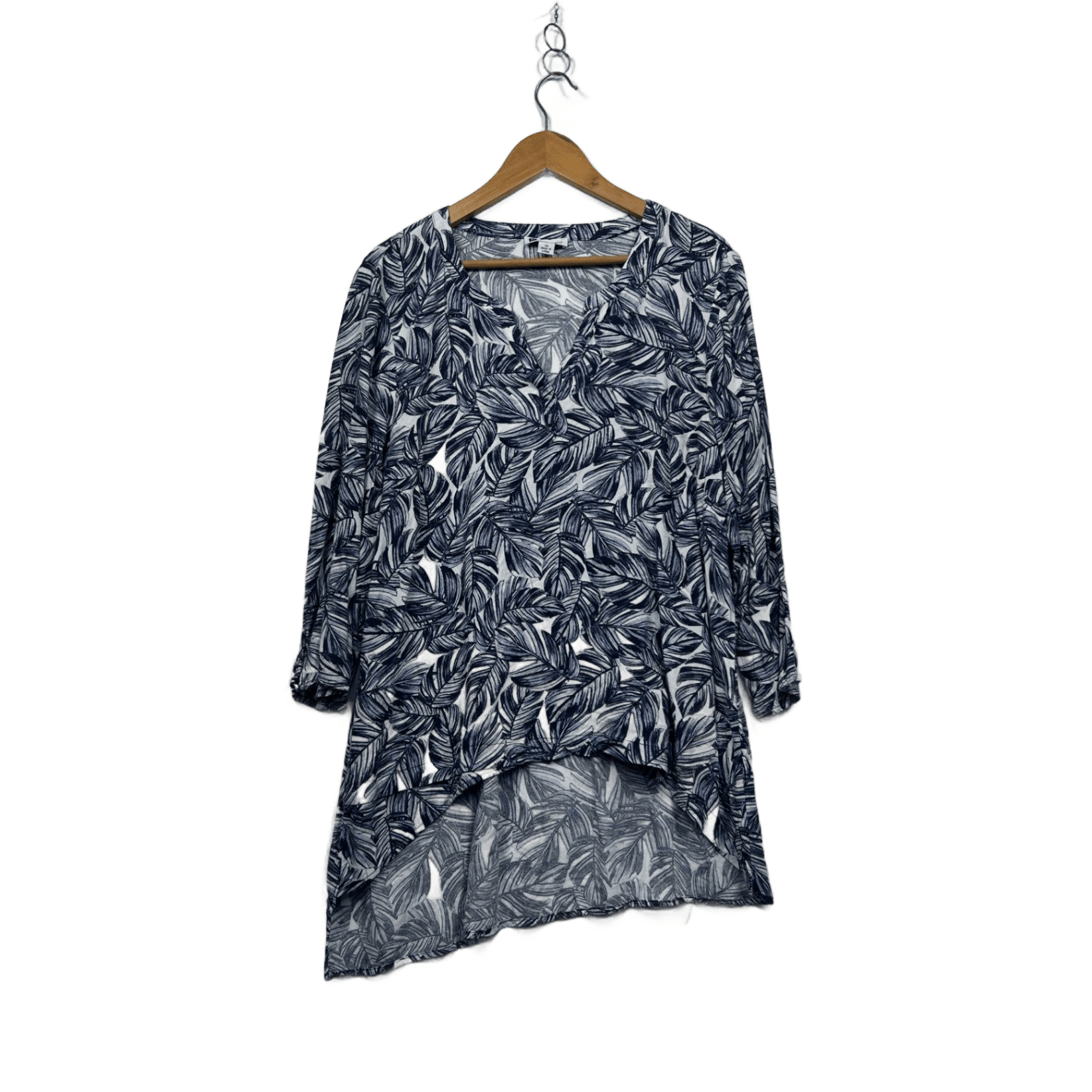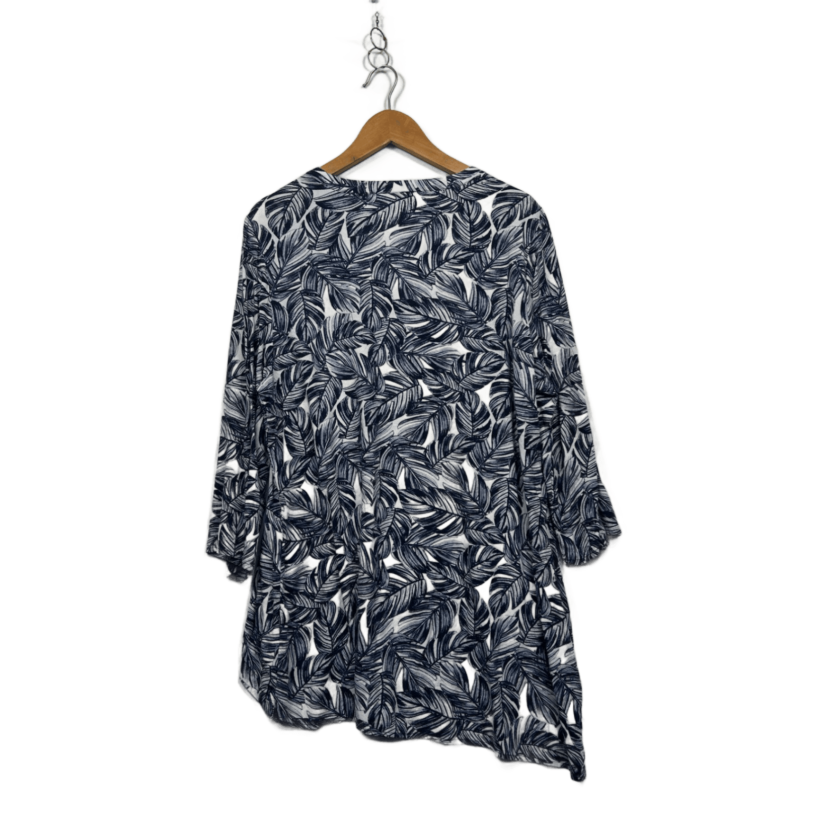 Rockmans Blue White Long Sleeve Leaf Print Tunic Top Size 20 Linen Blend