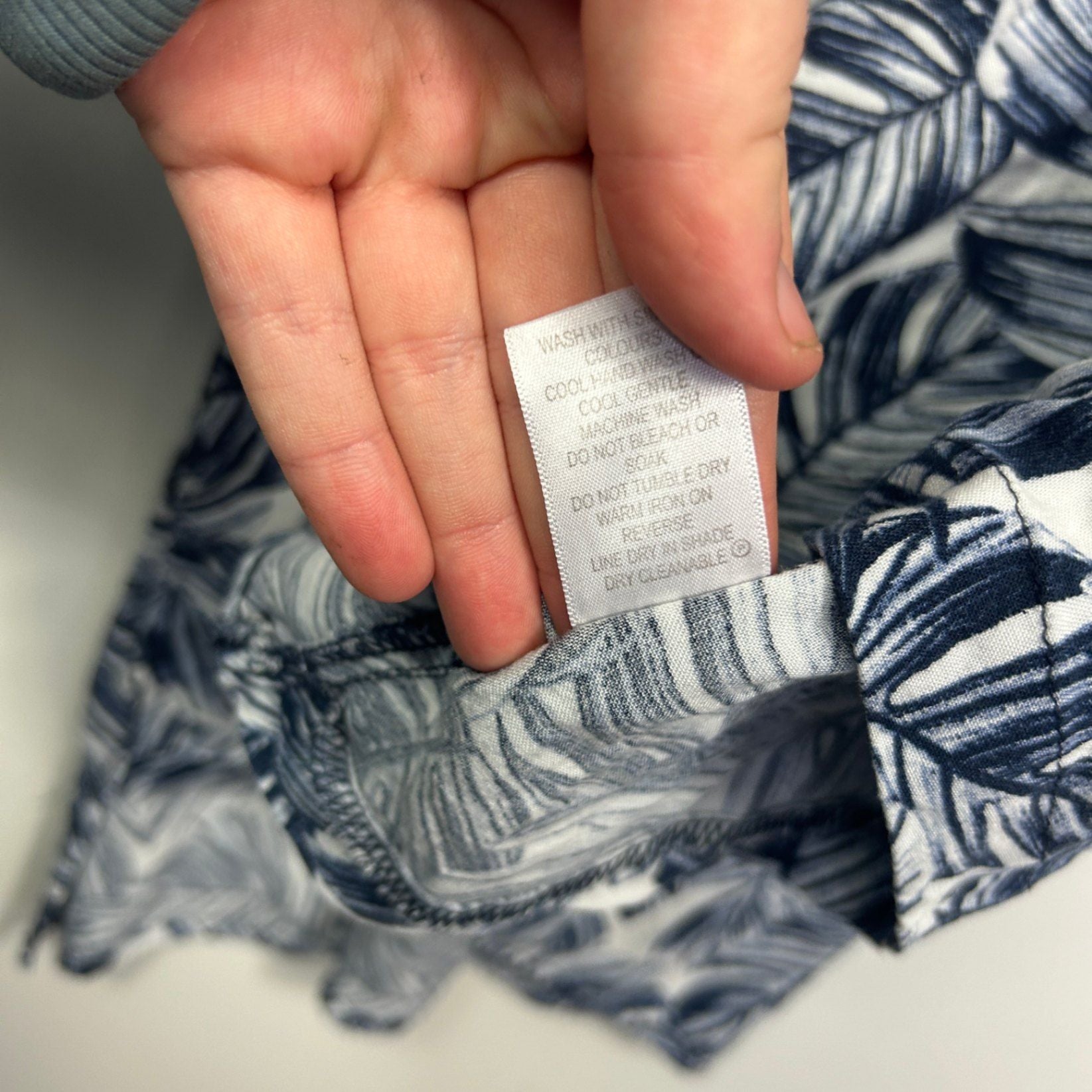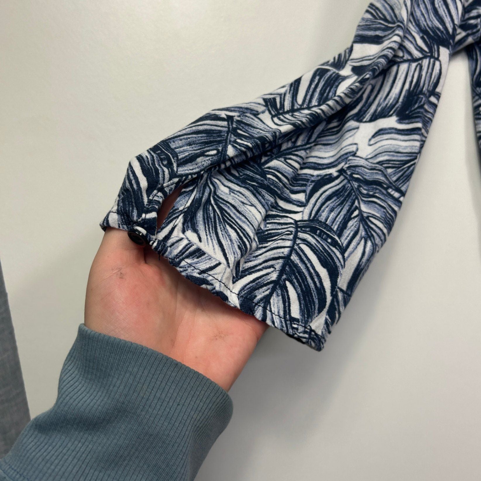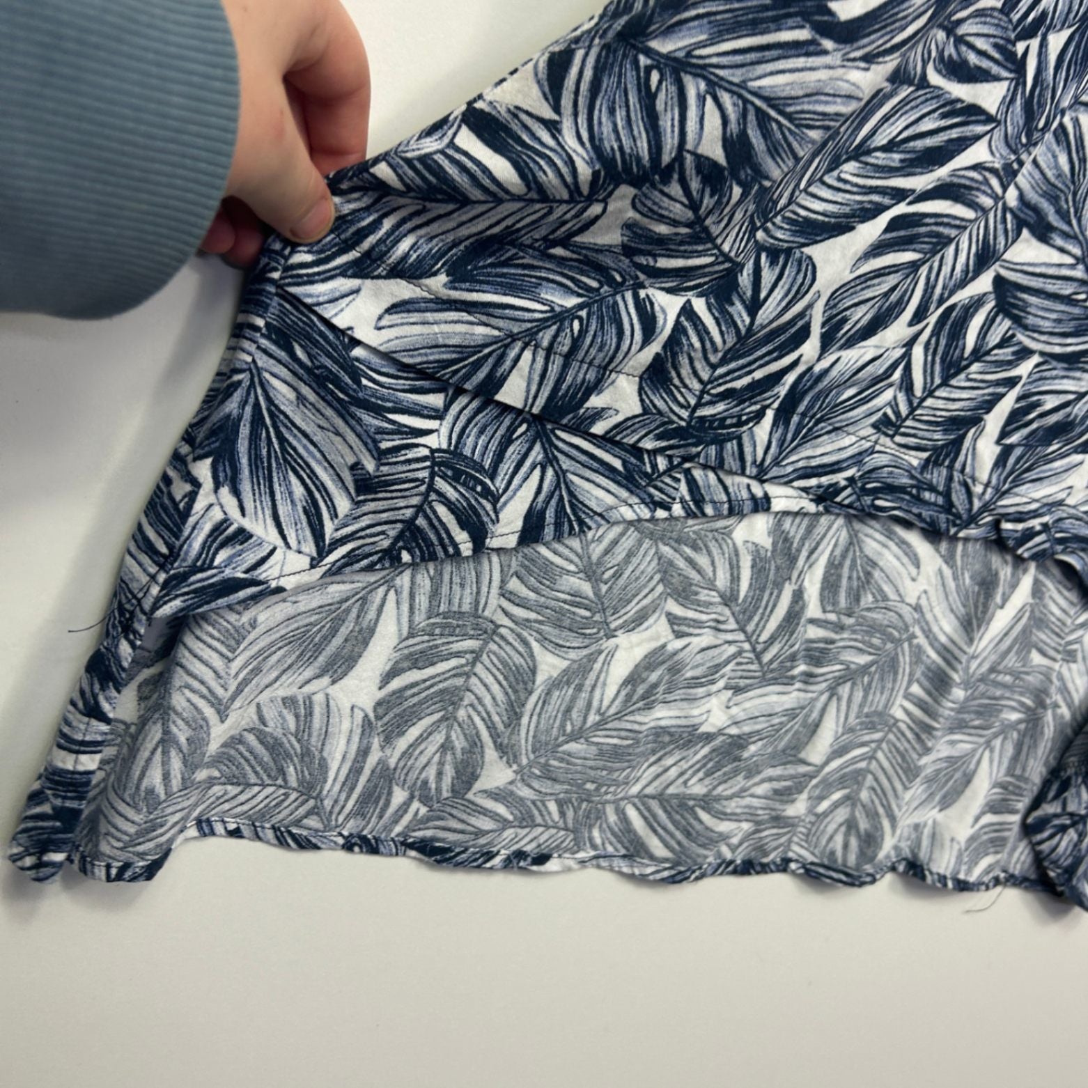 Rockmans Blue White Long Sleeve Leaf Print Tunic Top Size 20 Linen Blend
