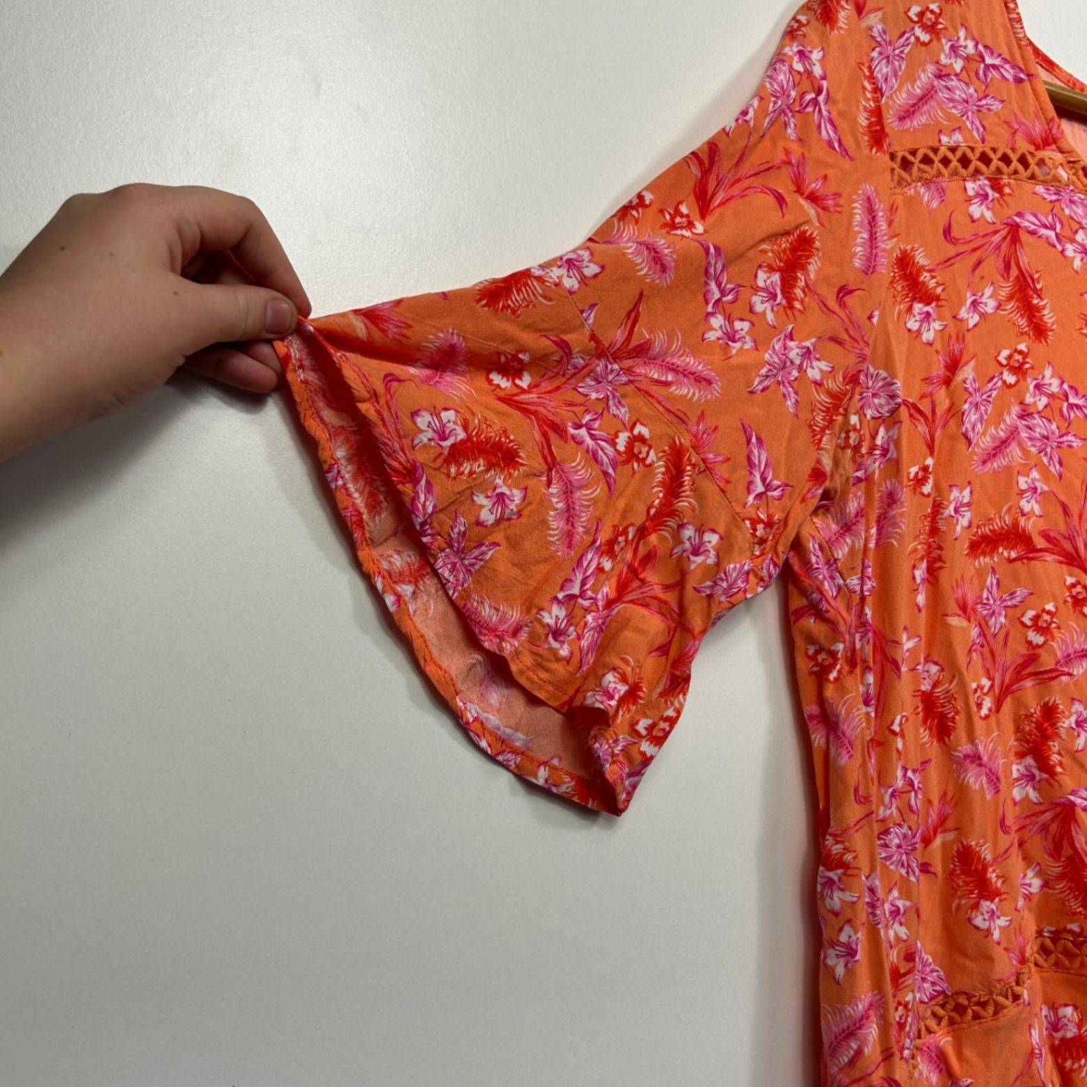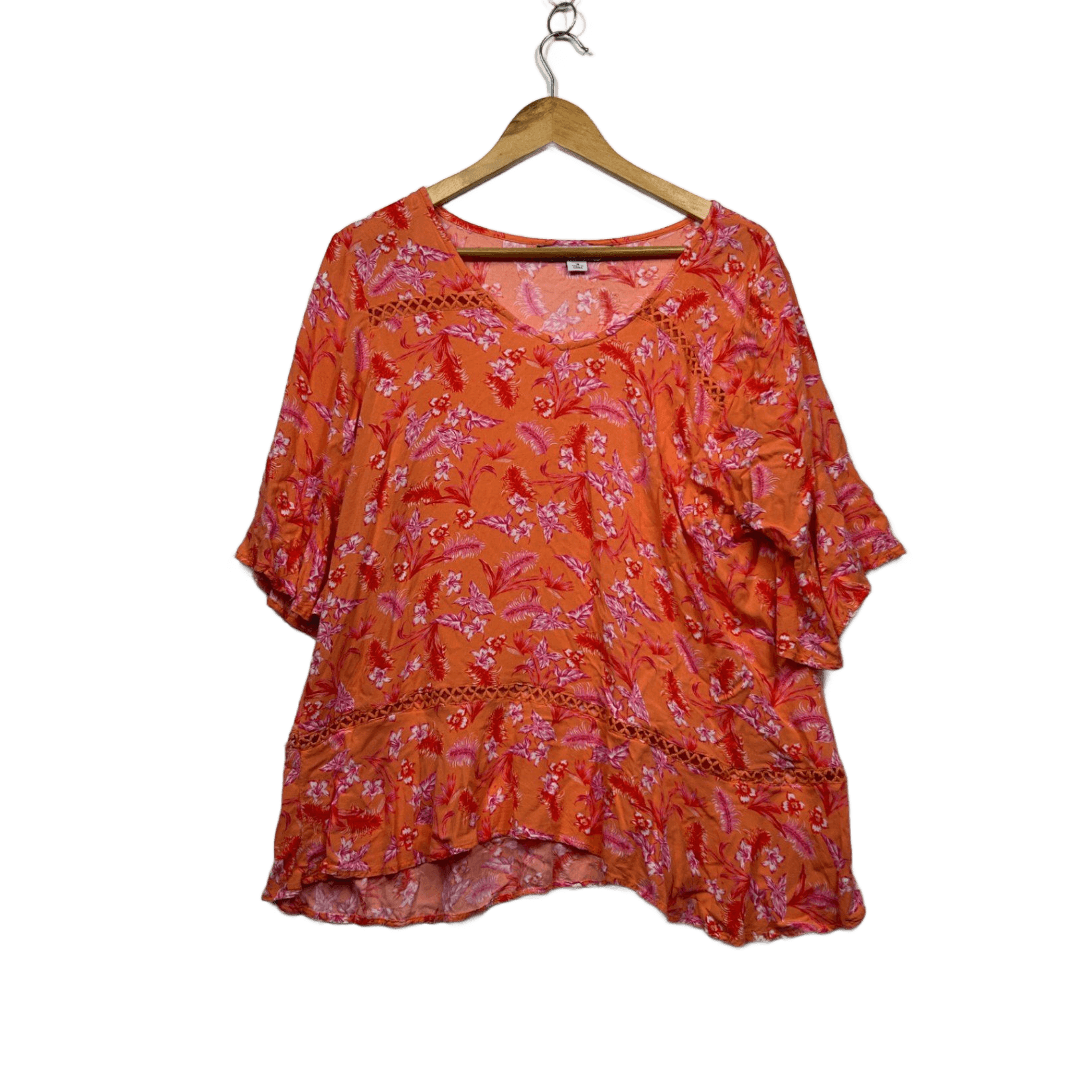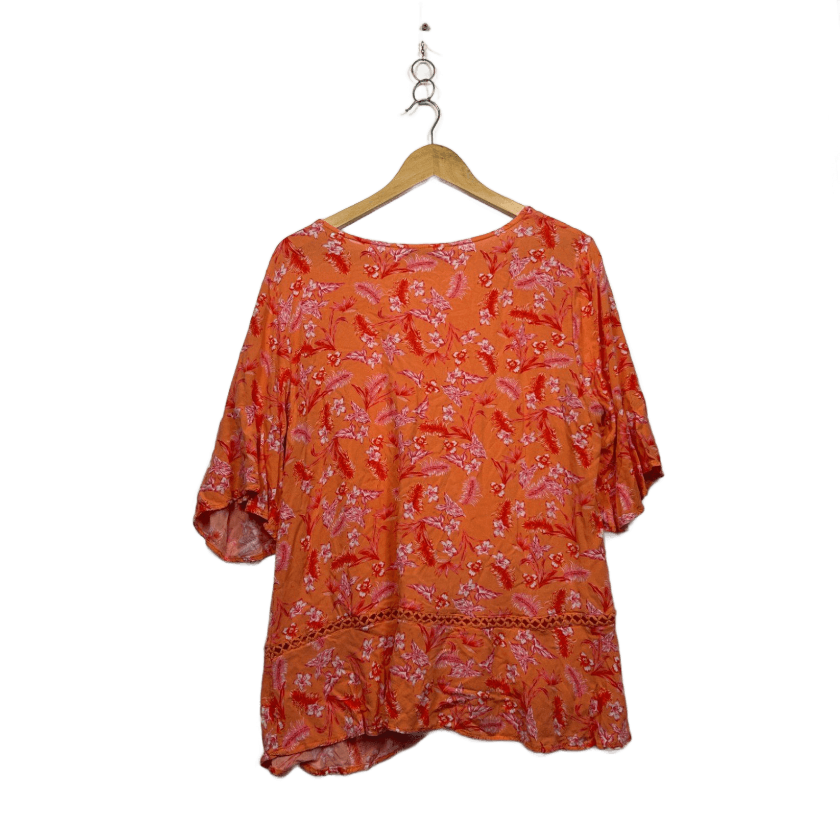 Rockmans Orange Pink Viscose Short Sleeve Floral Top Blouse Size 16