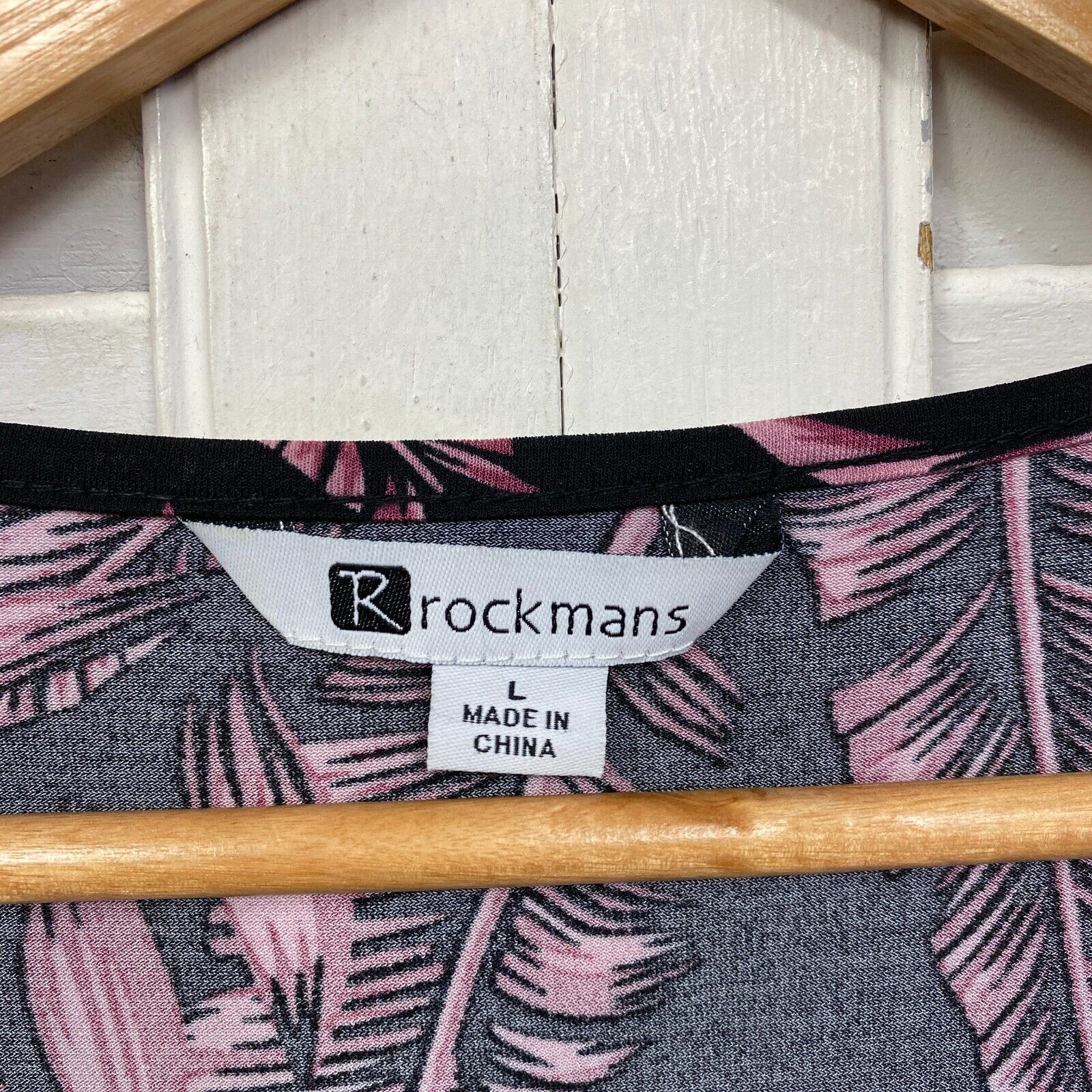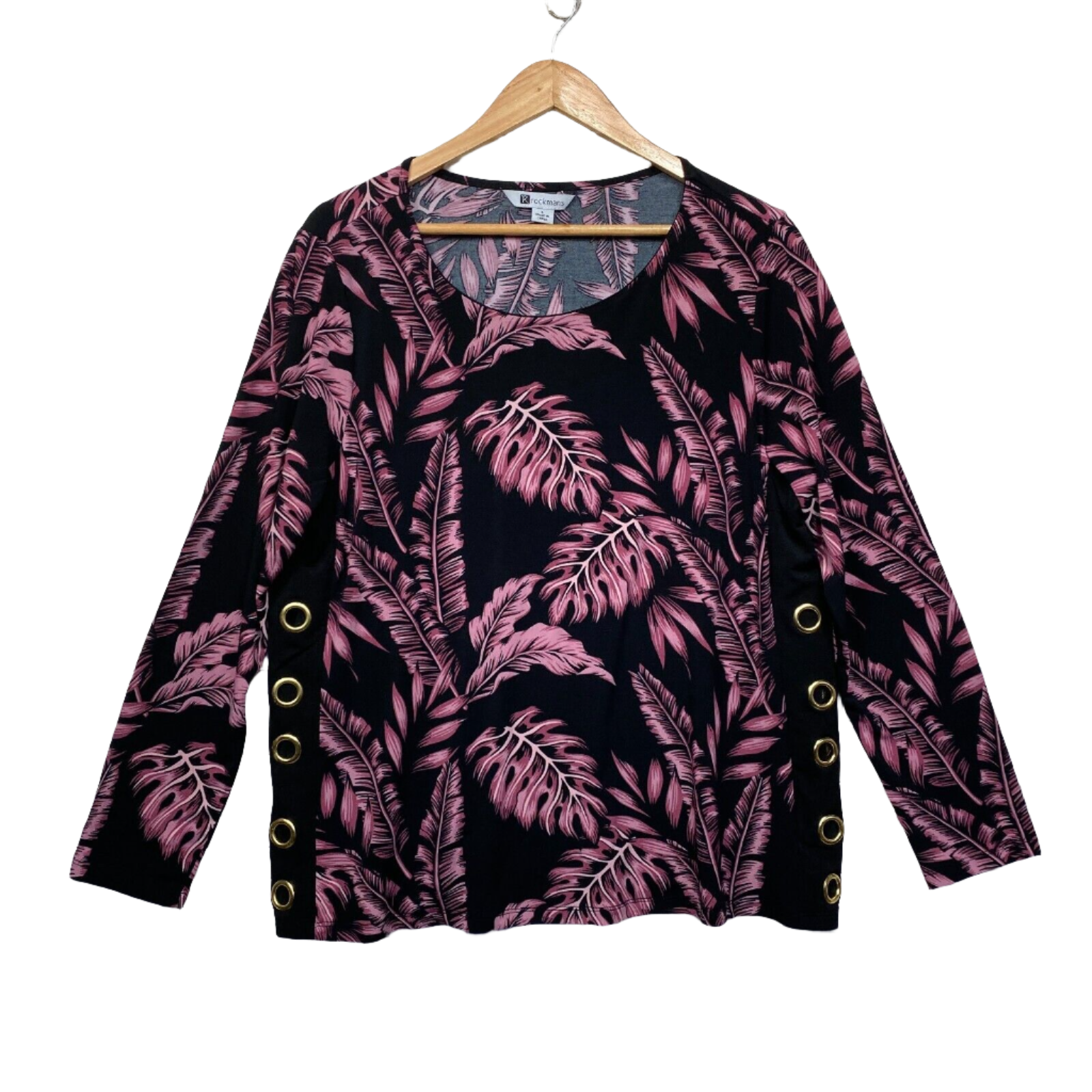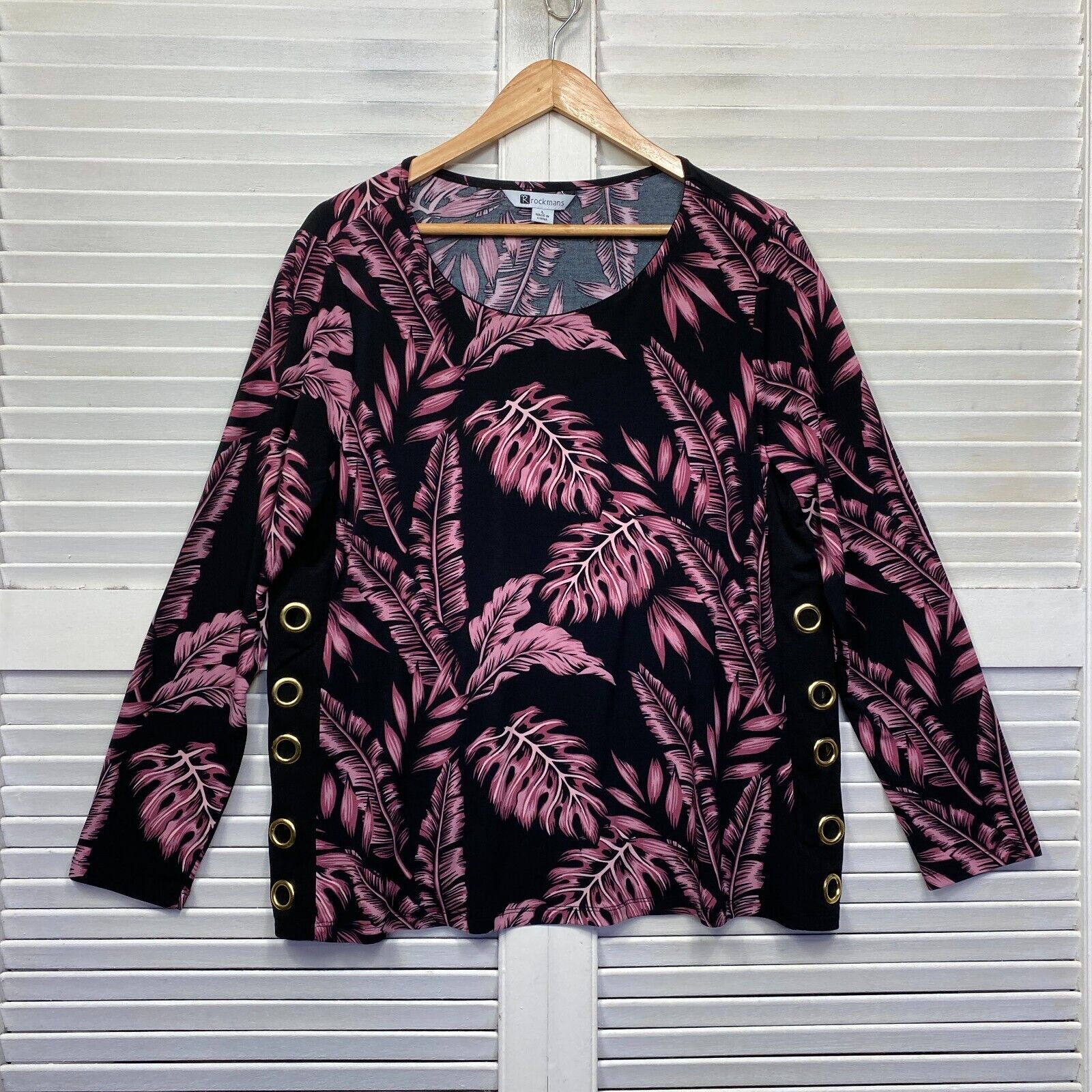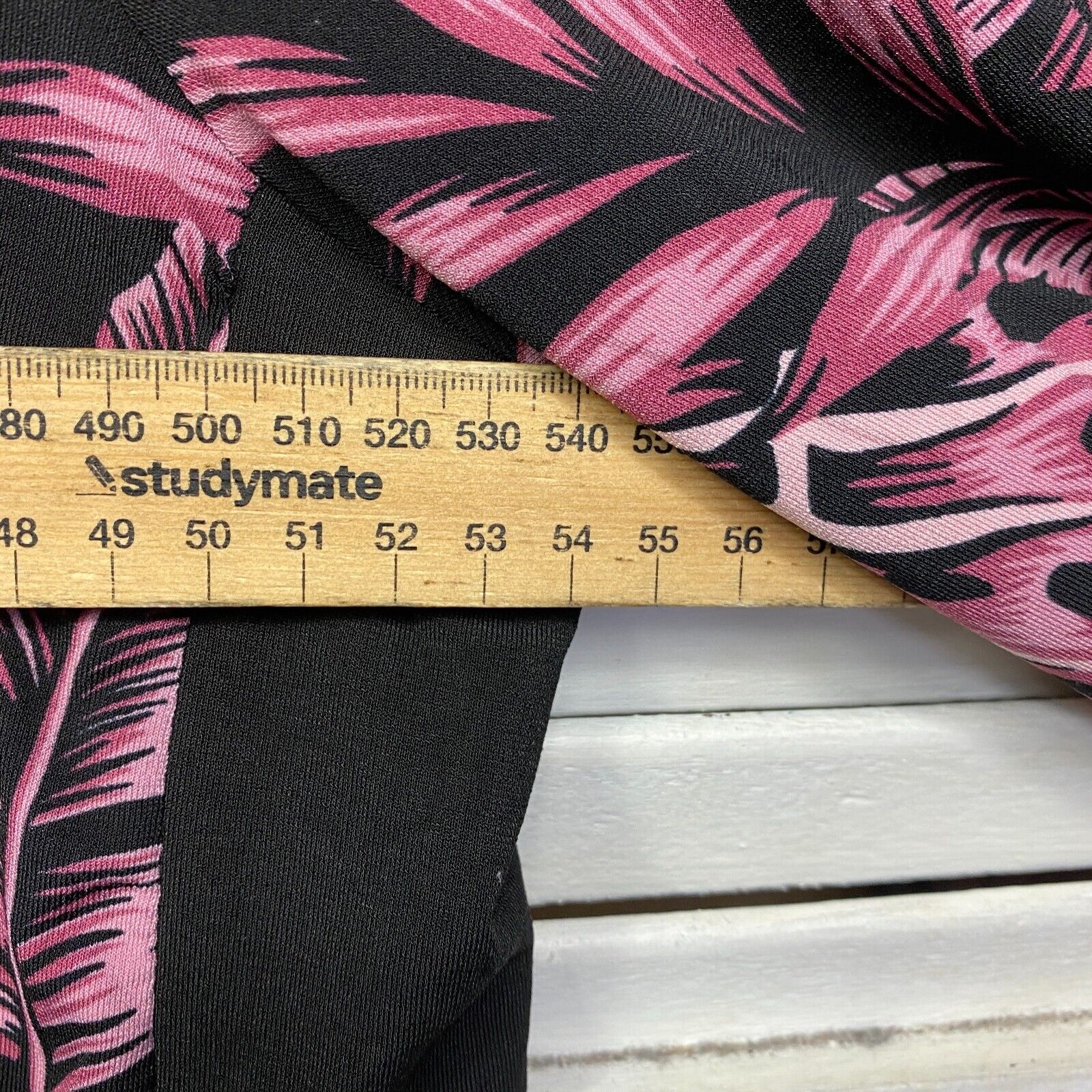 Rockmans Top Size Large Black Pink Floral Leaf Print Long Sleeve