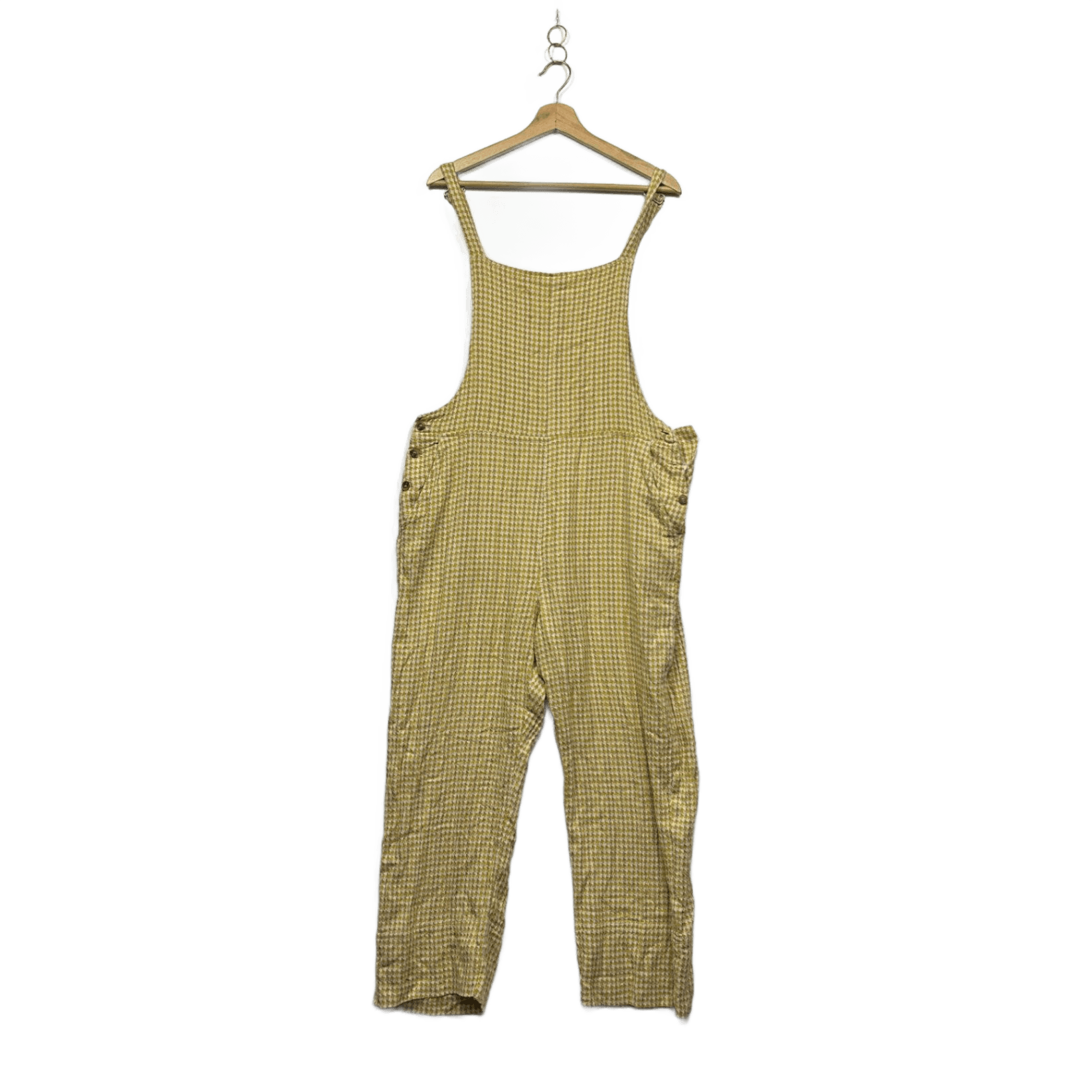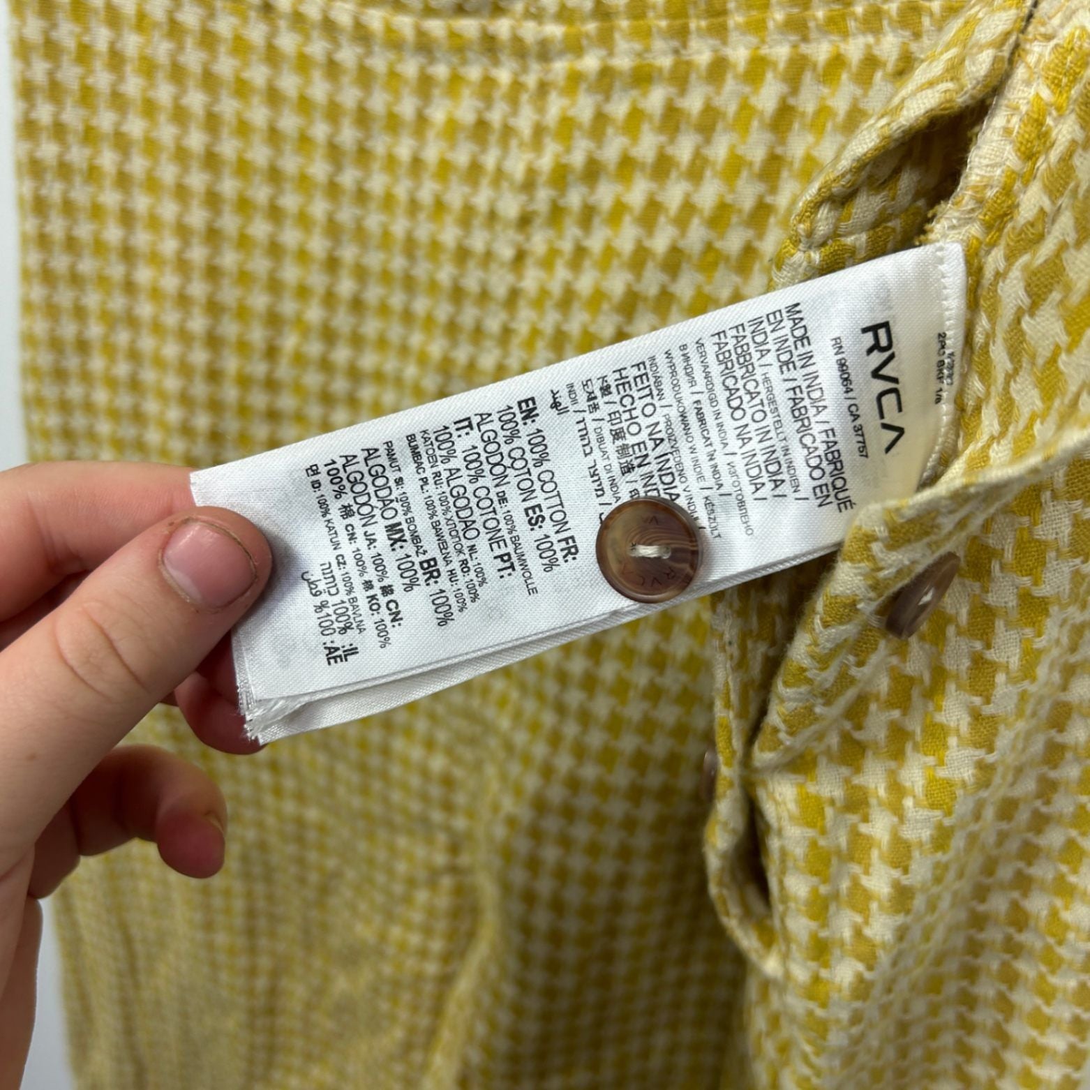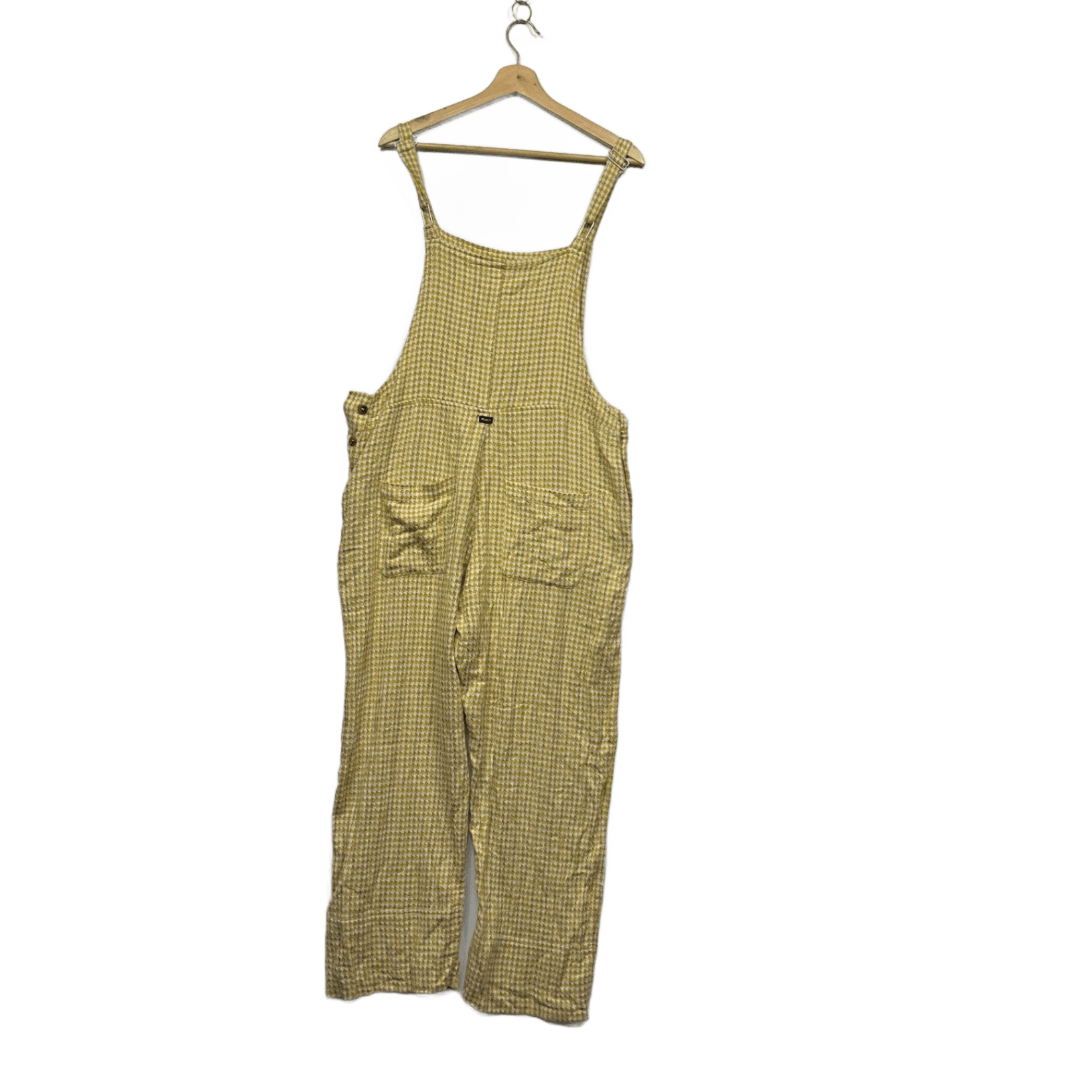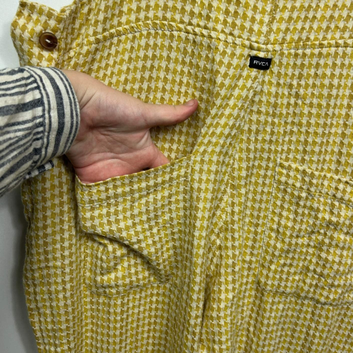 RVCA Mustard White Houndstooth Check Pinafore Boho Jumpsuit Overalls Pockets 14
