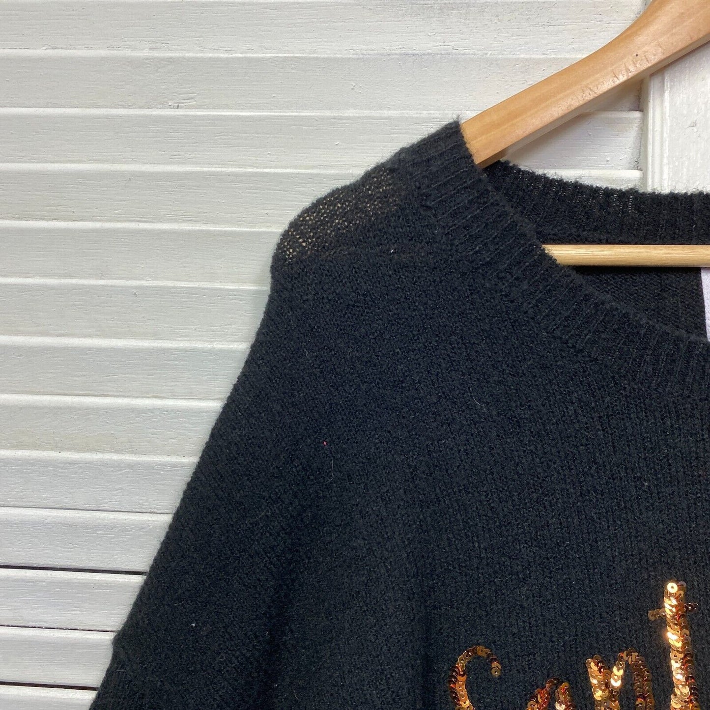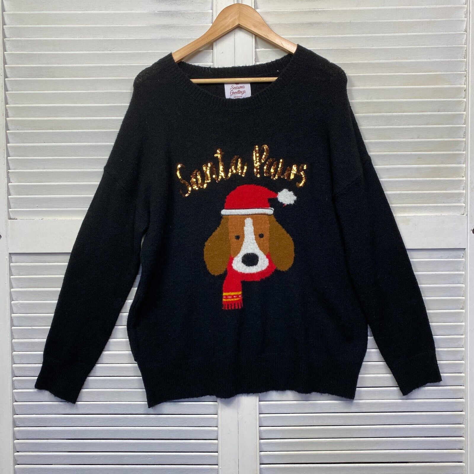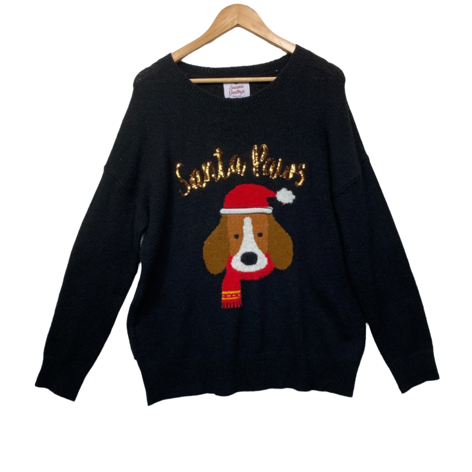 Santa Paws Christmas Jumper Size 14 Sweater Knit Dog Black Long Sleeve Sequins