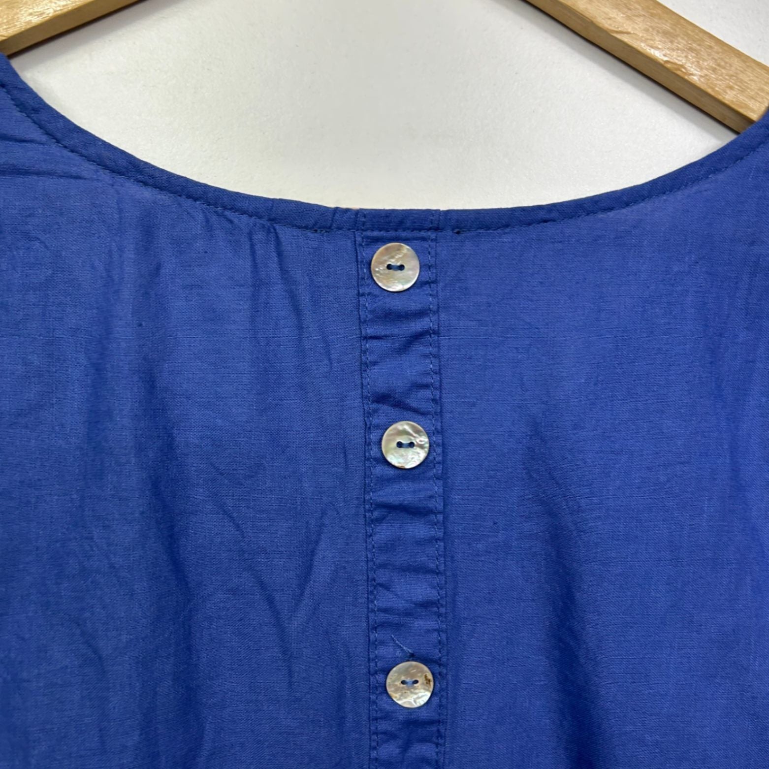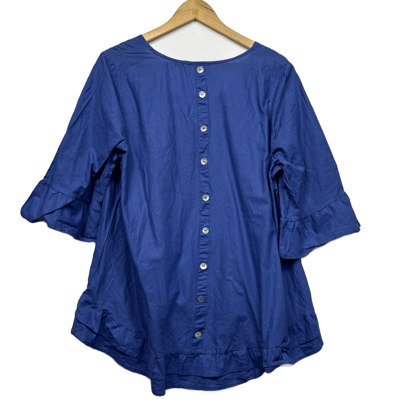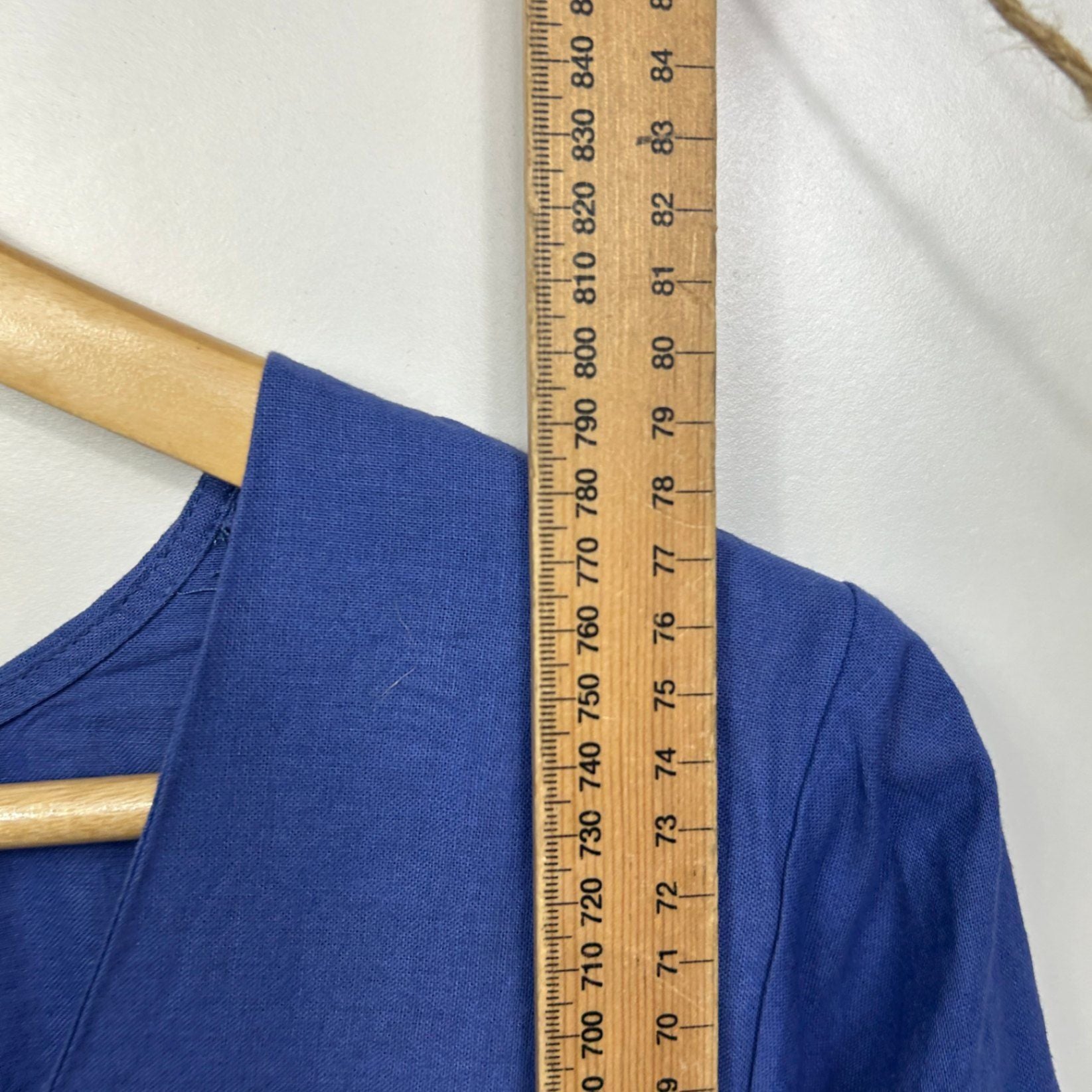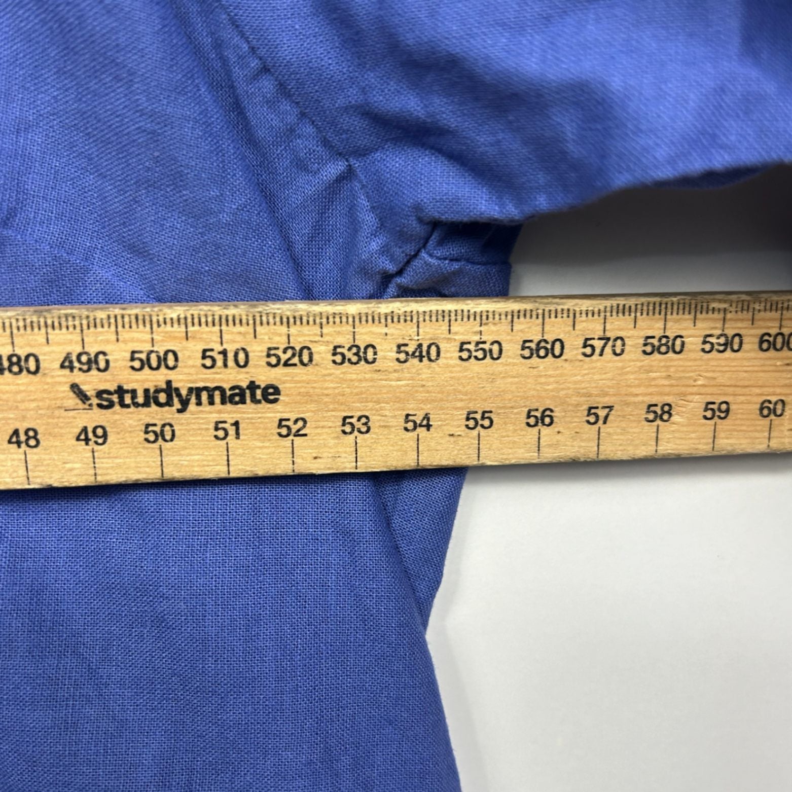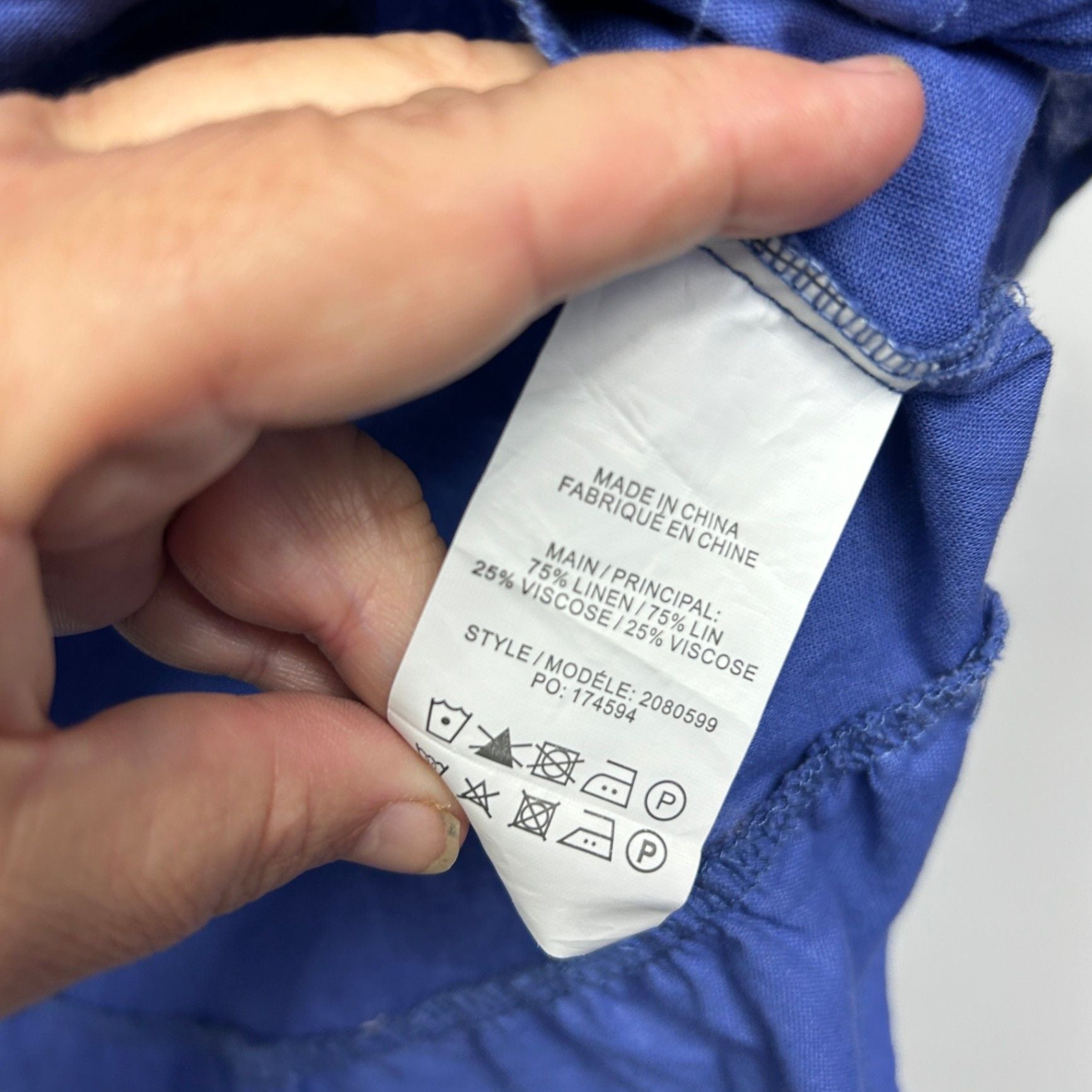 Sara Blue Linen Blend 3/4 Sleeve V-Neck Ruffle Top Blouse Size 14