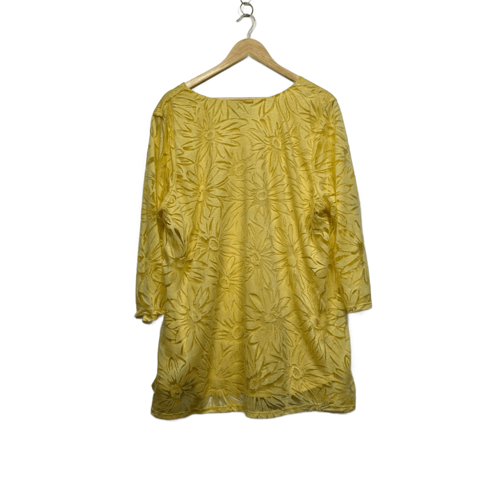 Sara Women's Yellow 3/4 Sleeve Sheer Overlay Blouse Top Size 20