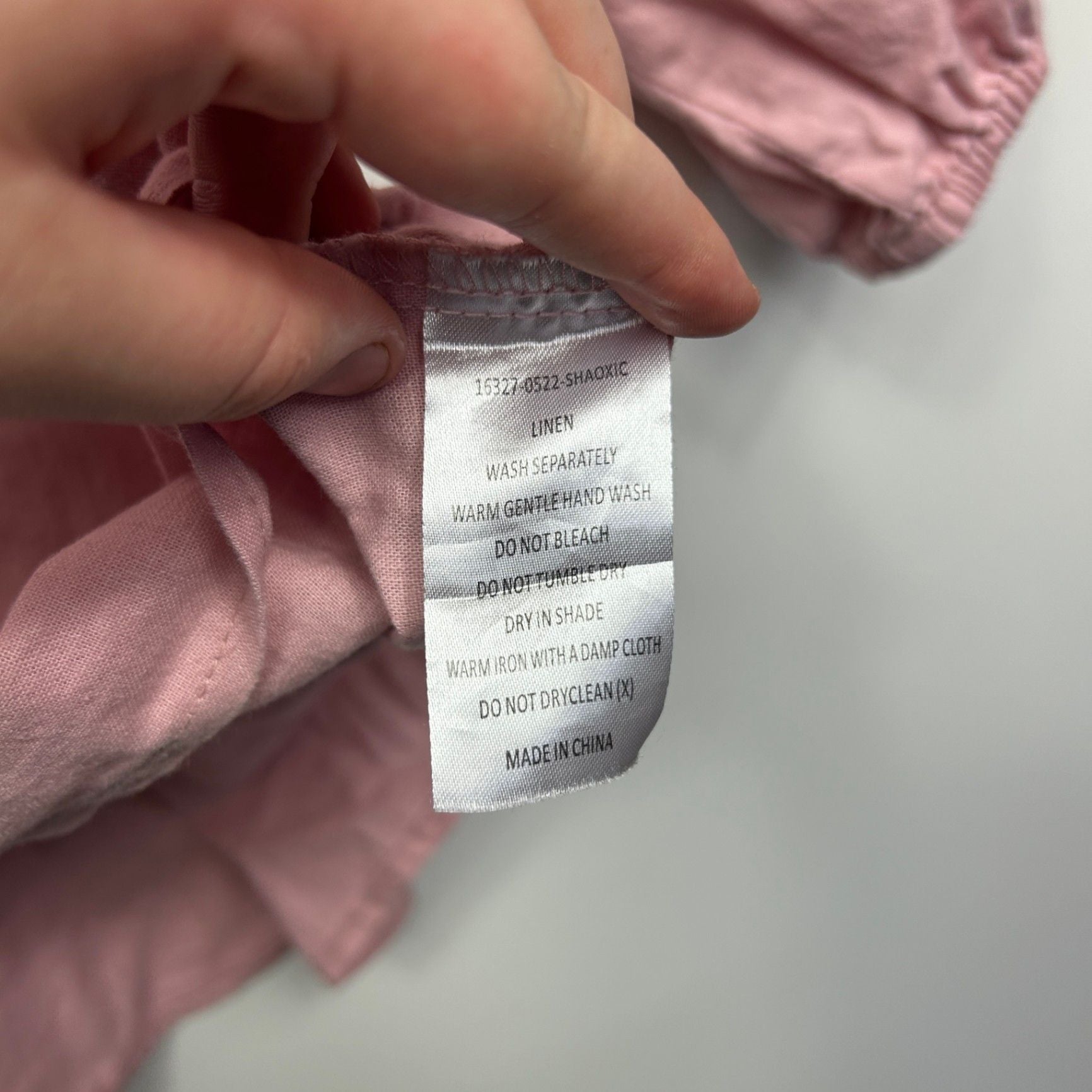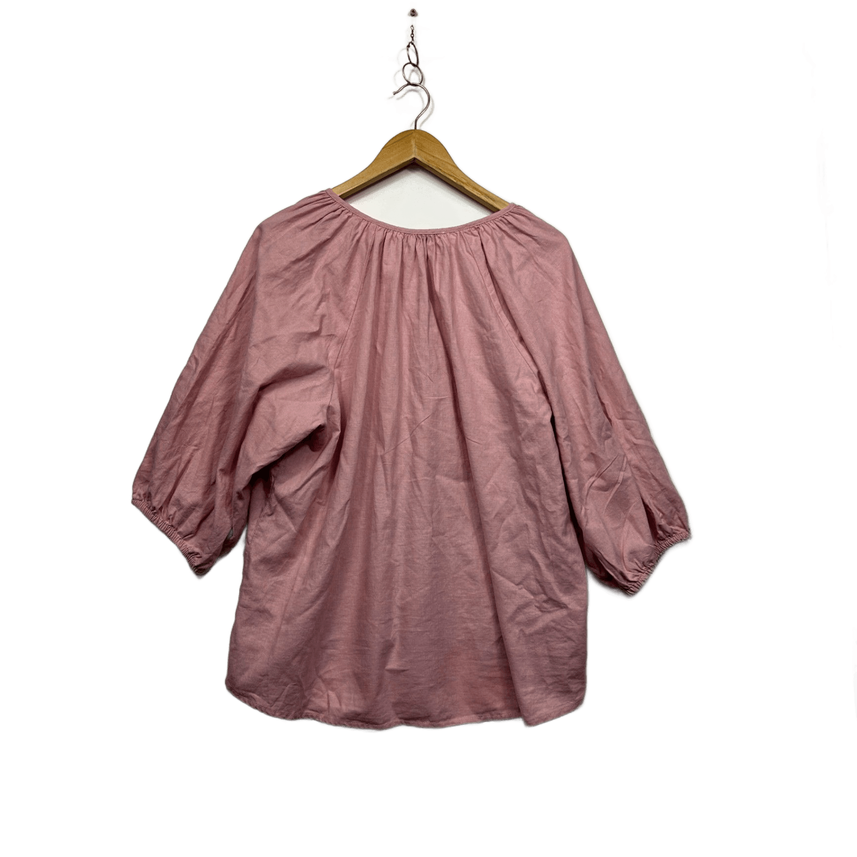 Sass Women's Pink Linen 3/4 Sleeve V-Neck Hi Low Top Blouse Size 16