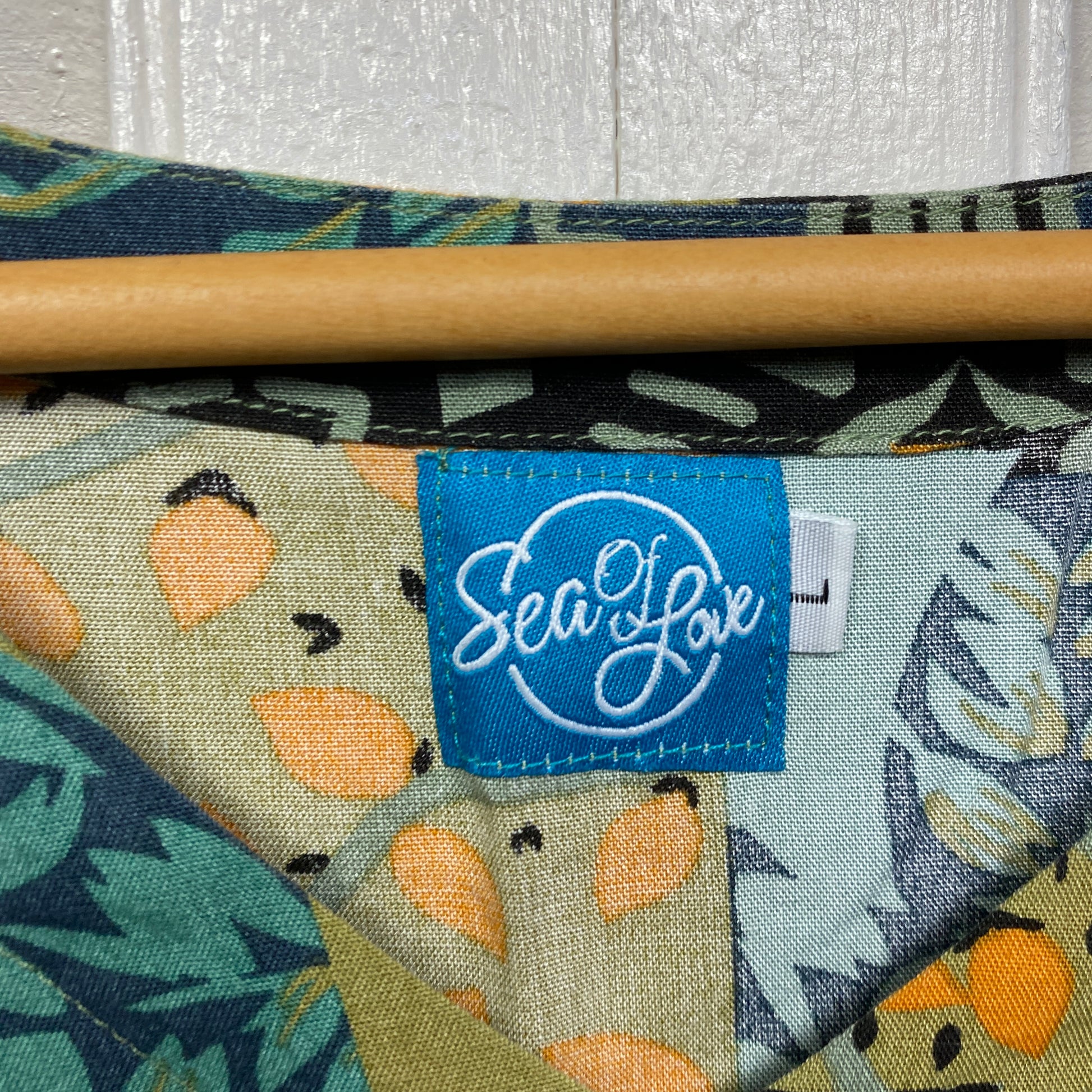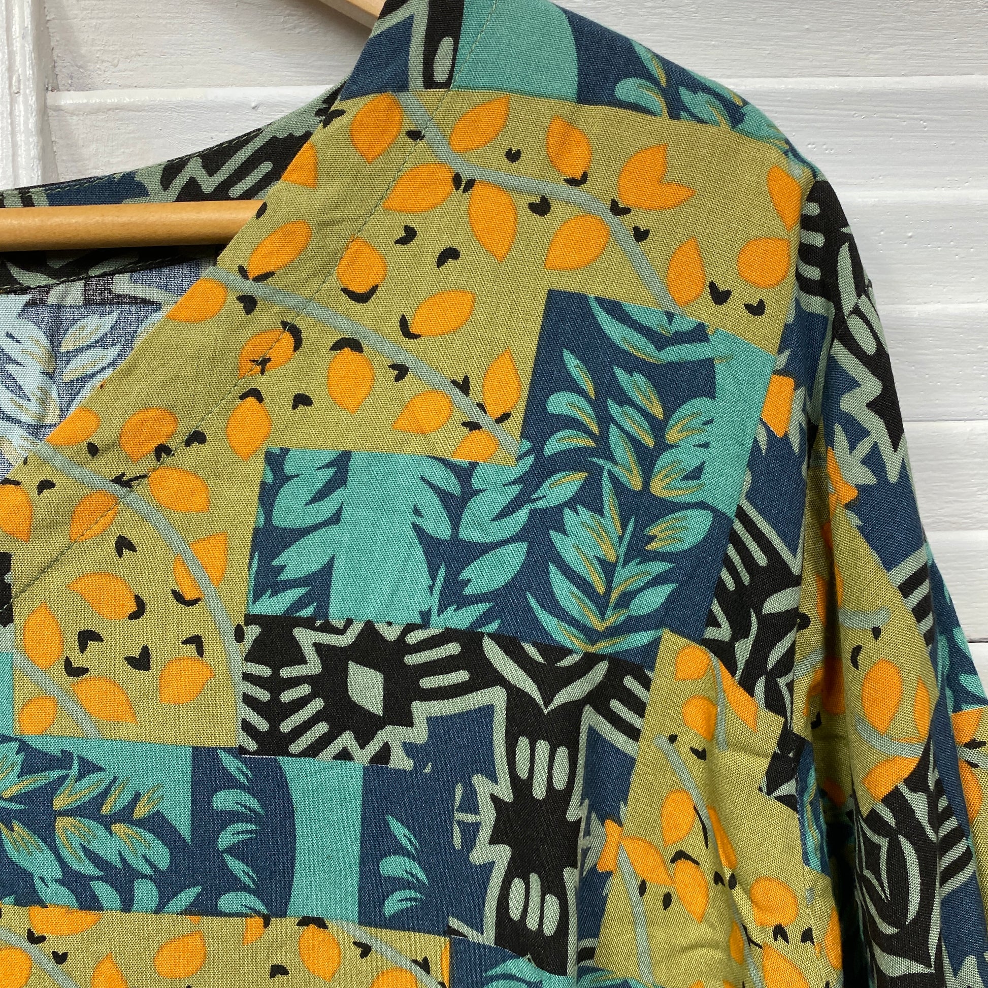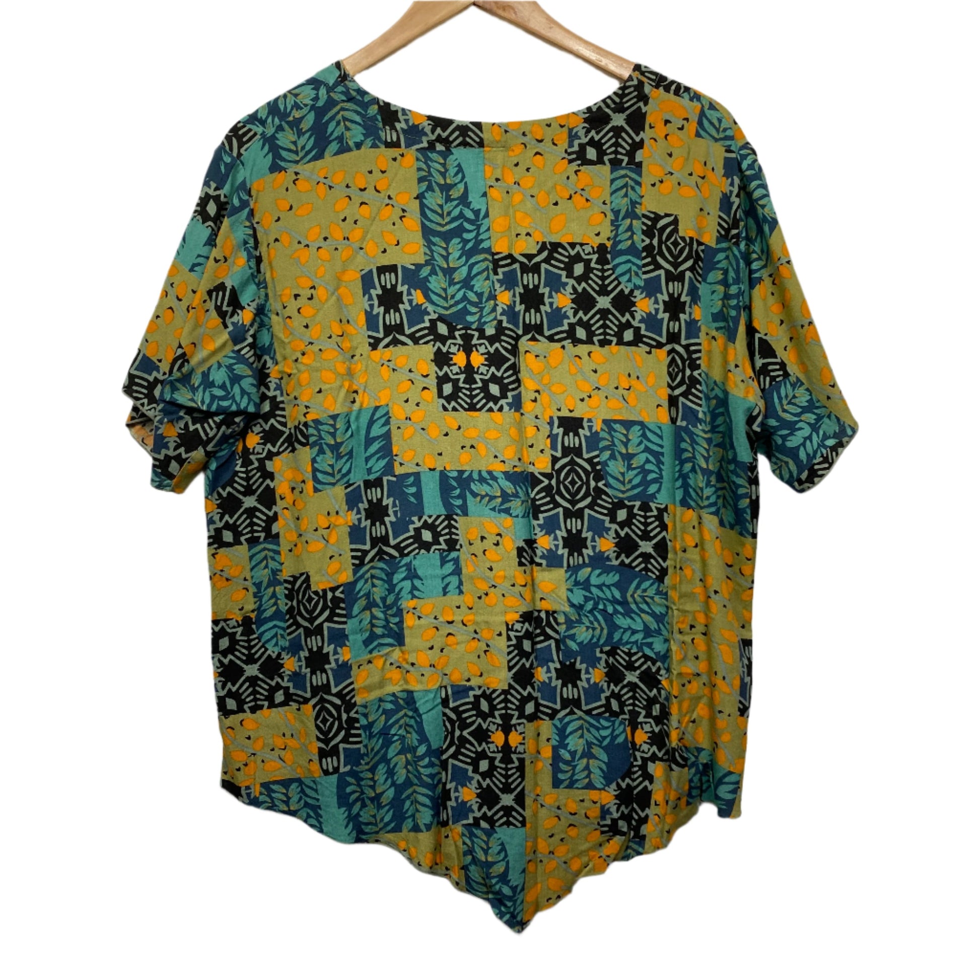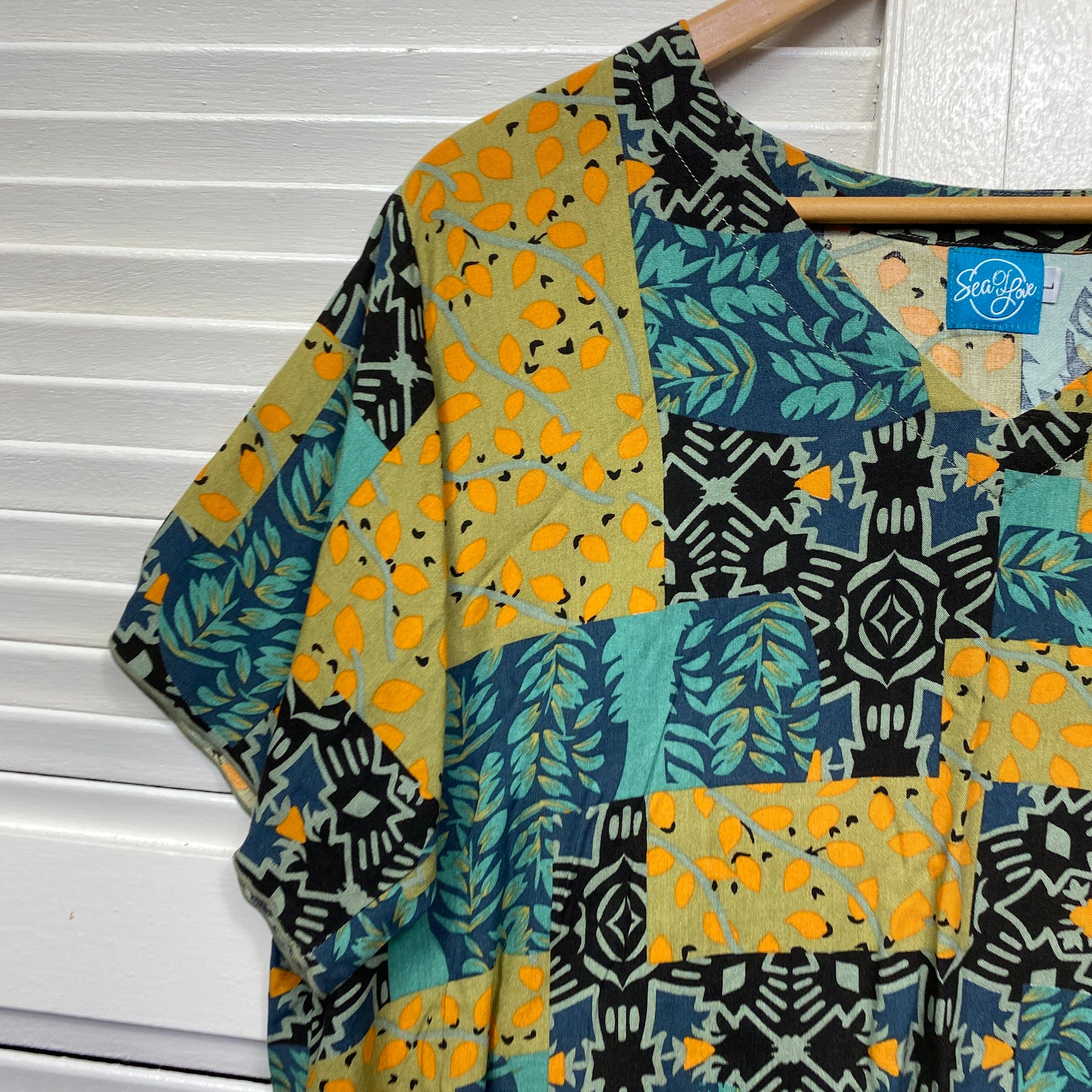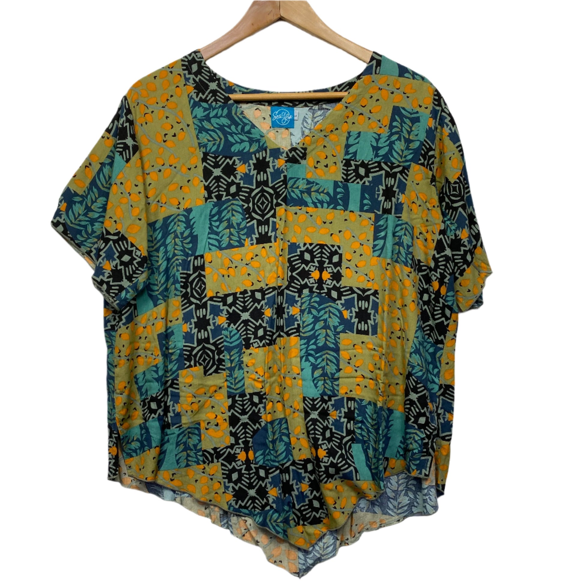 Sea Of Love Top Size 14 Large Multicoloured Patchwork Print Mustard Teal