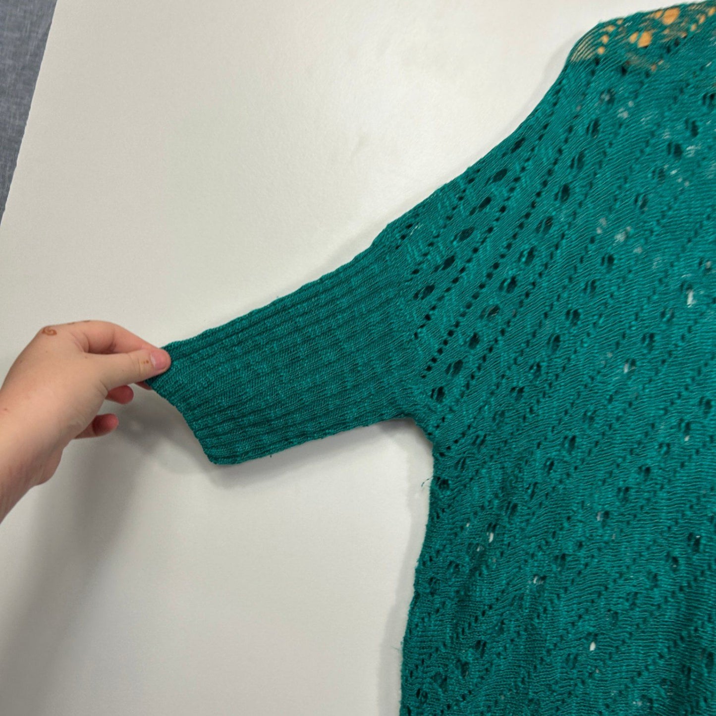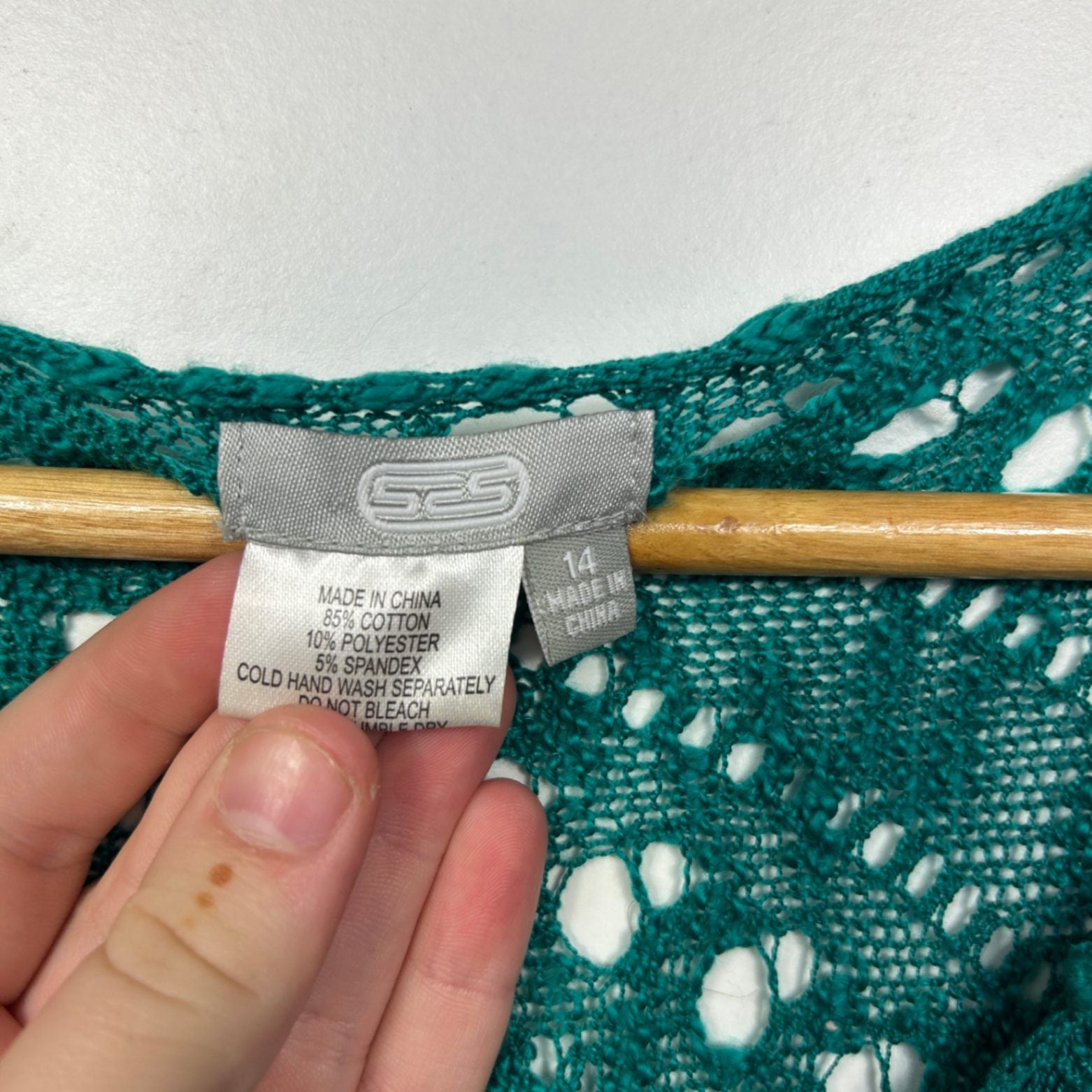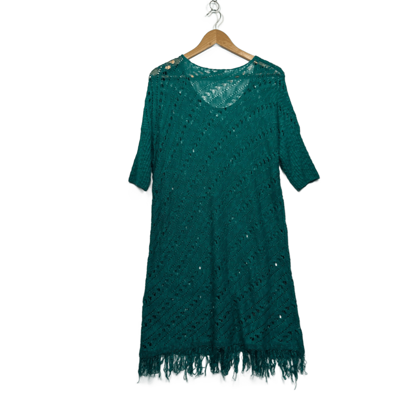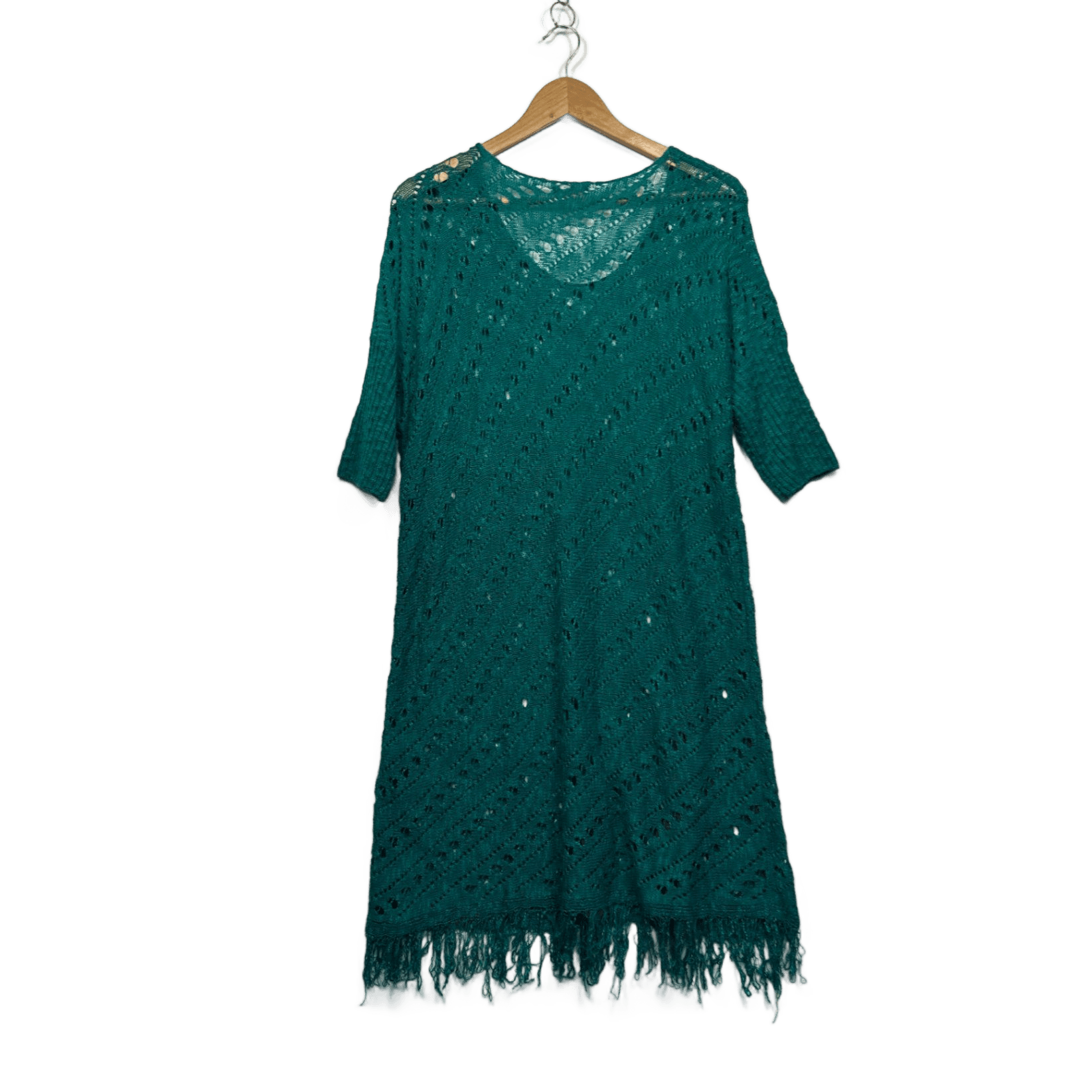 SES Green Cotton Blend Sheer Knit Boho Cover Up Dress Size 14