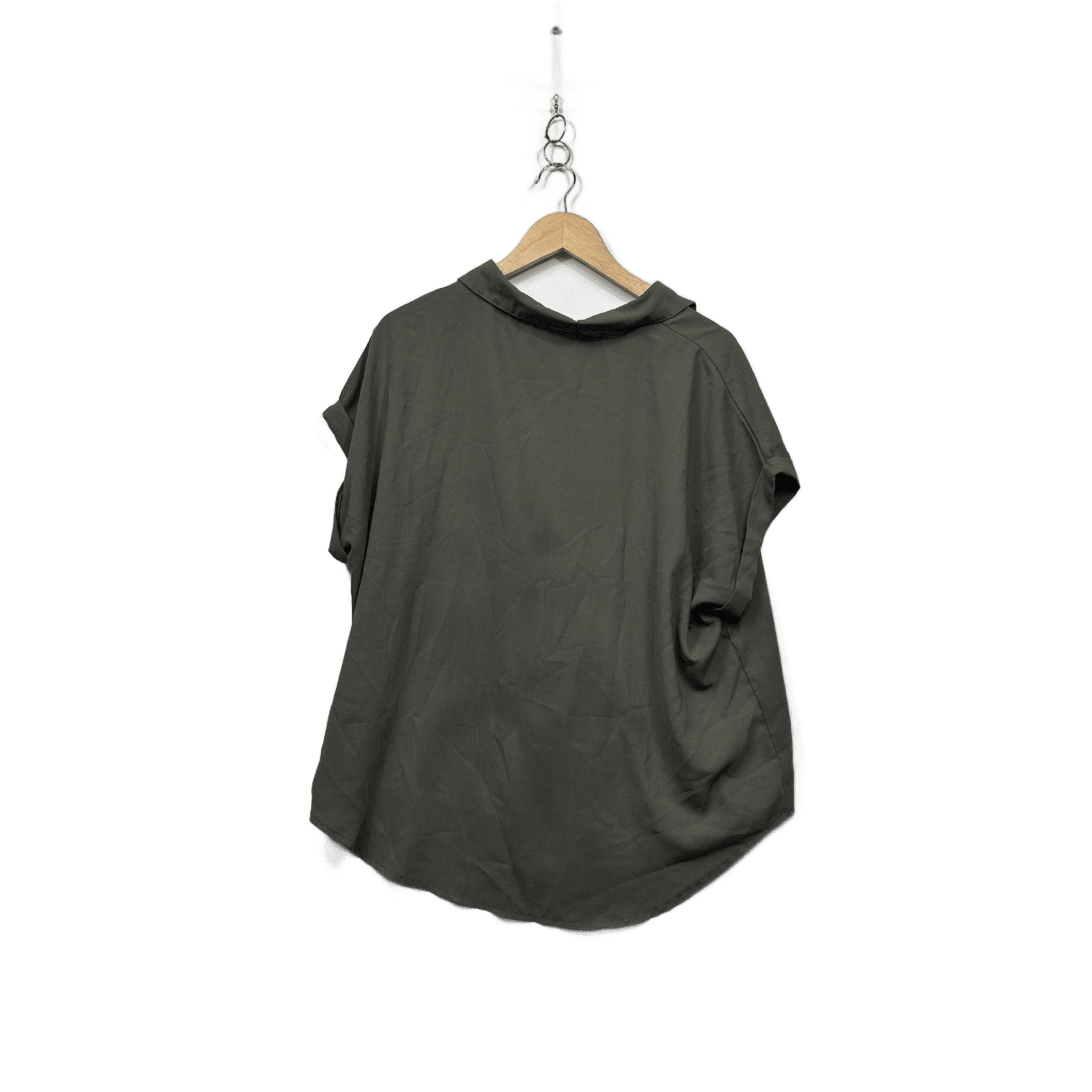 Shein Olive Green Short Sleeve Collared Button Up Blouse Size 2XL