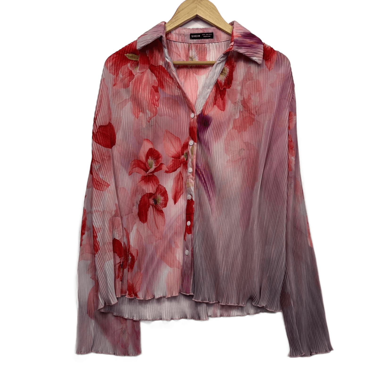 Shein Top Blouse Size 14 16 XL Pink Long Sleeve Floral Pleated Button Up