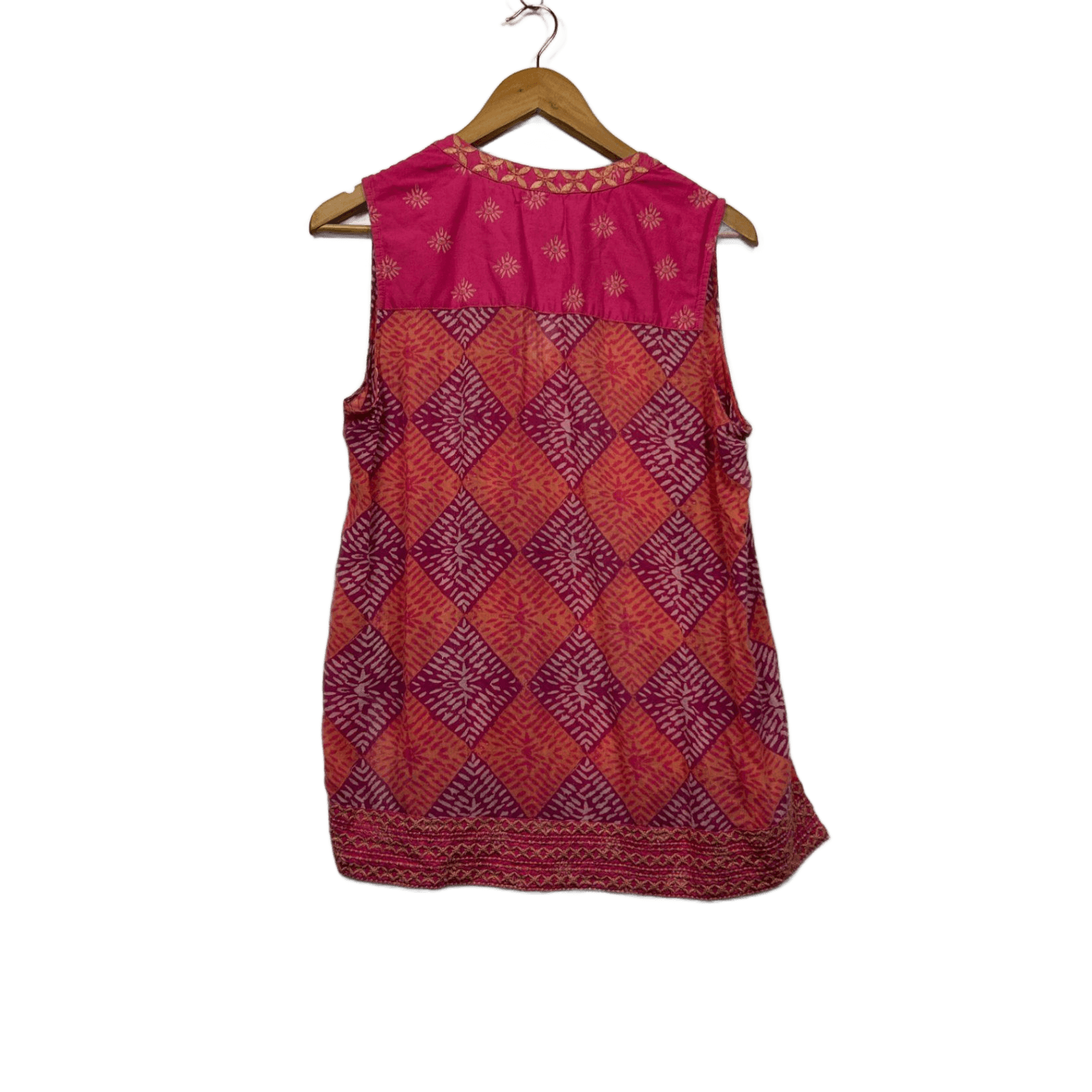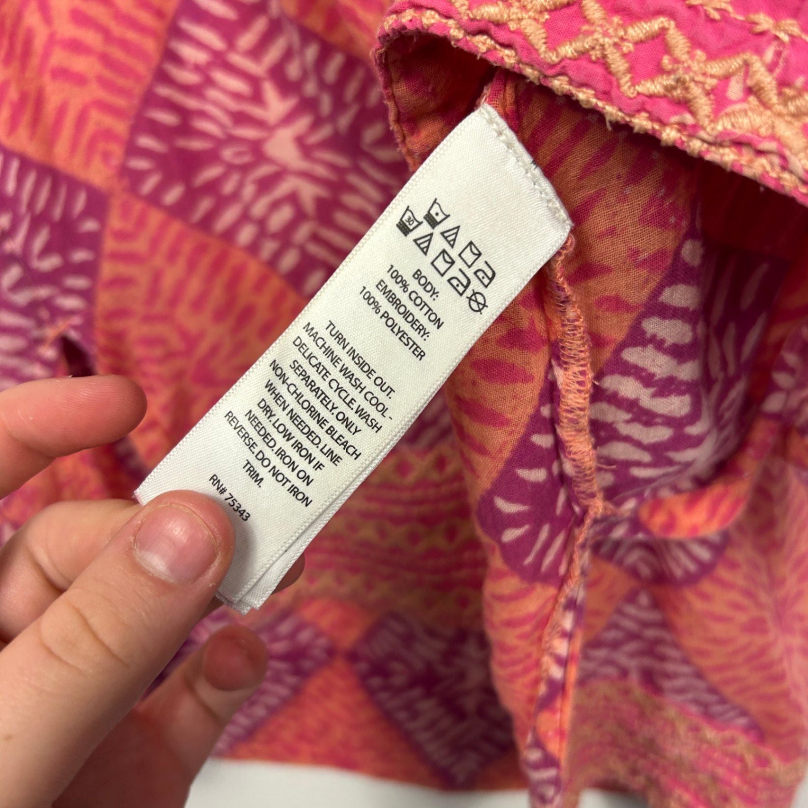Sigrid Olsen Pink Orange Sleeveless Embroidered Boho Top Size 14
