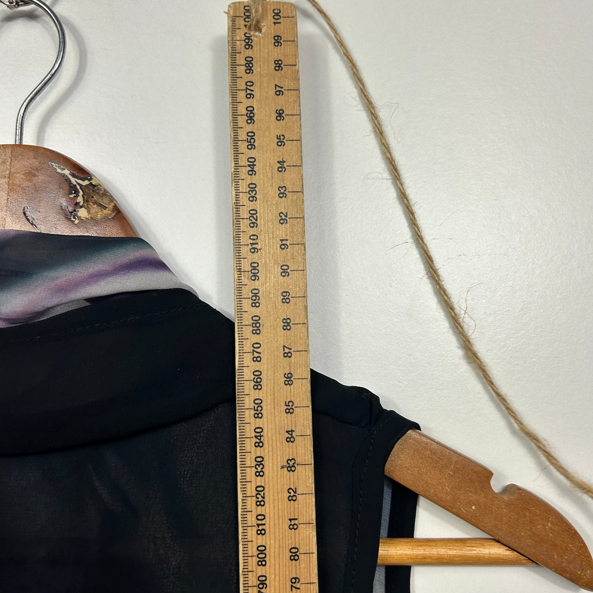 Sleeveless Black Vest with Watercolor Print Overlay Top - Size 14/16