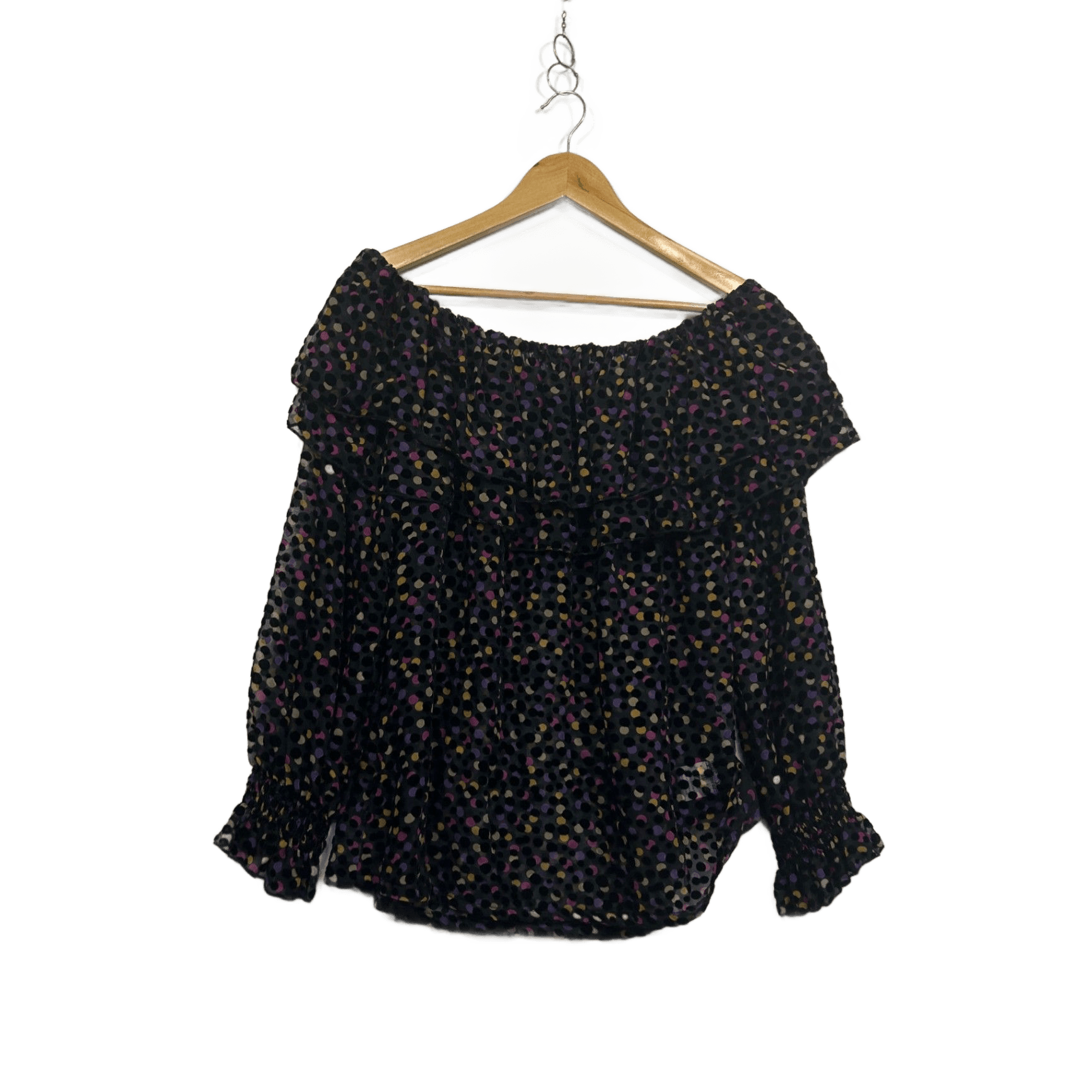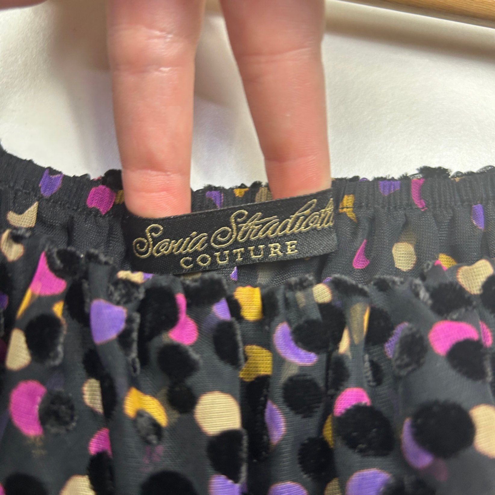 Sonia Stradiotto Couture Velvet Dot Off The Shoulder Ruffle Top Blouse Size 16