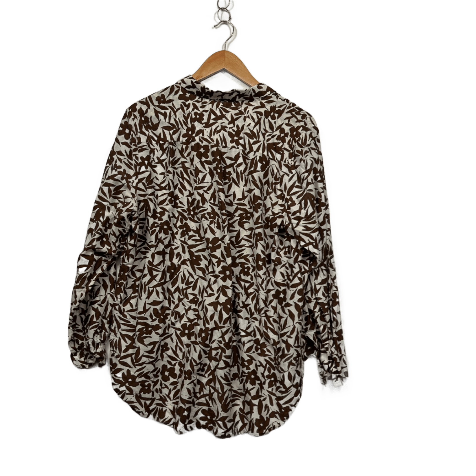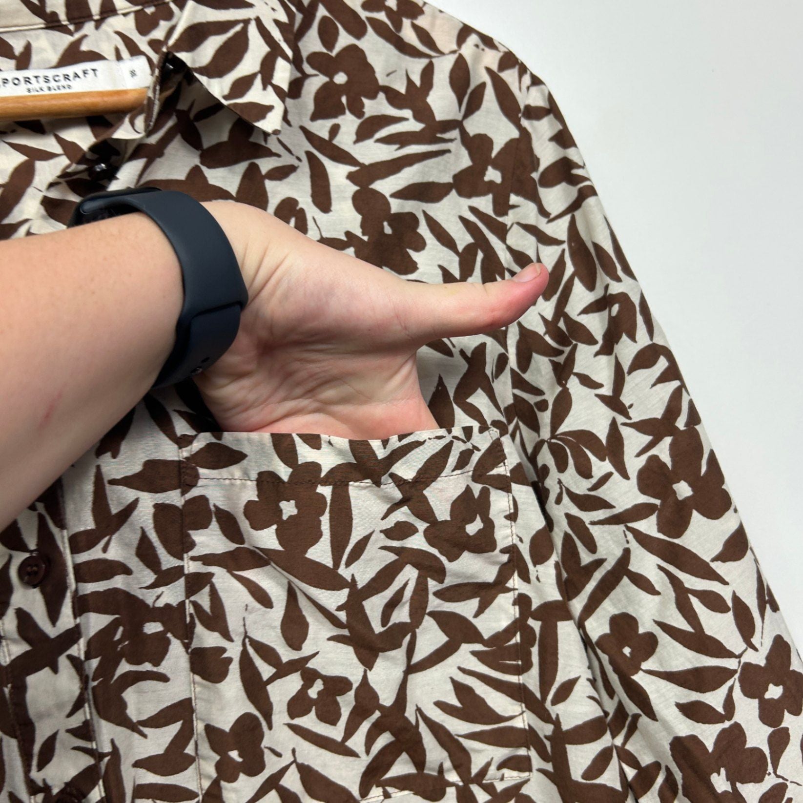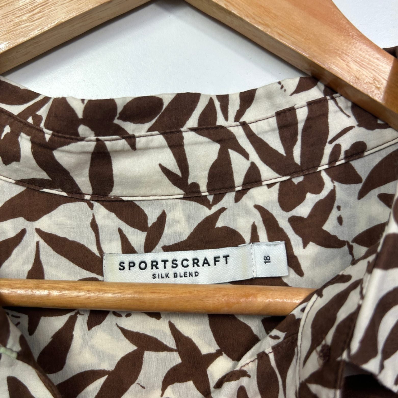 Sportscraft Brown Silk Blend Long Sleeve Button Up Shirt Blouse Size 18