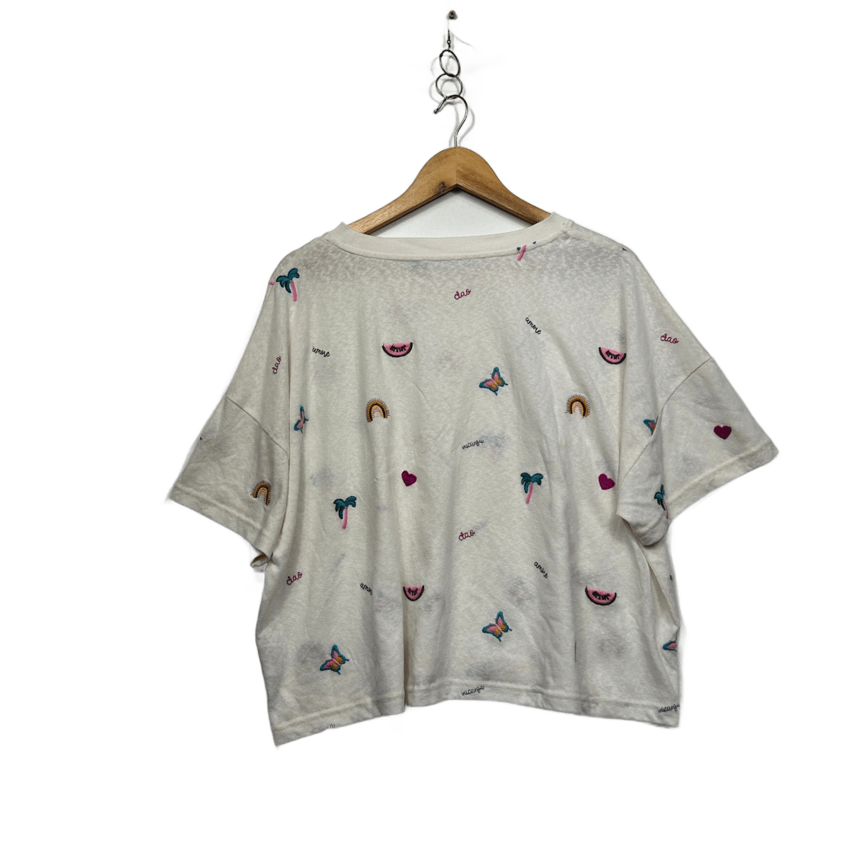 Sportsgirl White Cropped Short Sleeve Crew Neck T-Shirt Size 16 18 2XL Butterfly