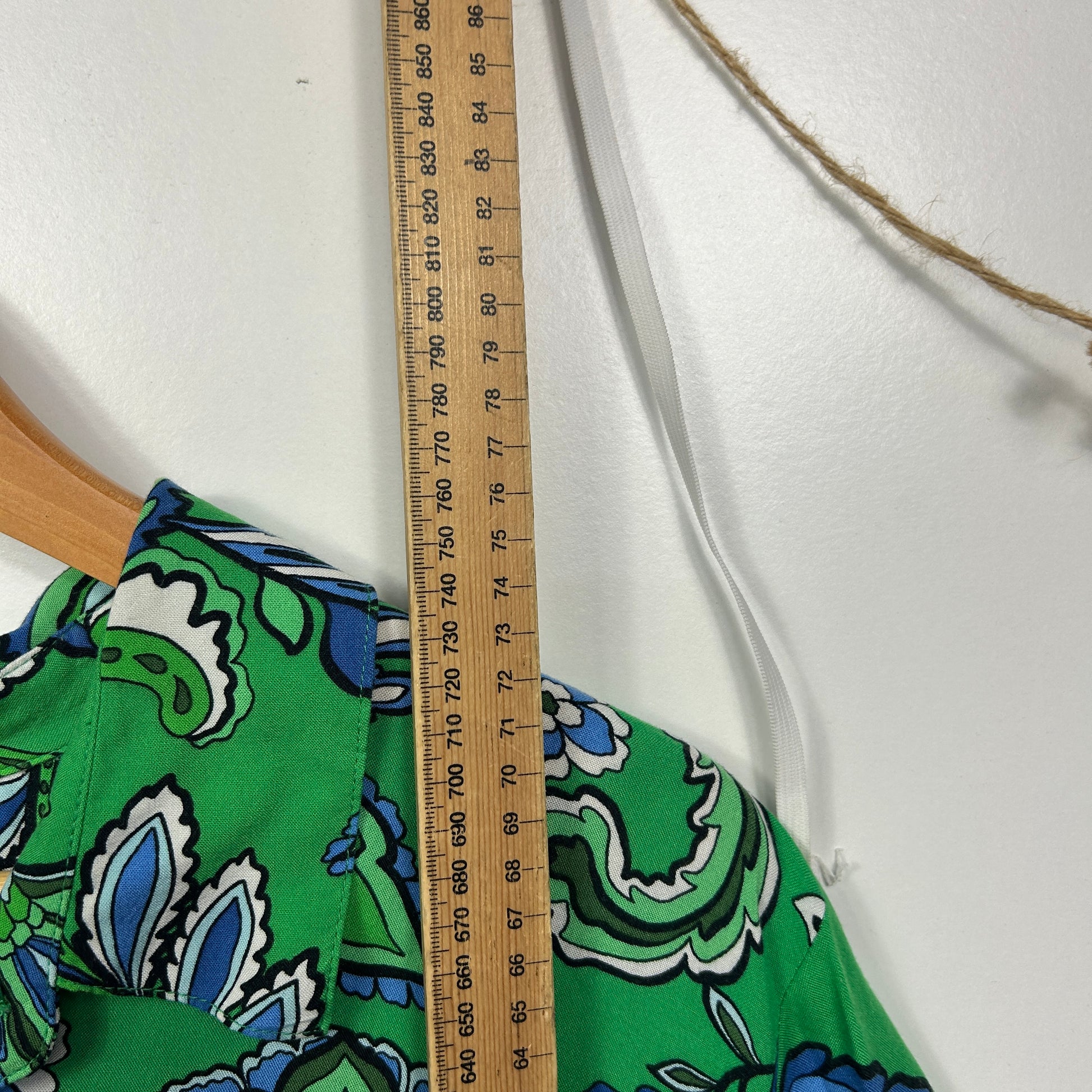 Sussan Green Blue White Paisley Floral Print Button Up Top - Size XL