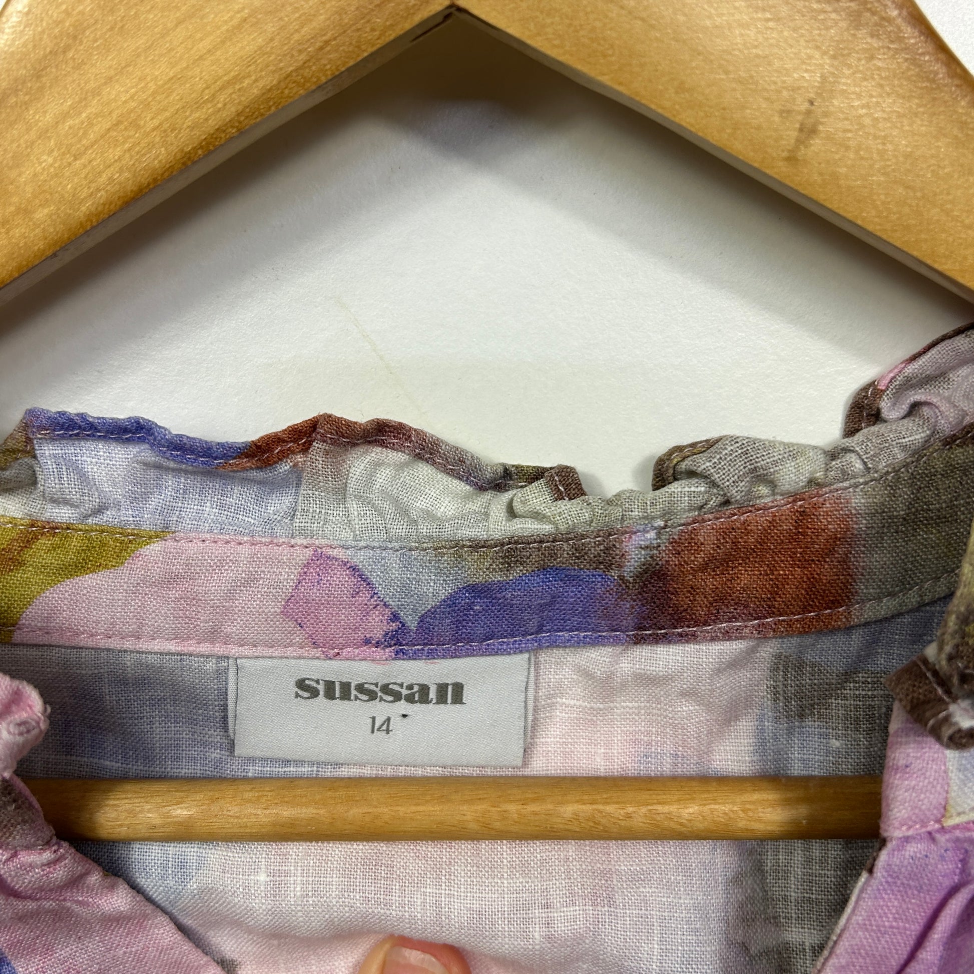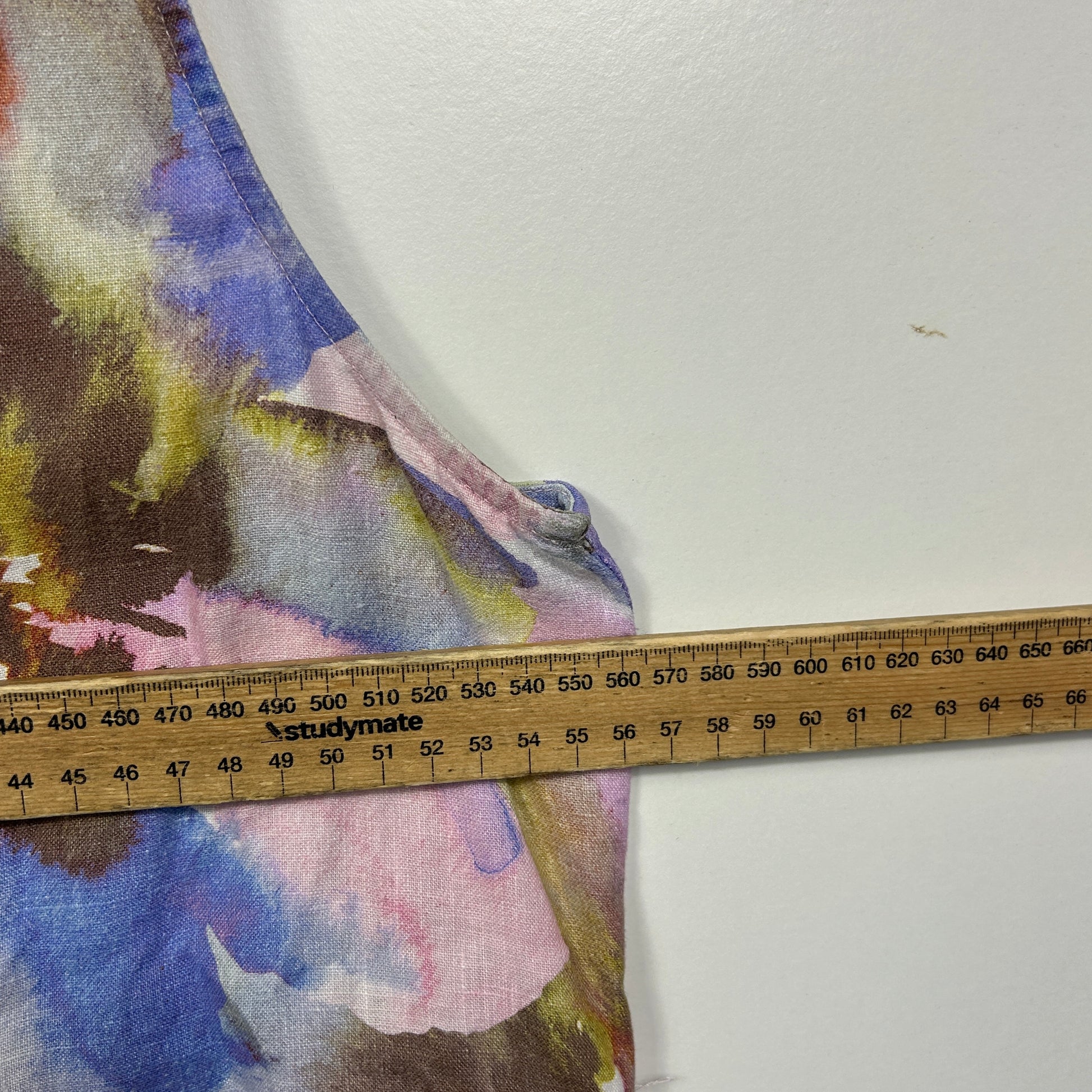 Sussan Multicoloured Floral Sleeveless Linen Dress - Size 14