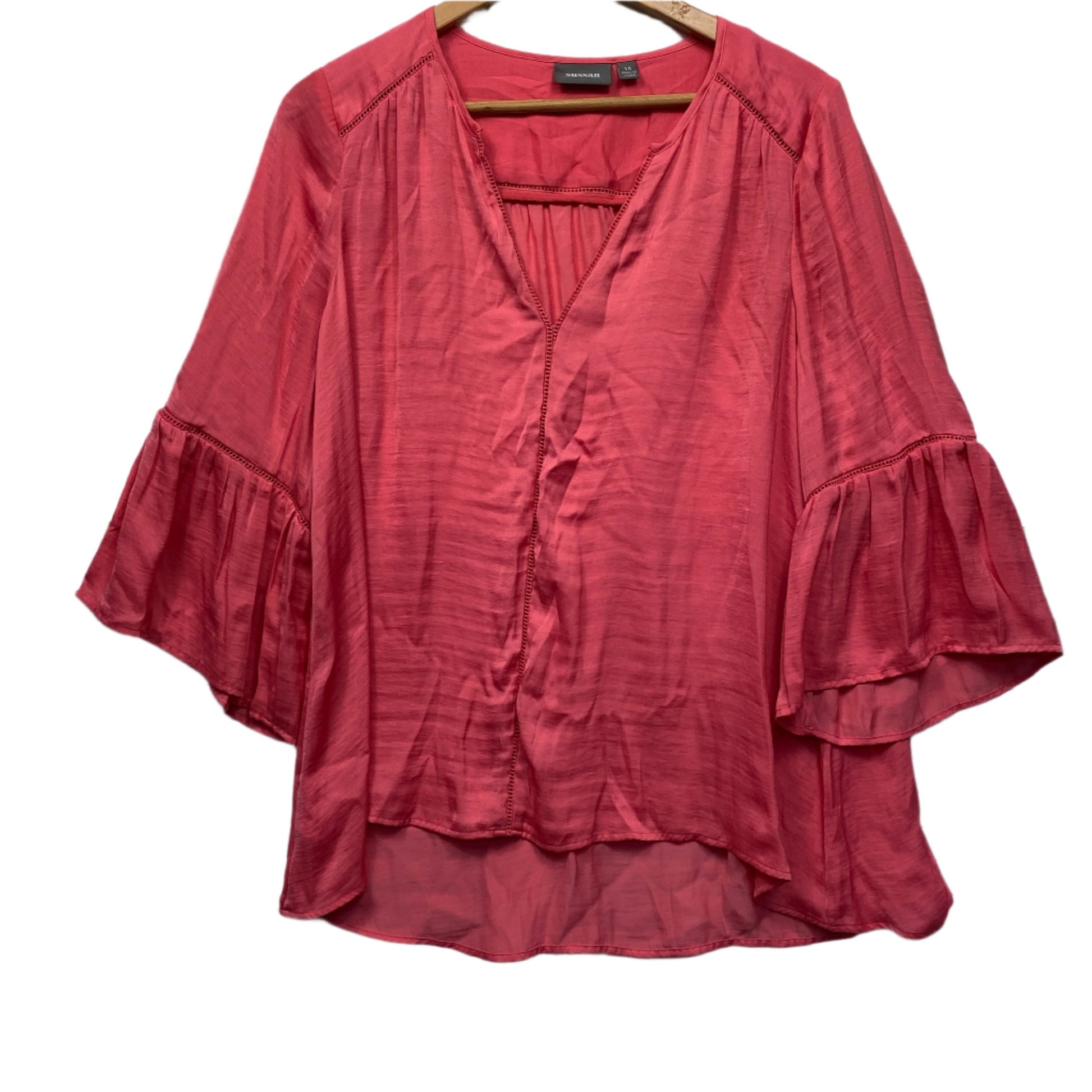 Sussan Top Size 14 Pink Bell Sleeve Button up
