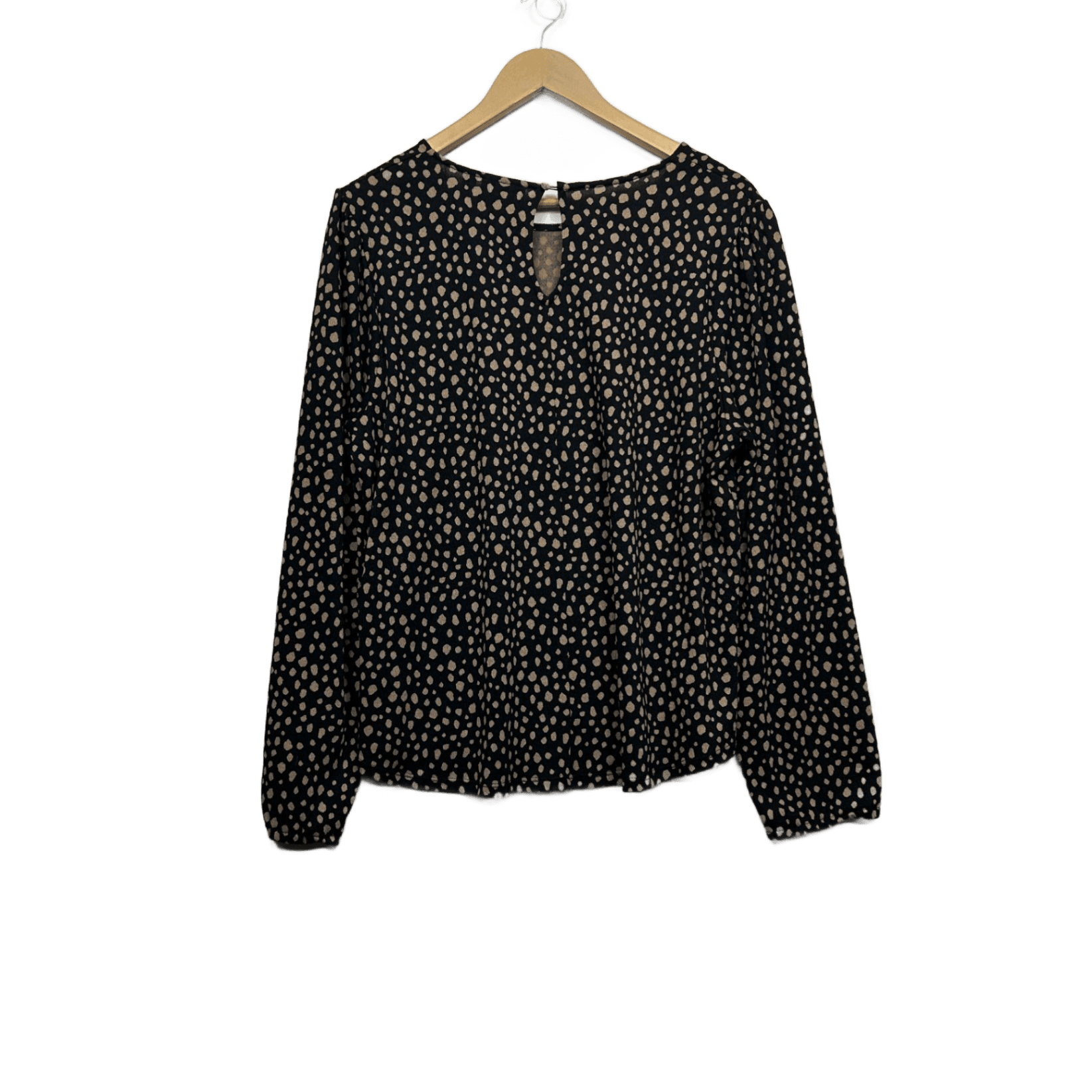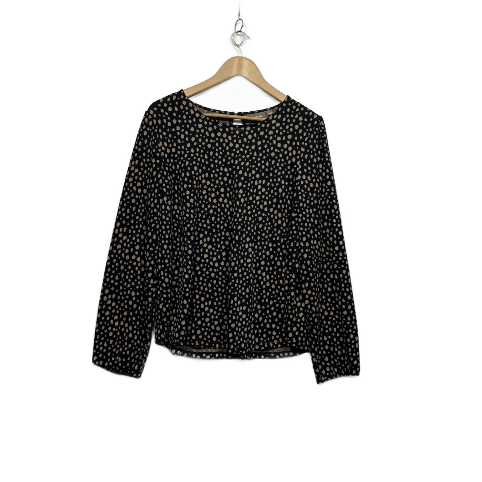 Sussan Womens Black Beige Long Sleeve Top Blouse Size 14 L