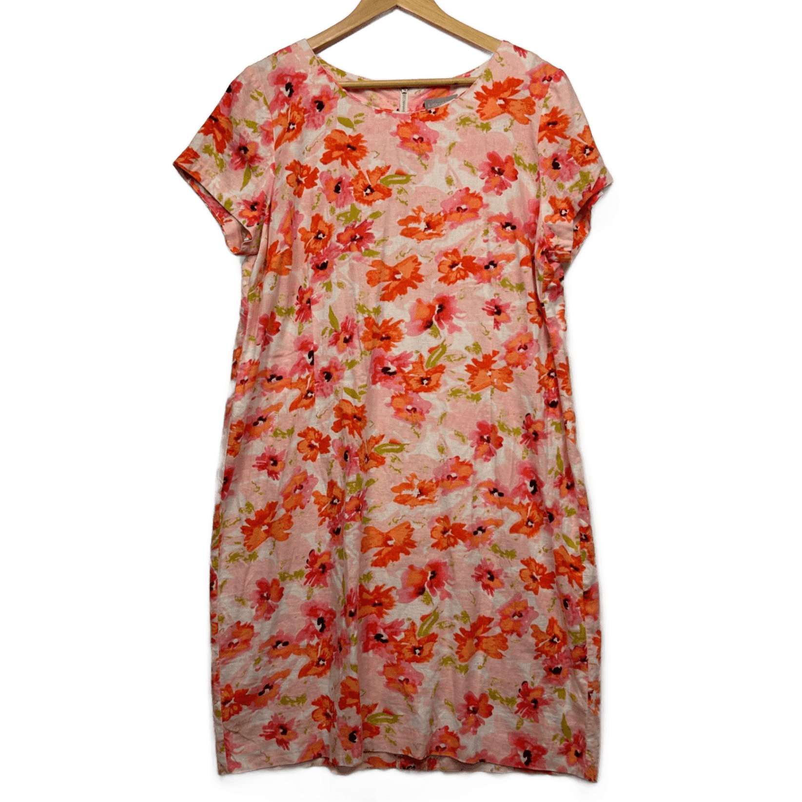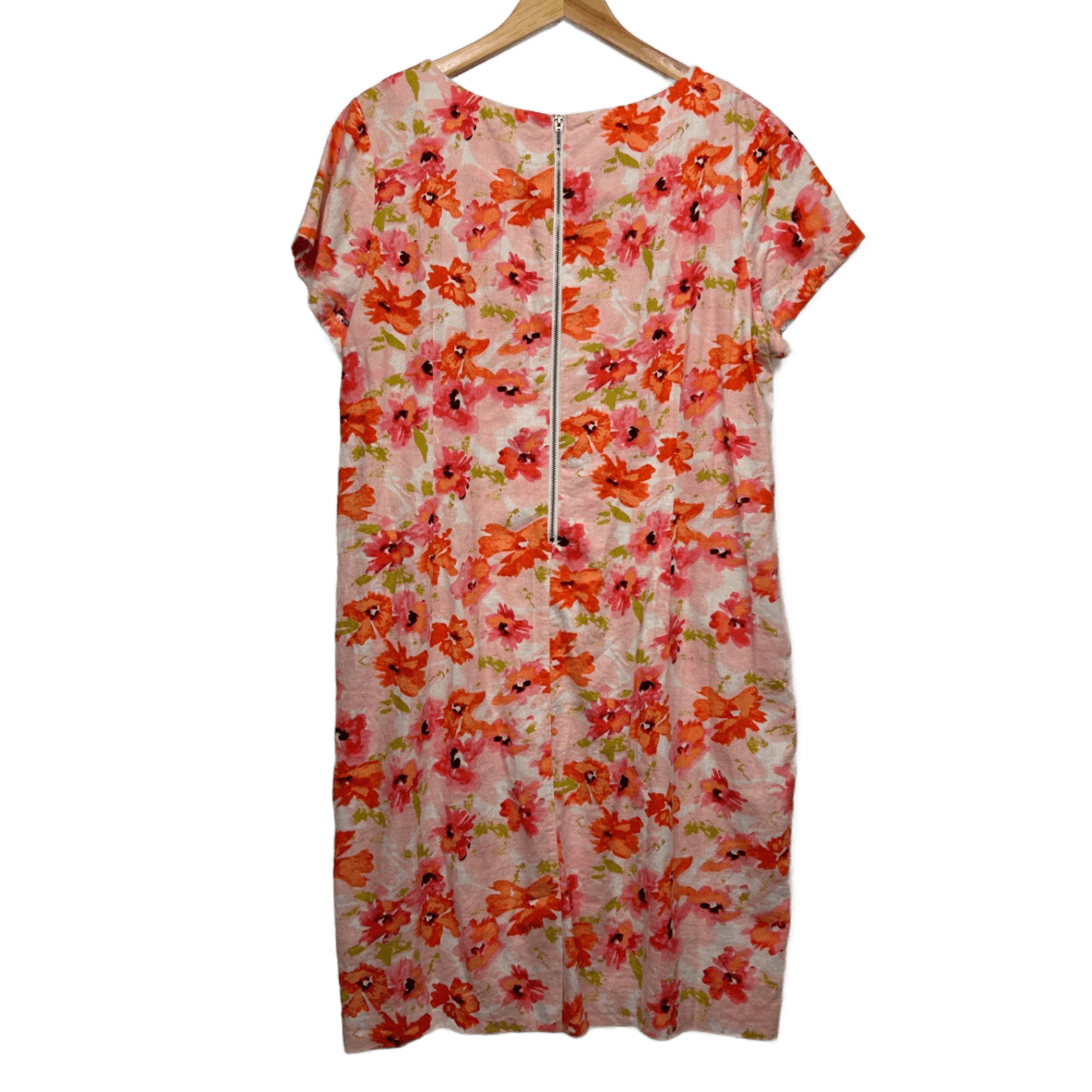 Suzanne Grae Linen Blend Dress Size 18 Multicoloured Floral Short Sleeve