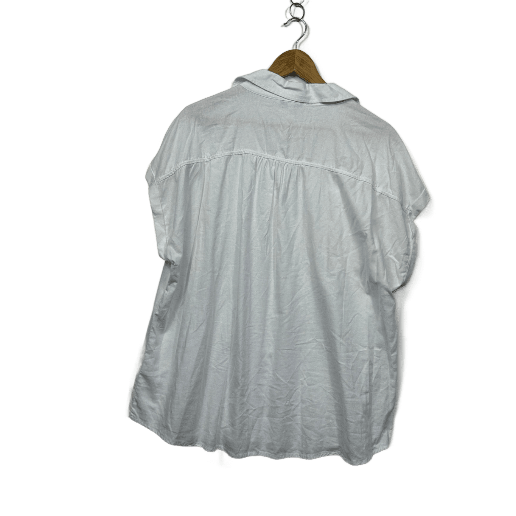 Suzanne Grae Linen White Blend Short Sleeve Collared Button-up Top Size 18