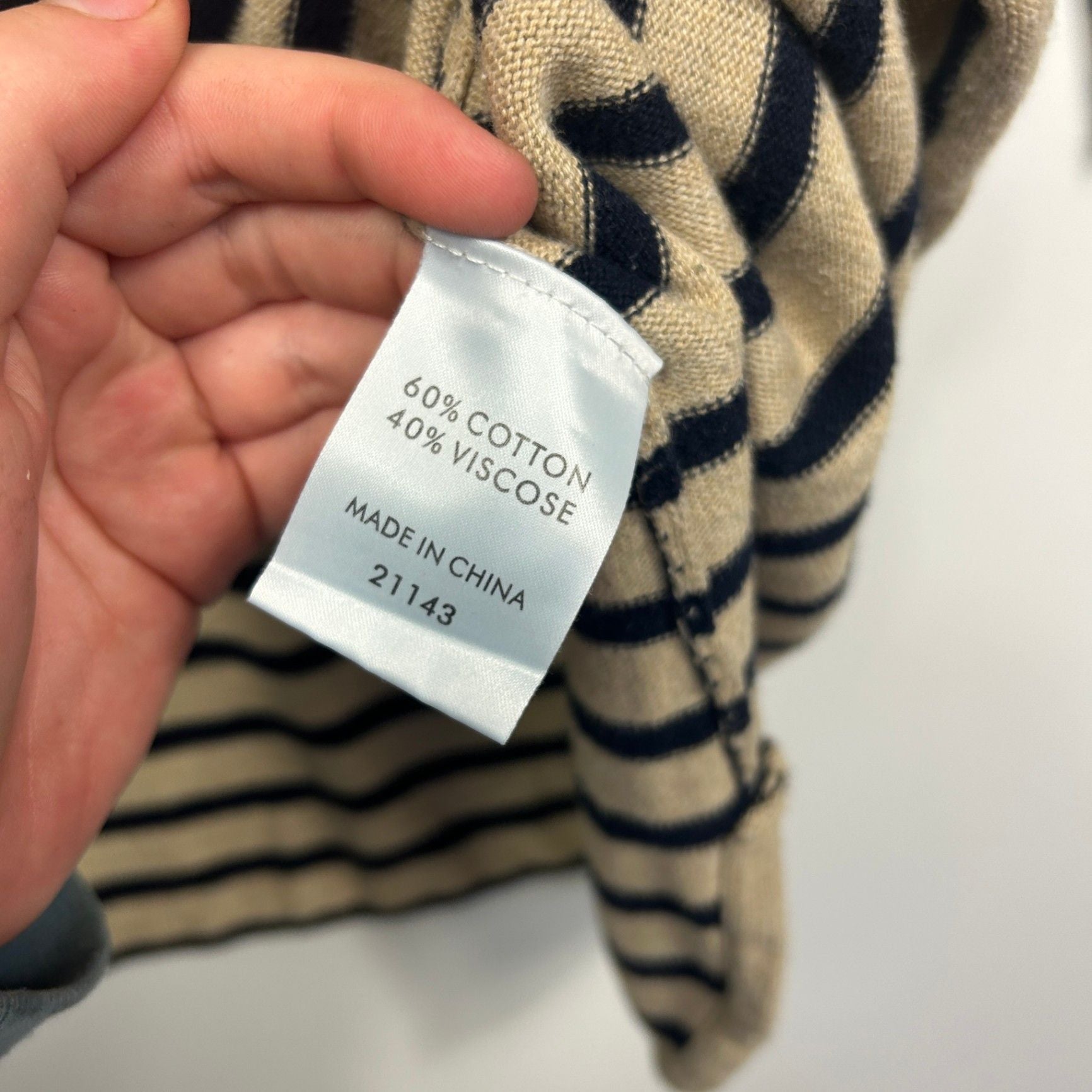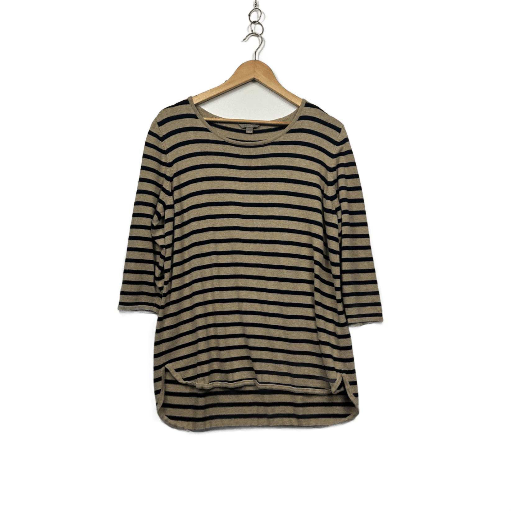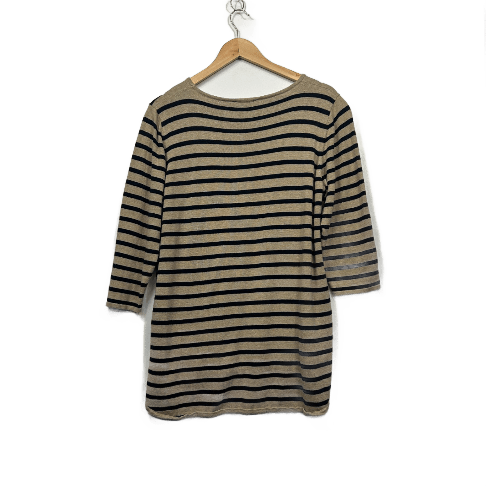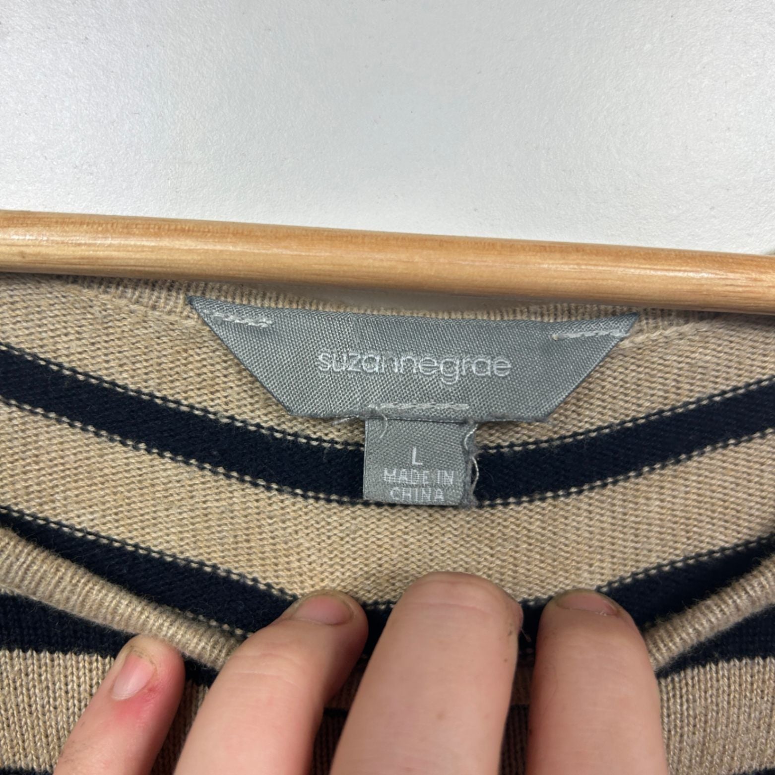 Suzanne Grae Beige Black Cotton Viscose Striped Casual Top Size 14 Large