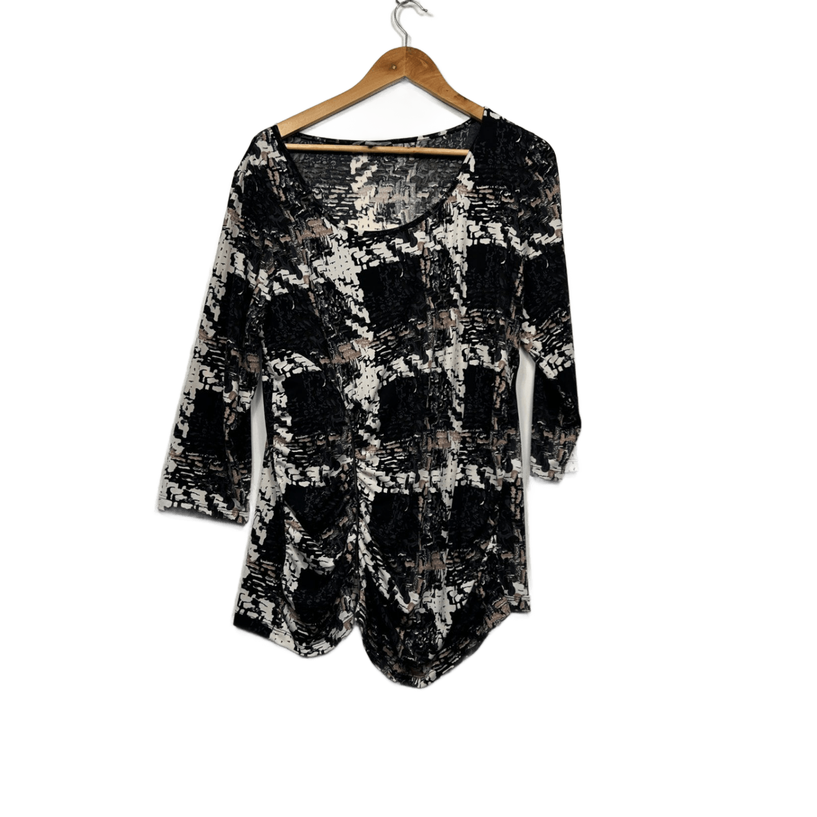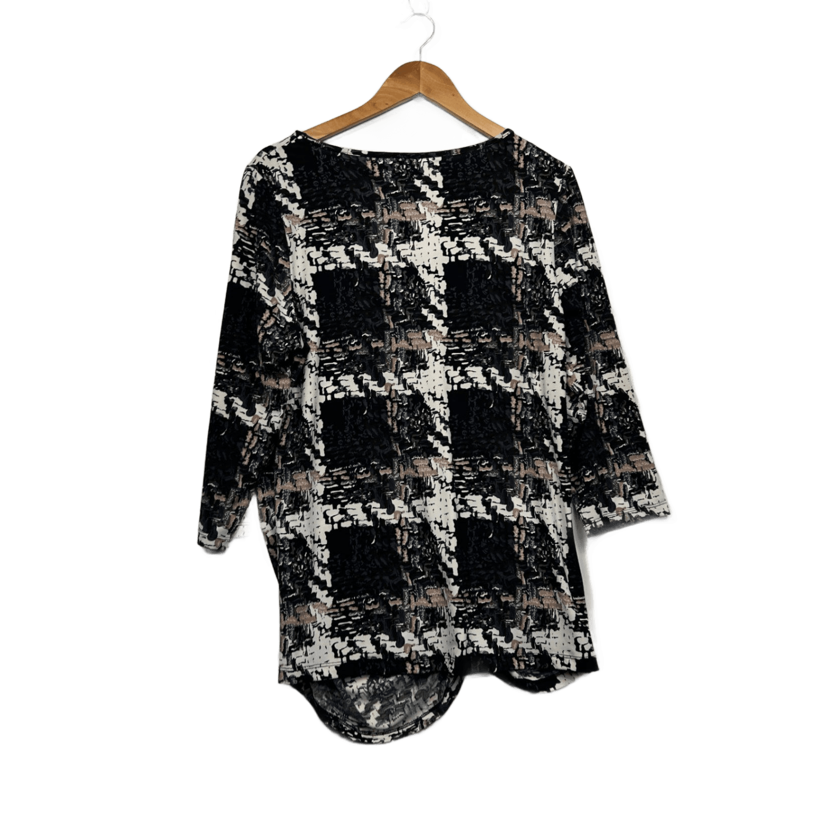 Suzanne Grae Women's Black White Beige Tunic Top Blouse Size XL 14 16