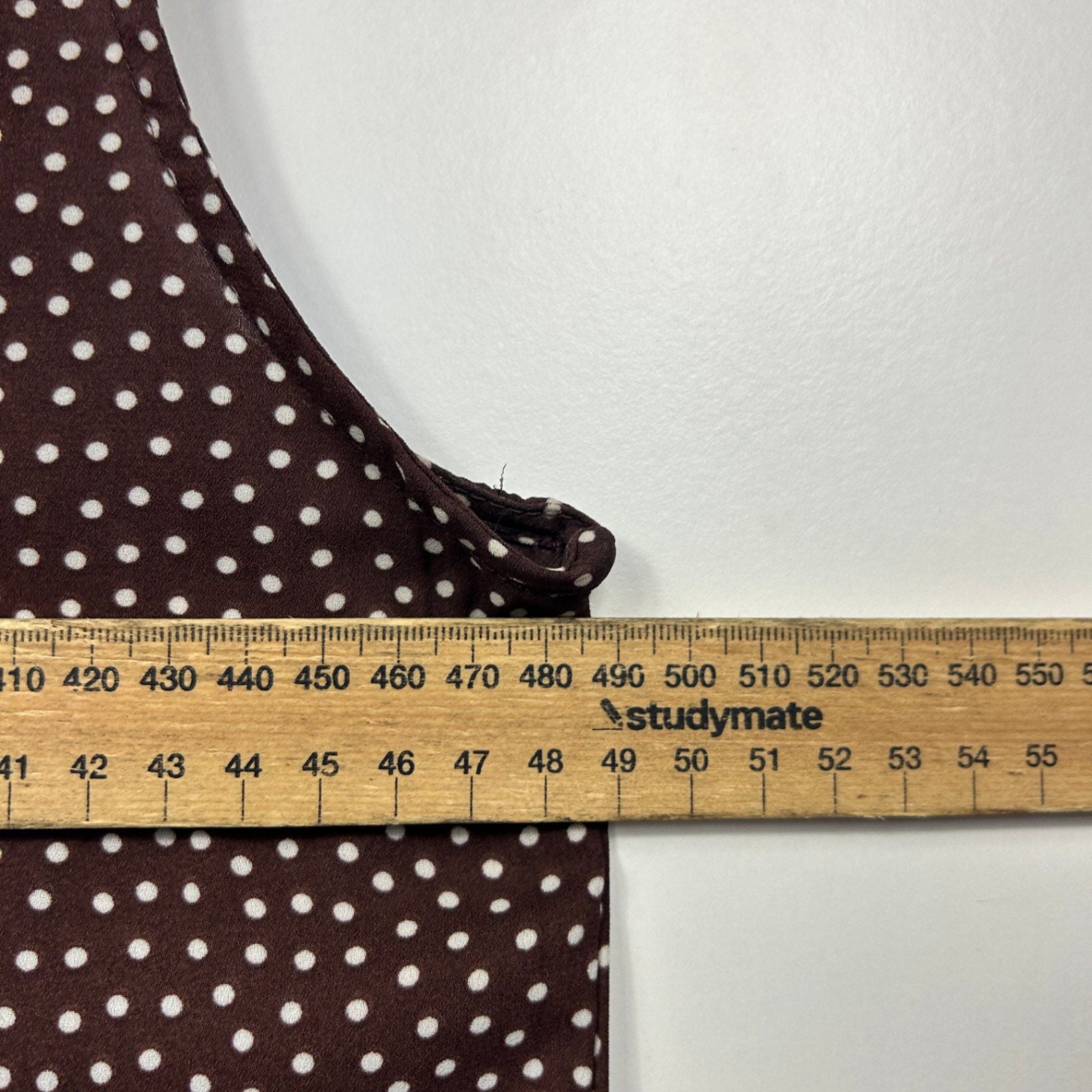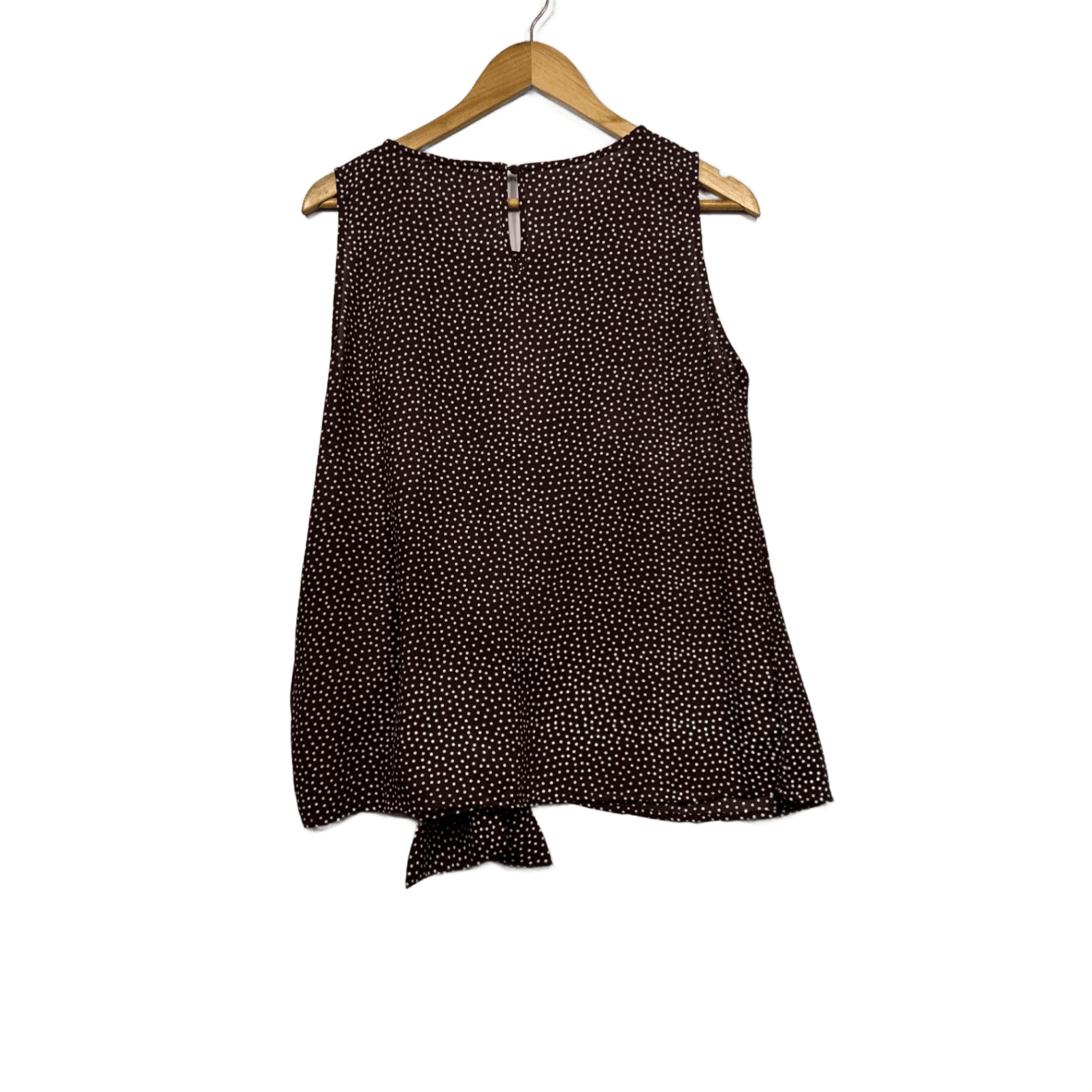 Table Eight Chocolate Brown White Dots Front Tie Top Blouse Size 14