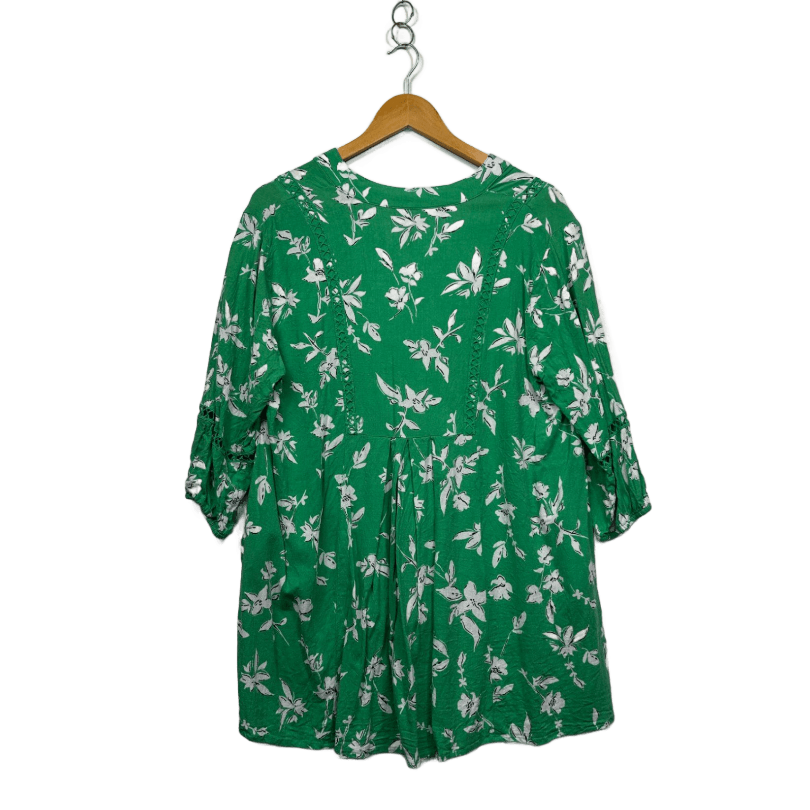 Taking Shape Green Viscose 3/4 Sleeve Floral Boho Top Blouse Size 12