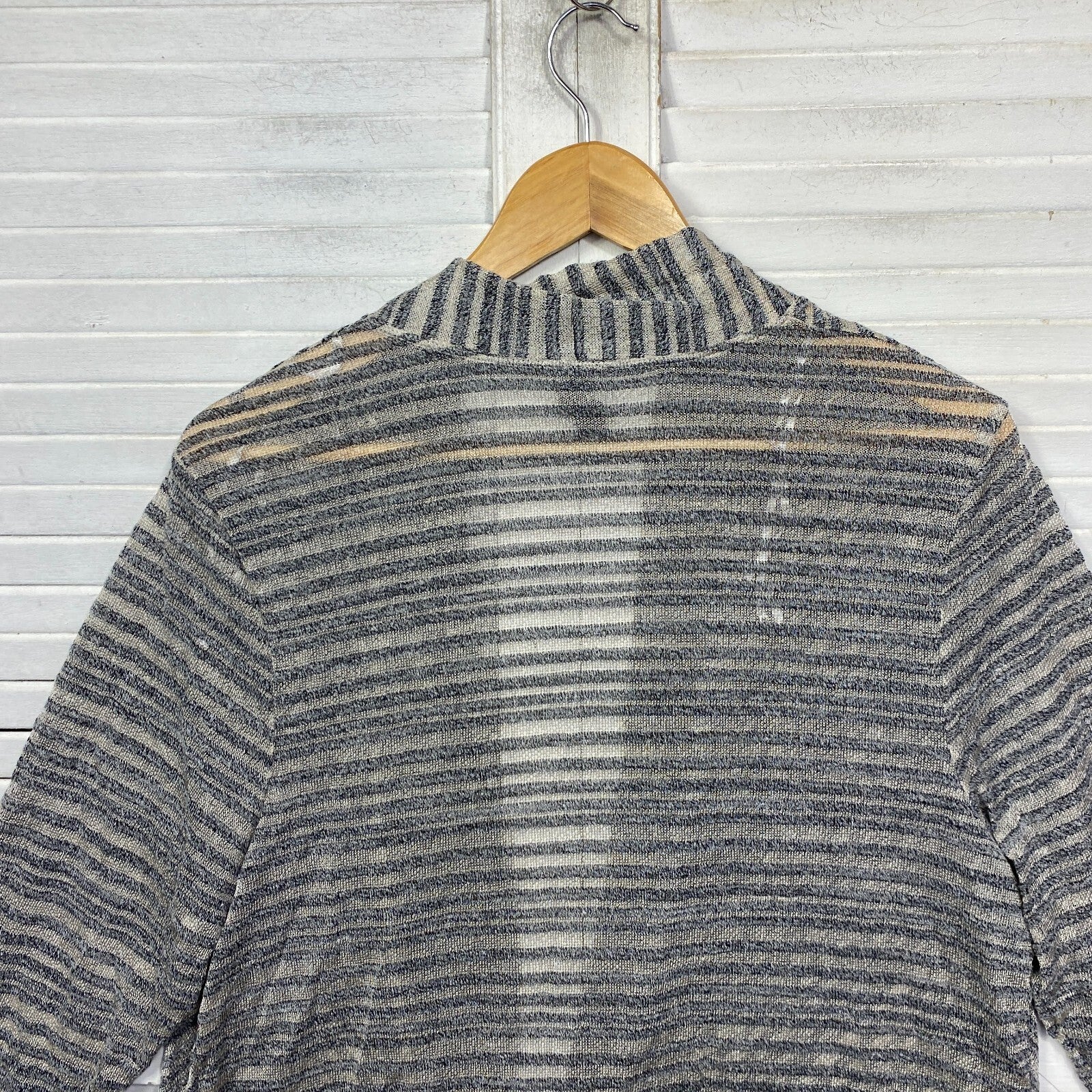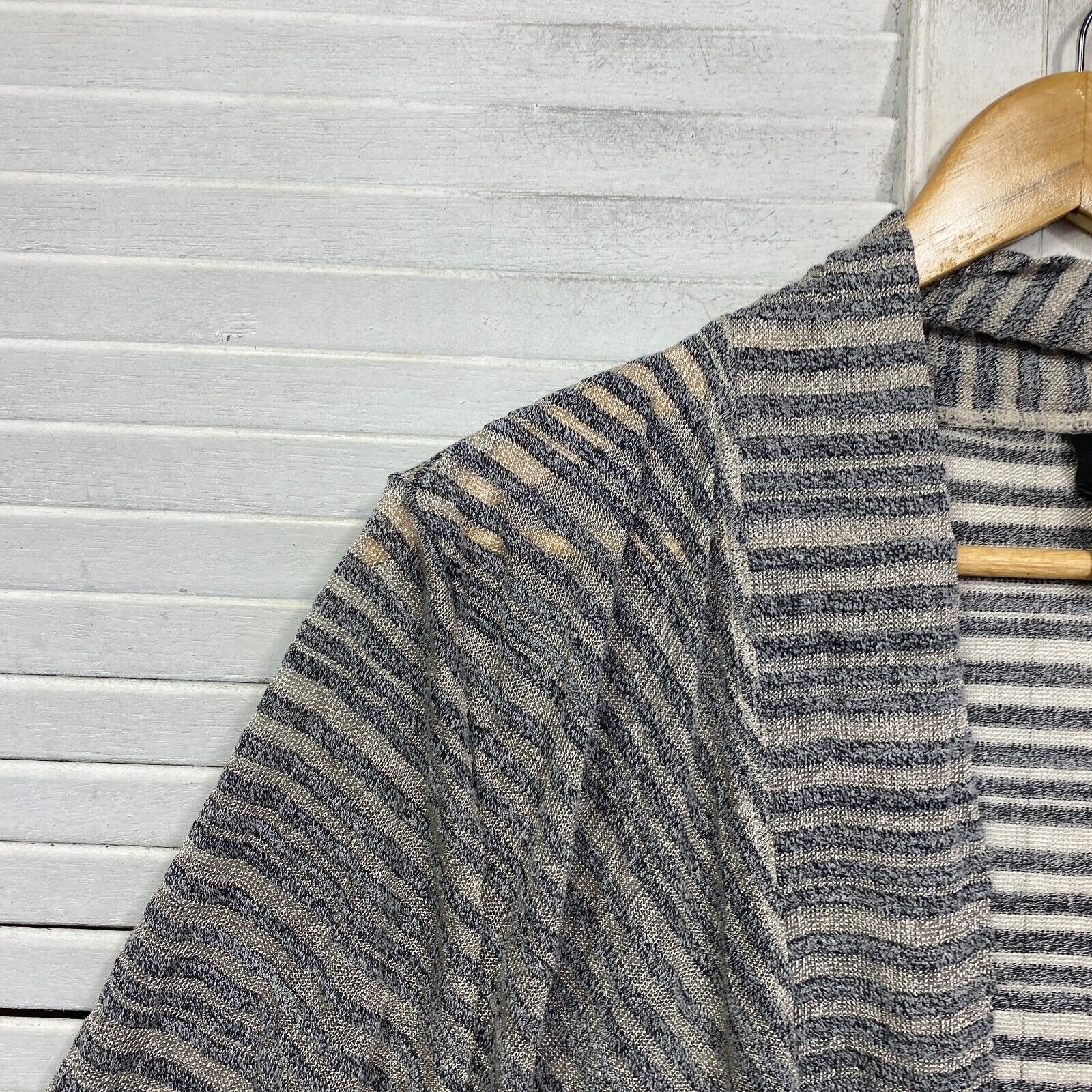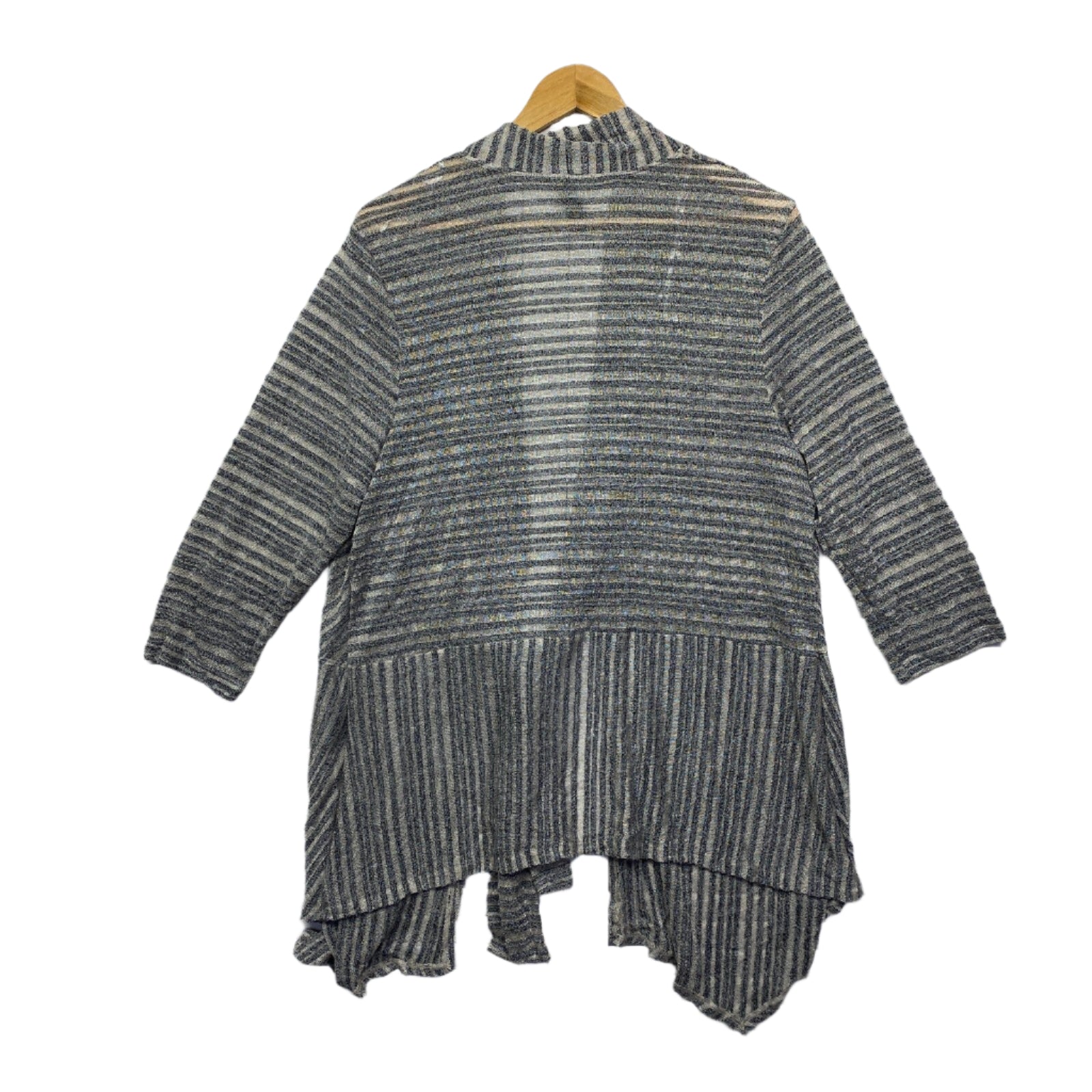 Taking Shape Top Size 14 XS Plus Grey Striped Long Sleeve Sheer