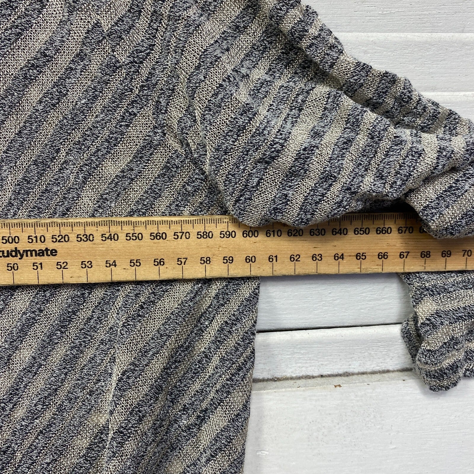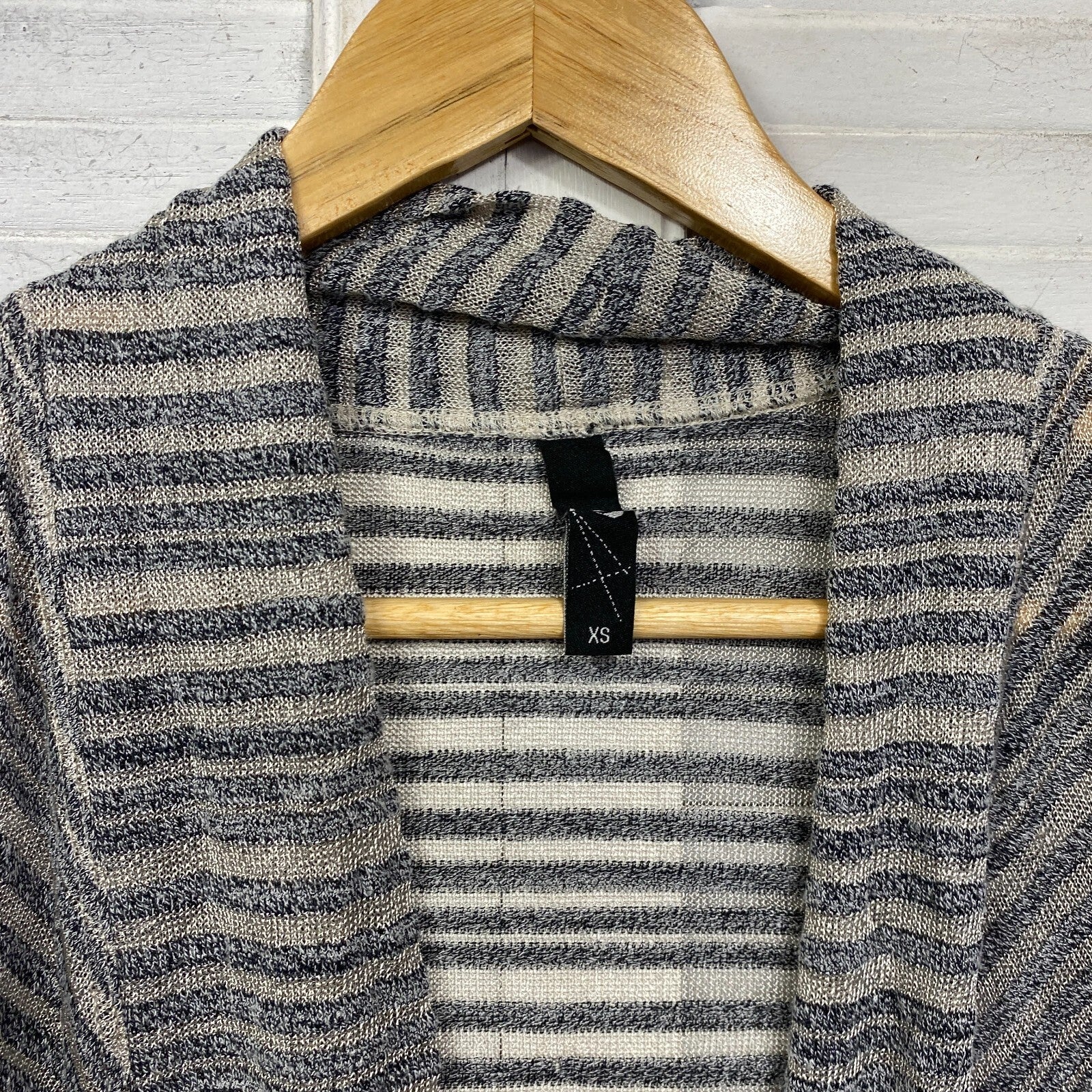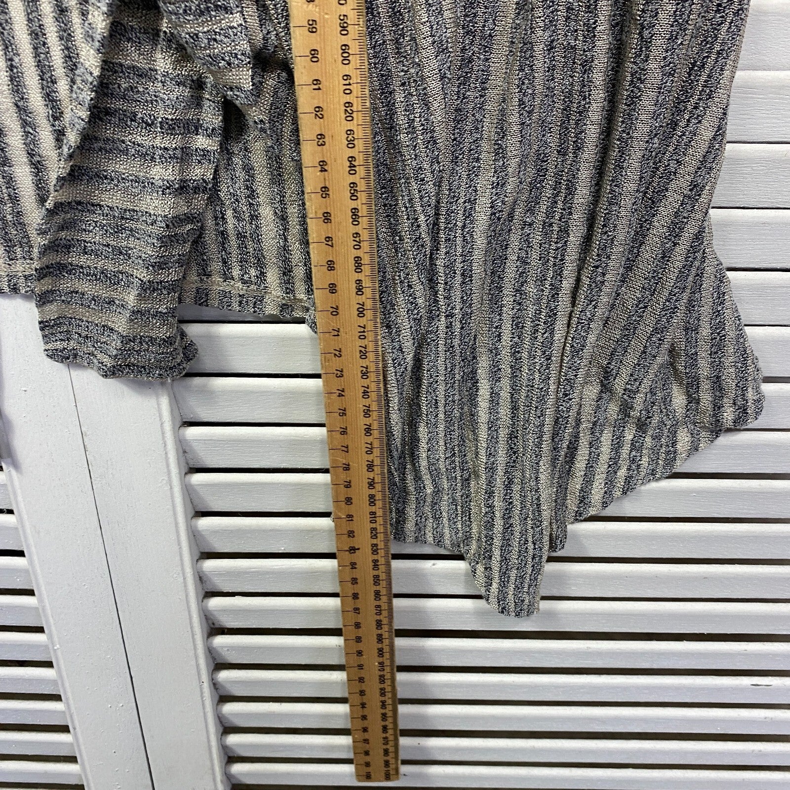 Taking Shape Top Size 14 XS Plus Grey Striped Long Sleeve Sheer