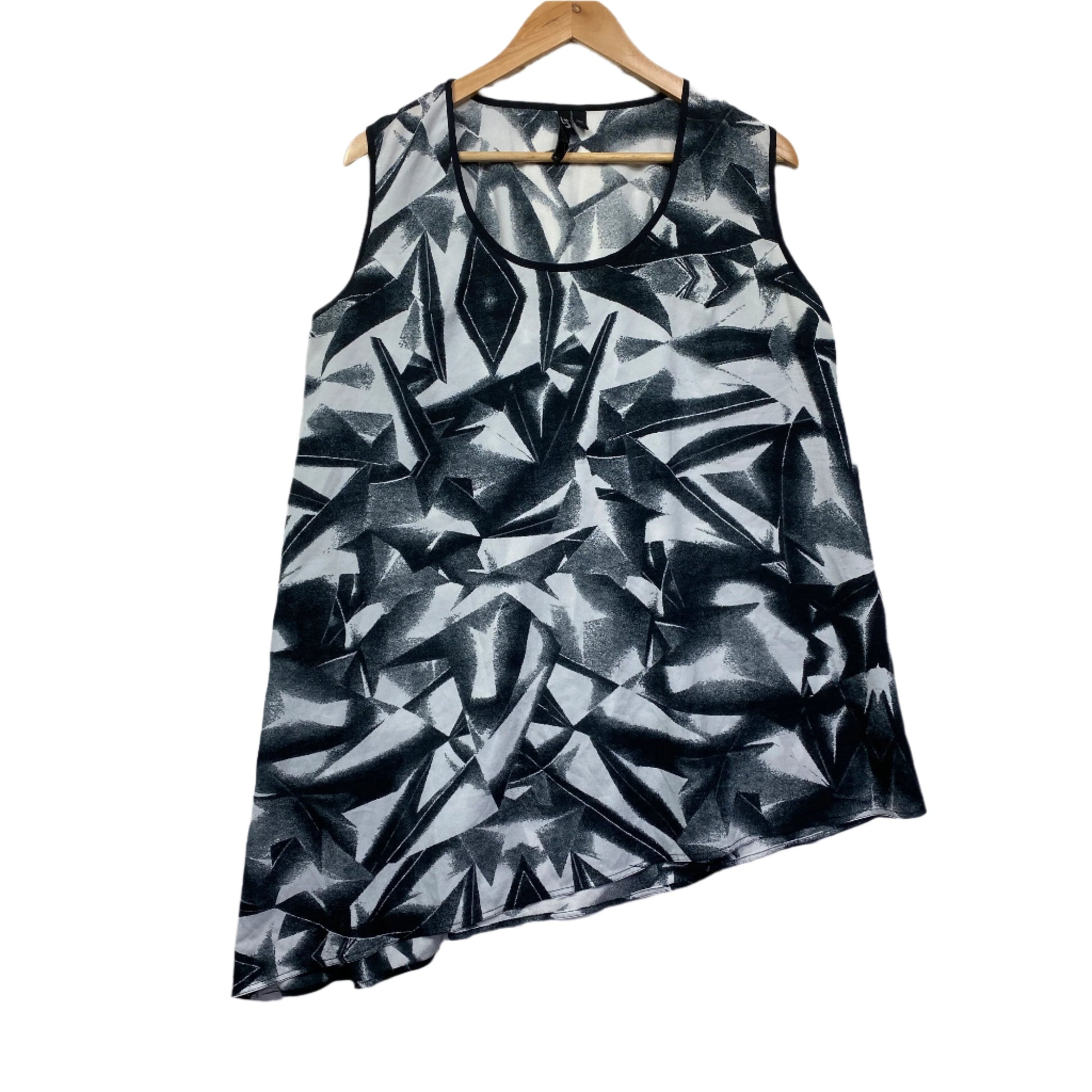 Taking Shape Top Size 16 Sleeveless Black White Grey Sheer
