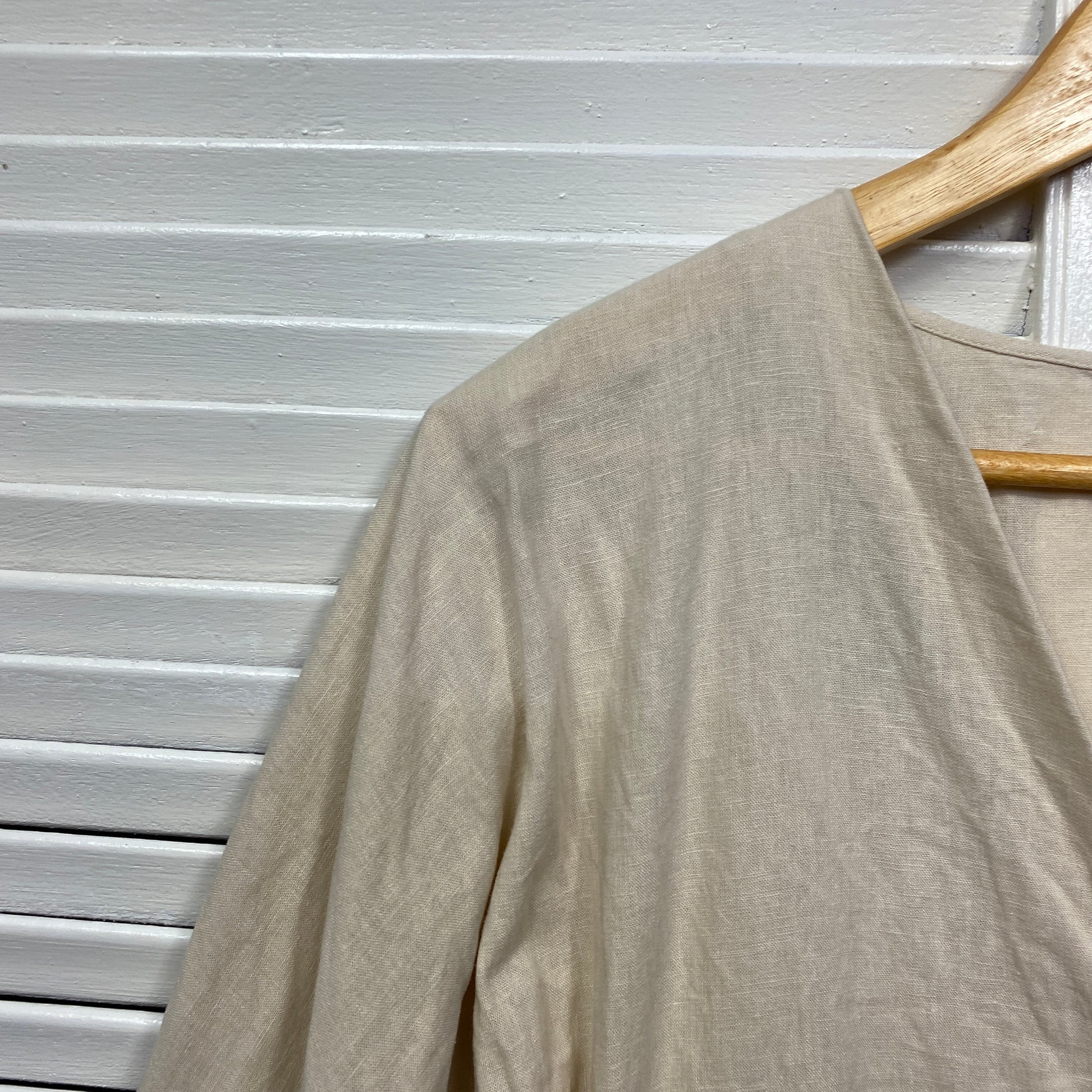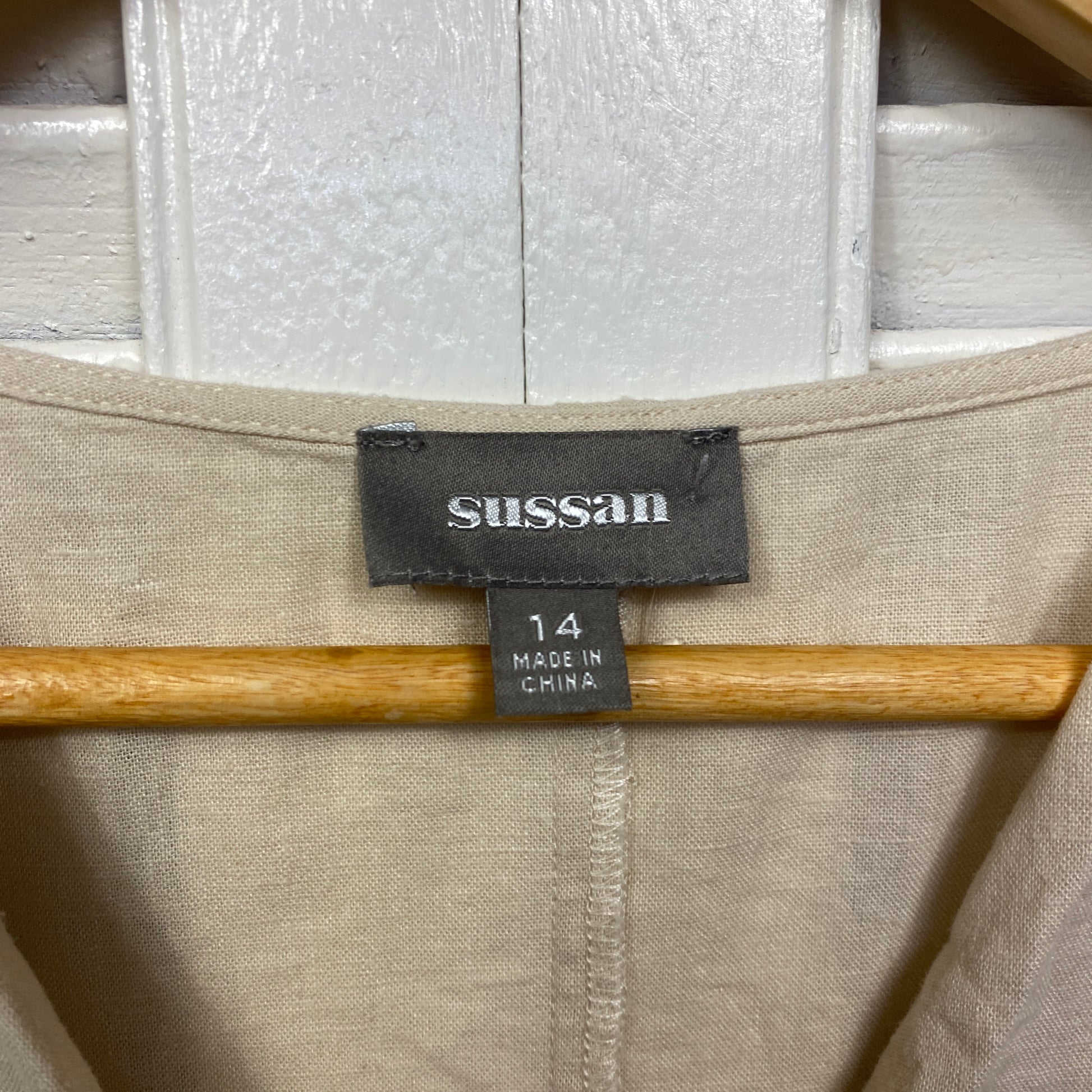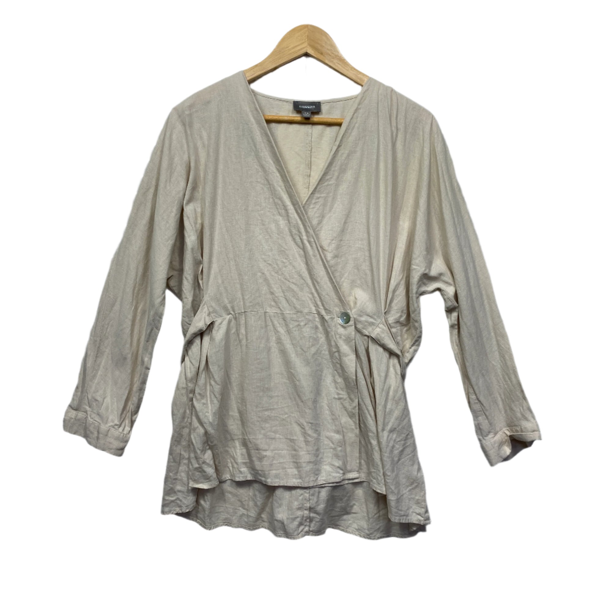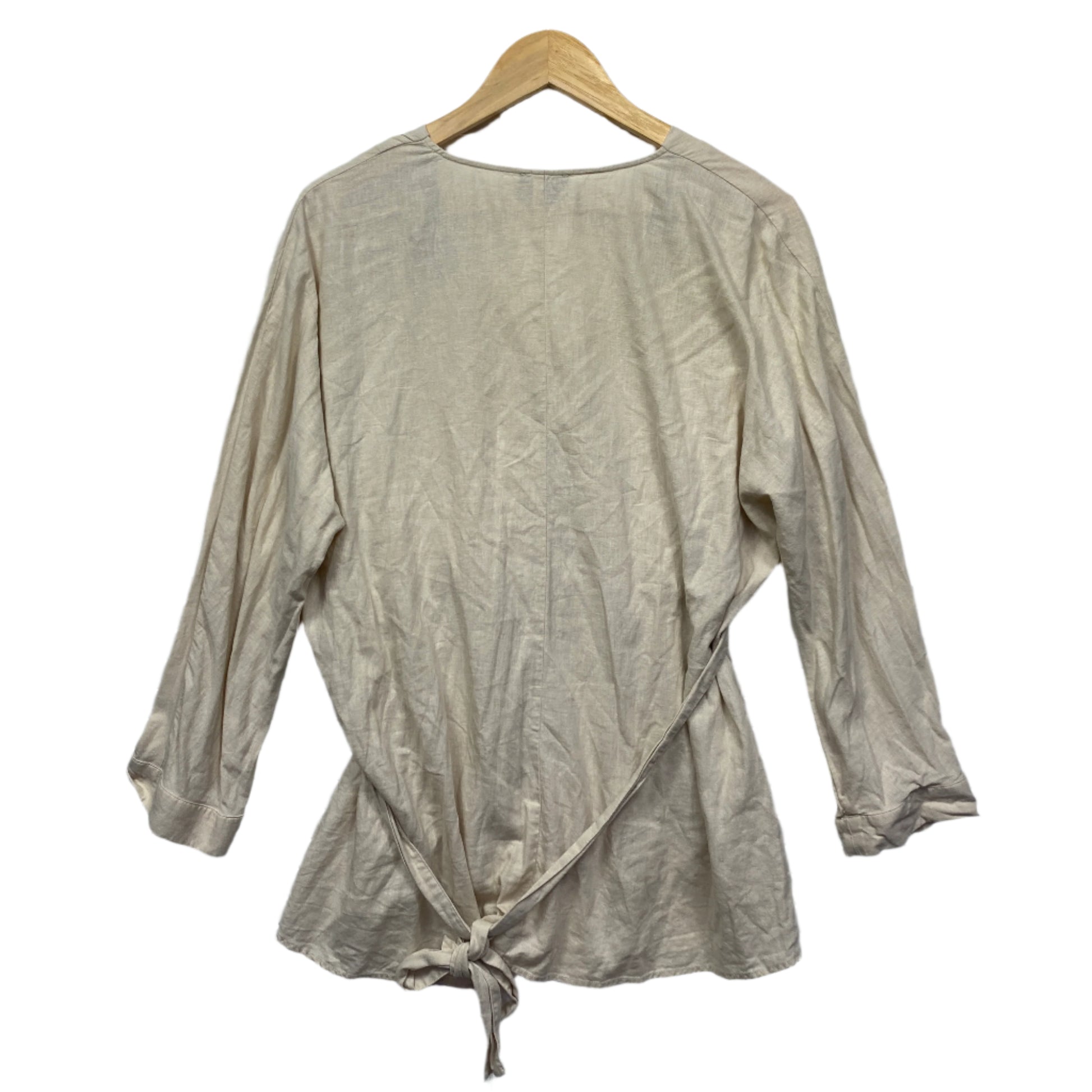 Sussan Linen Top Size 14 Biege Long Sleeve