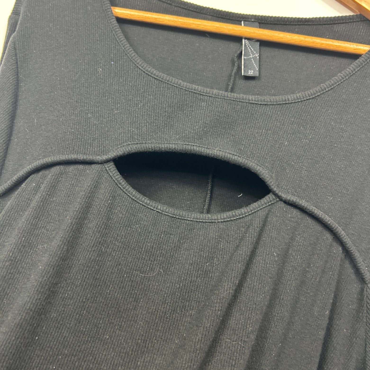 Taking Shape Women's Black Short Sleeve Cut Out Ribbed Basic Top Size 22