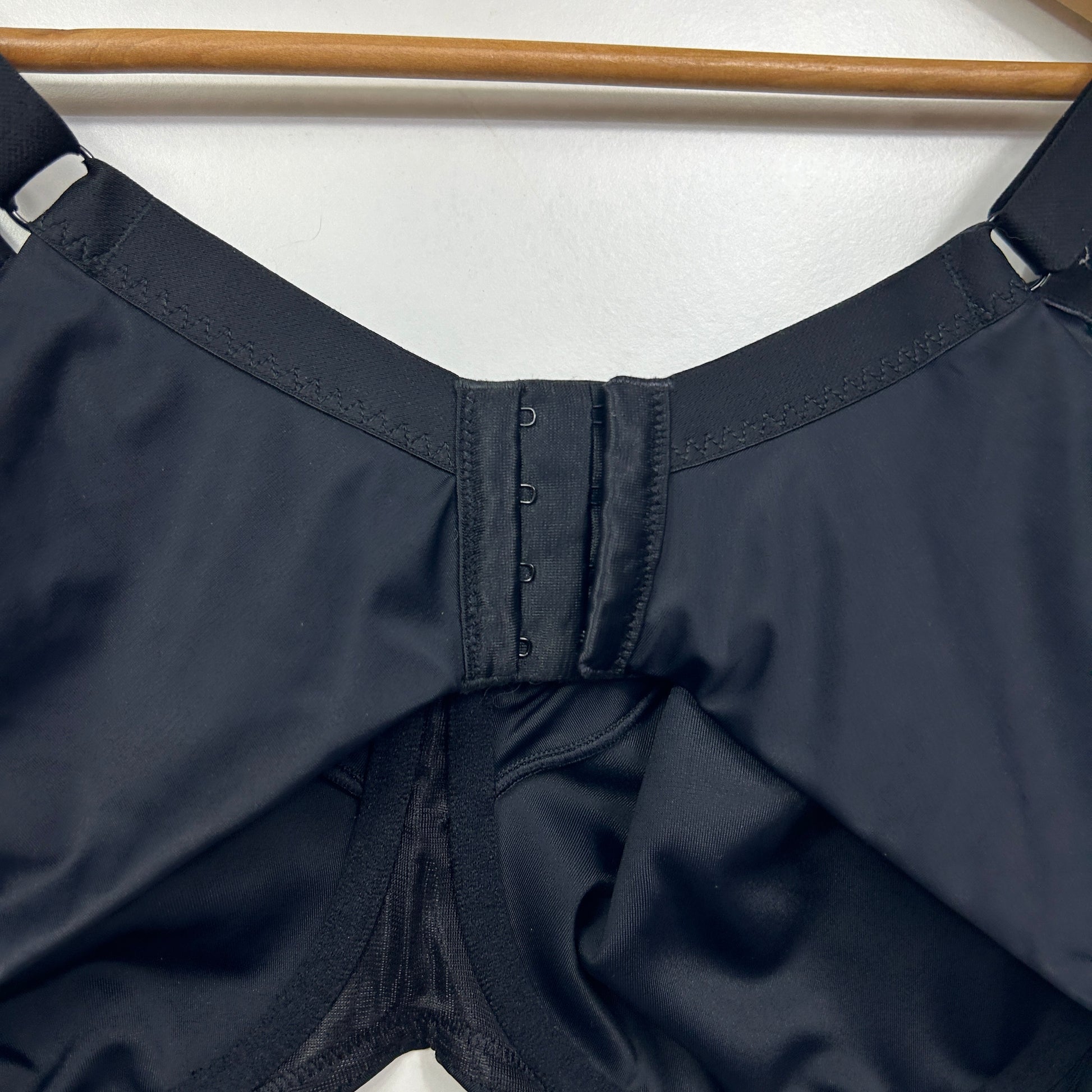 A classic black underwire bra featuring full coverage cups, wide adjustable straps for support, and a secure hook and eye closure for everyday comfort.