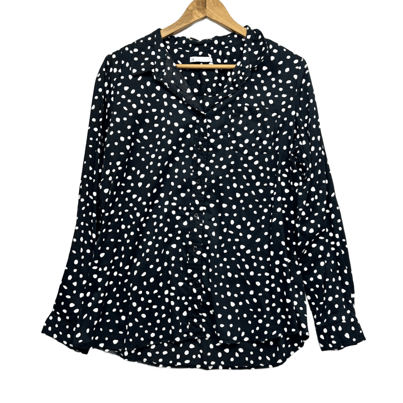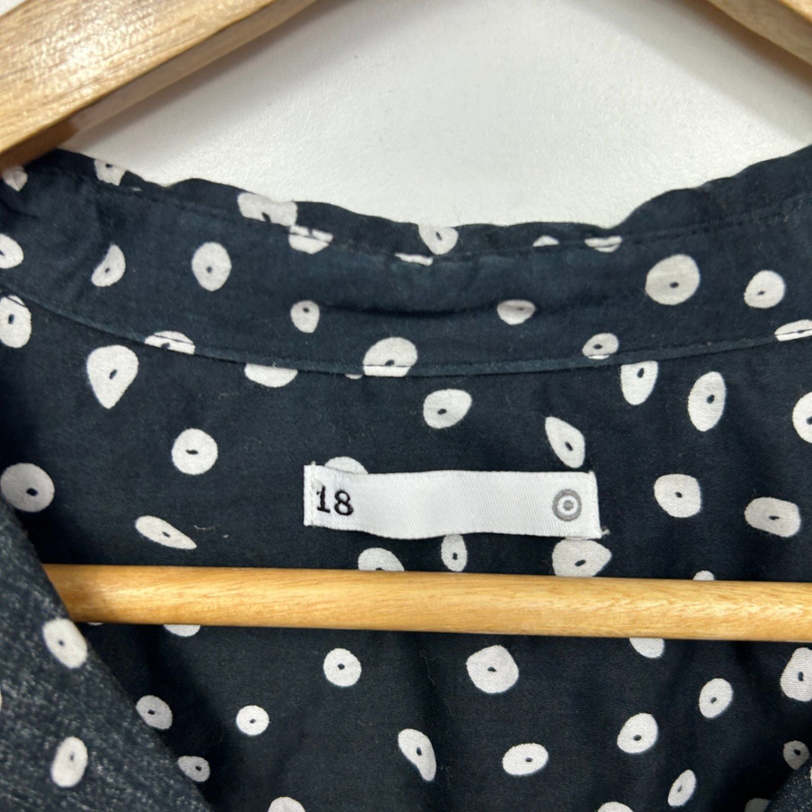 Target Black White Cotton Long Sleeve Collared Button Up Top Blouse Size 18