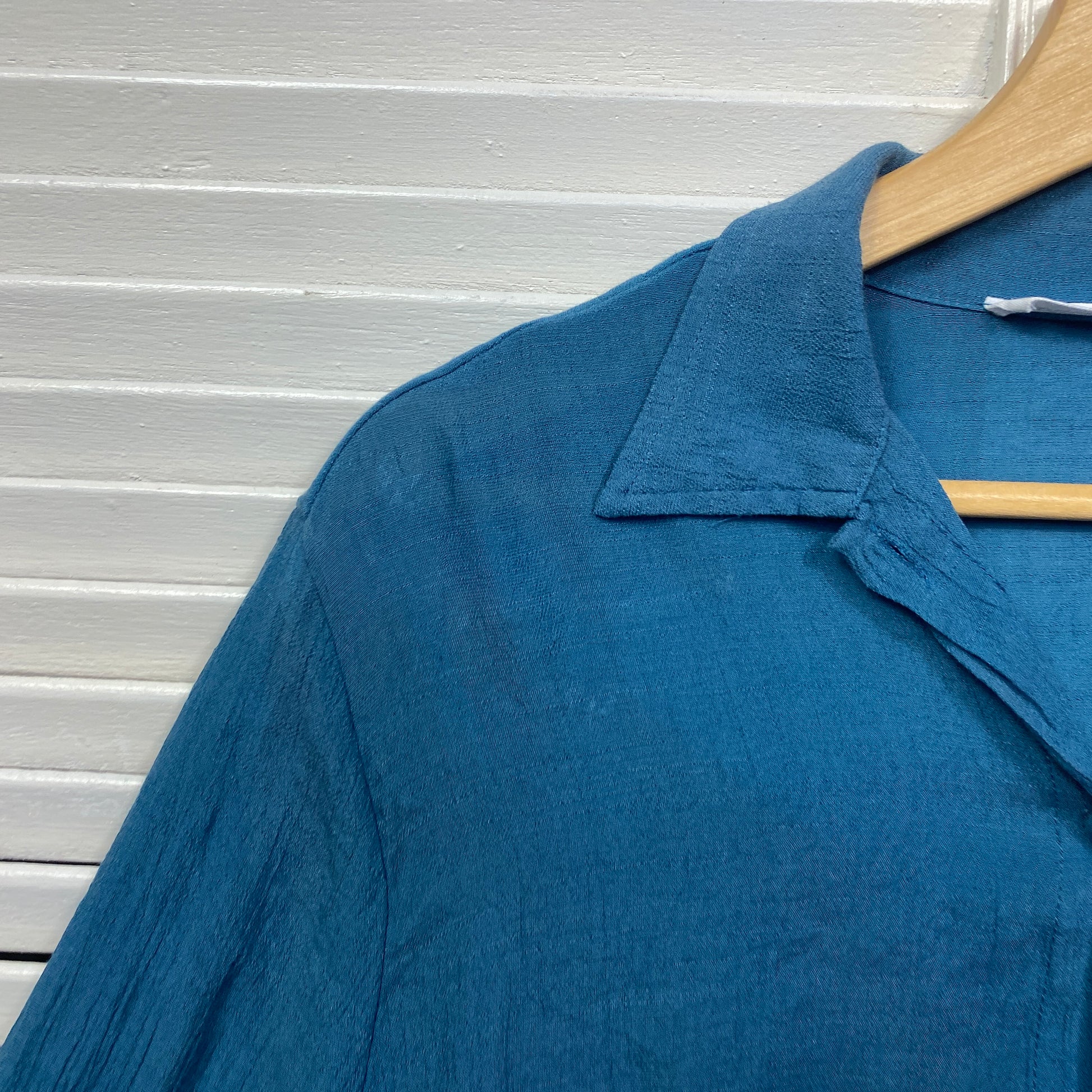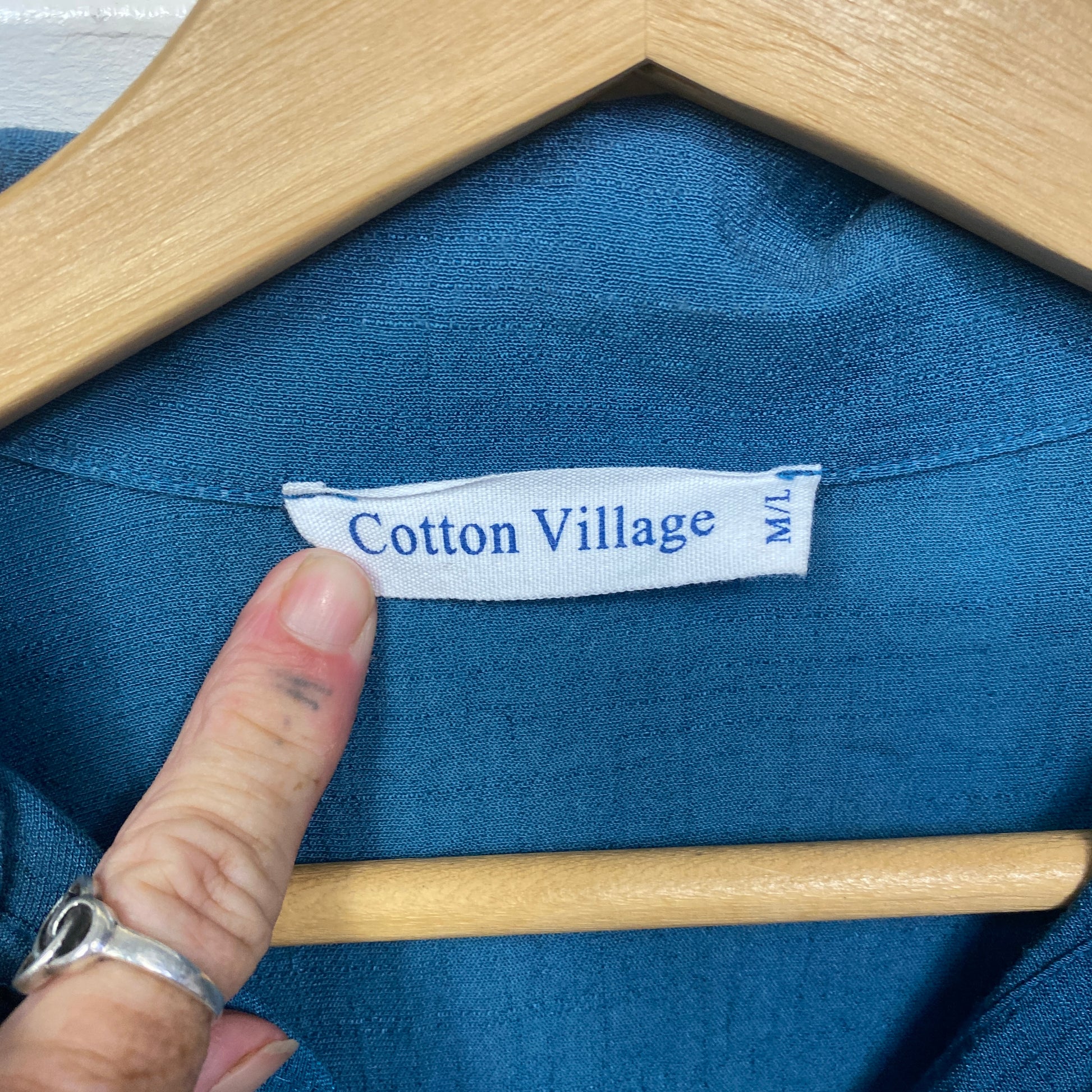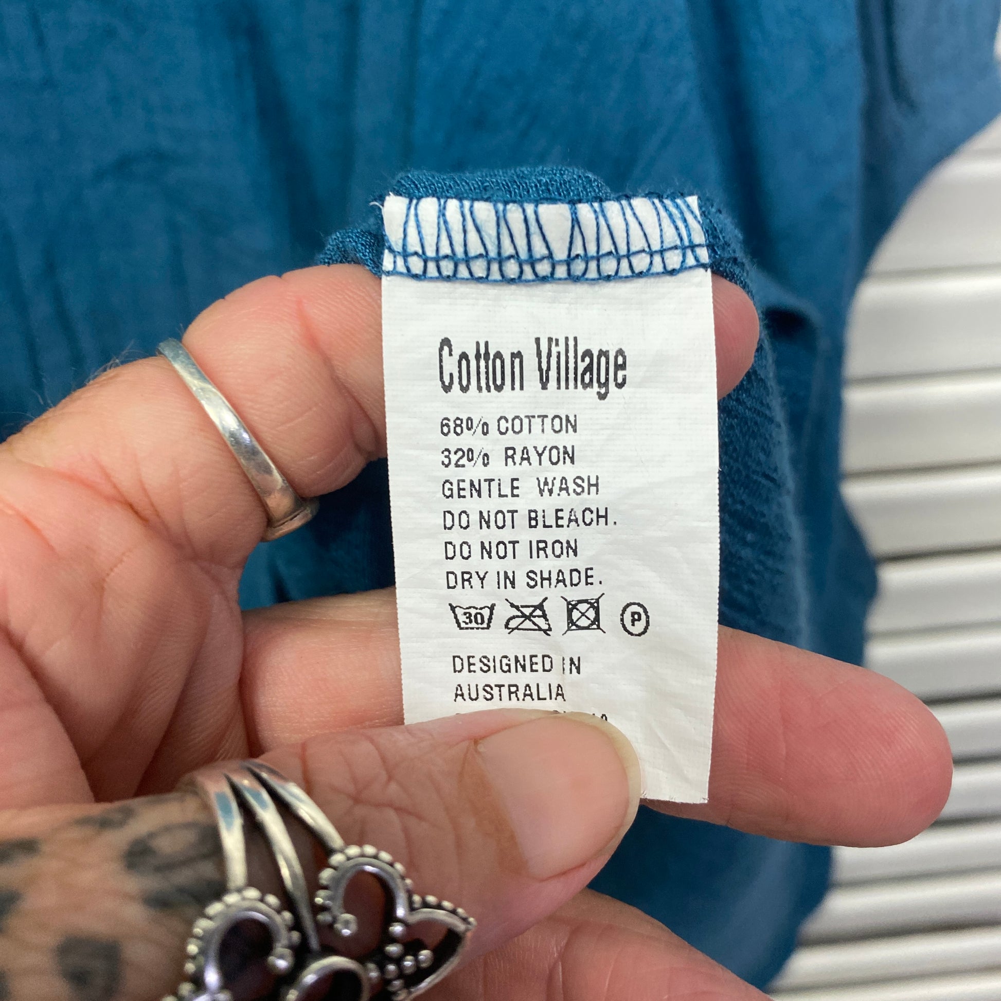 Cotton Village Top Medium Large Blue Teal Long Sleeve Cotton Rayon