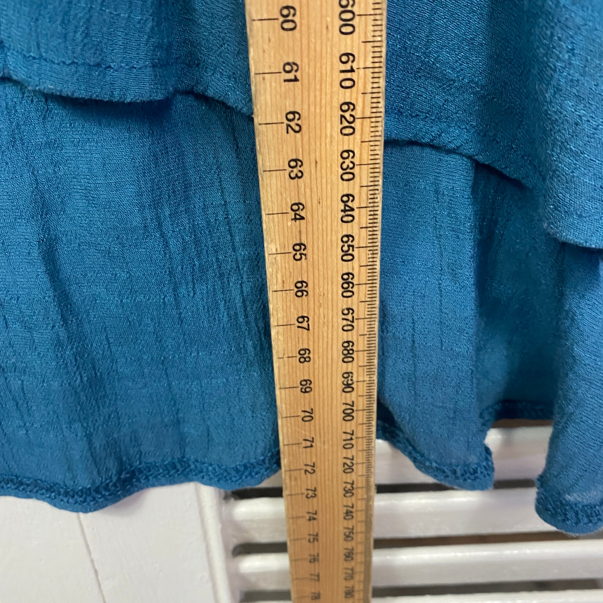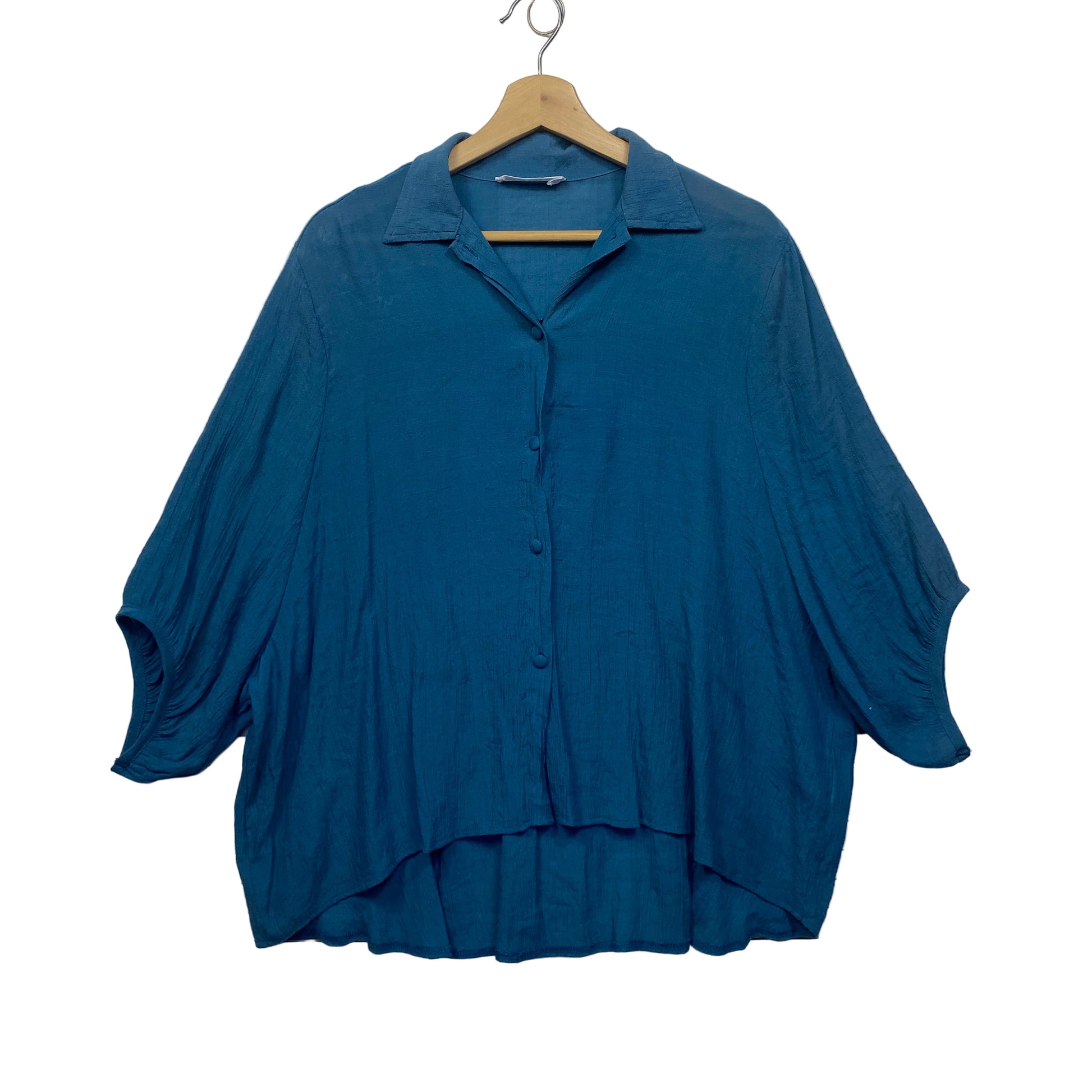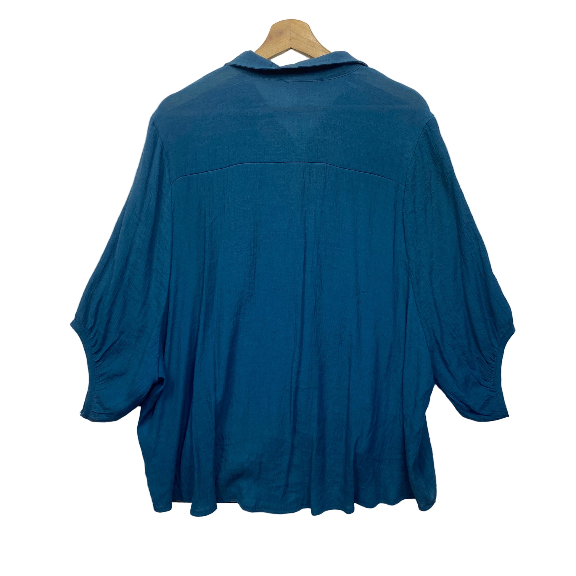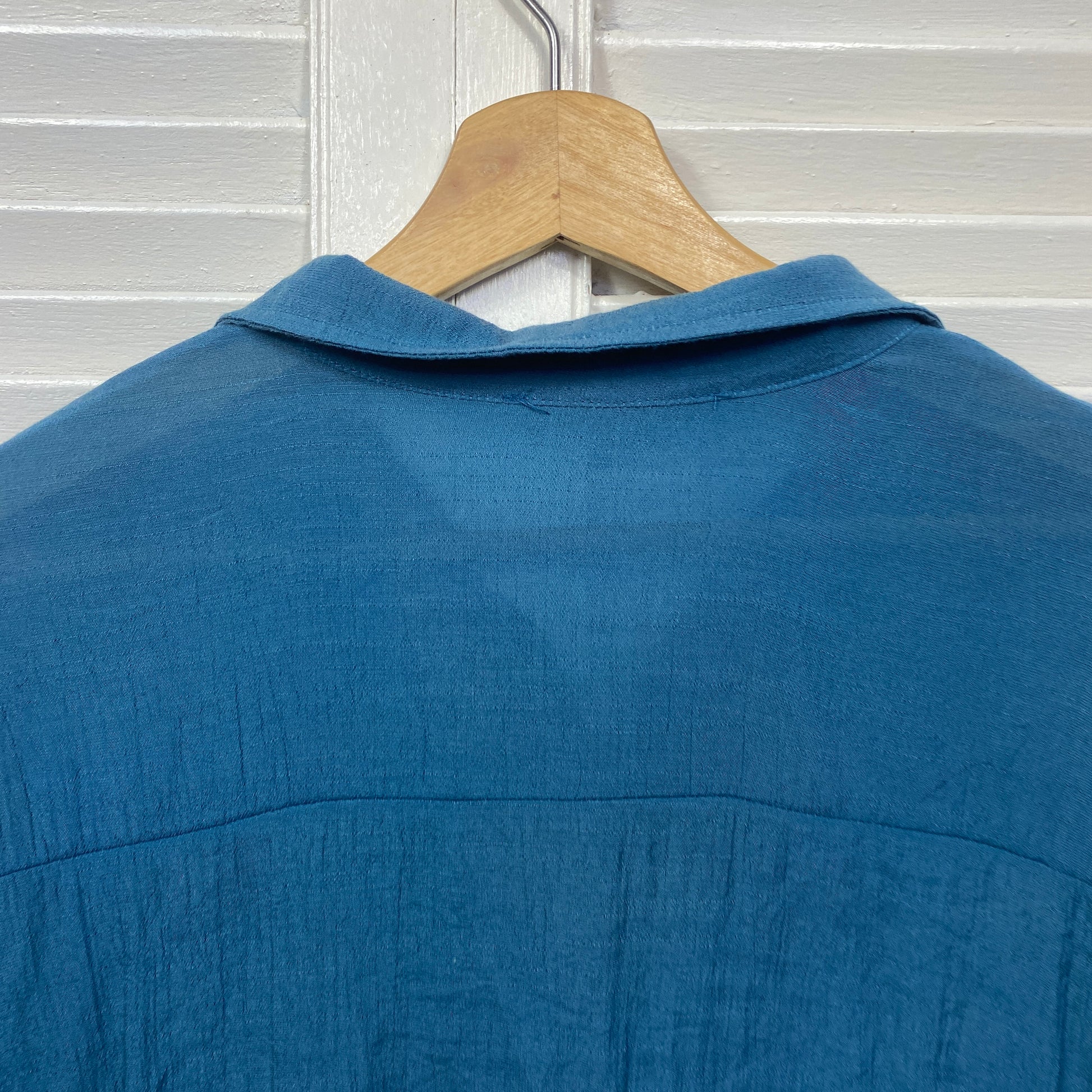 Cotton Village Top Medium Large Blue Teal Long Sleeve Cotton Rayon